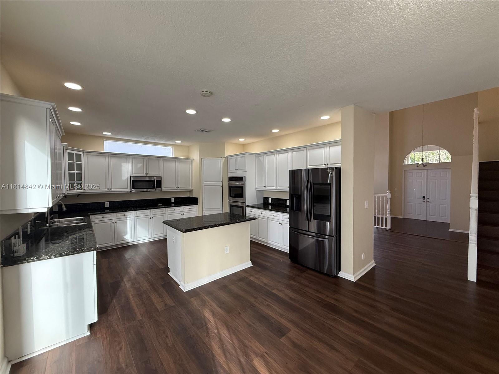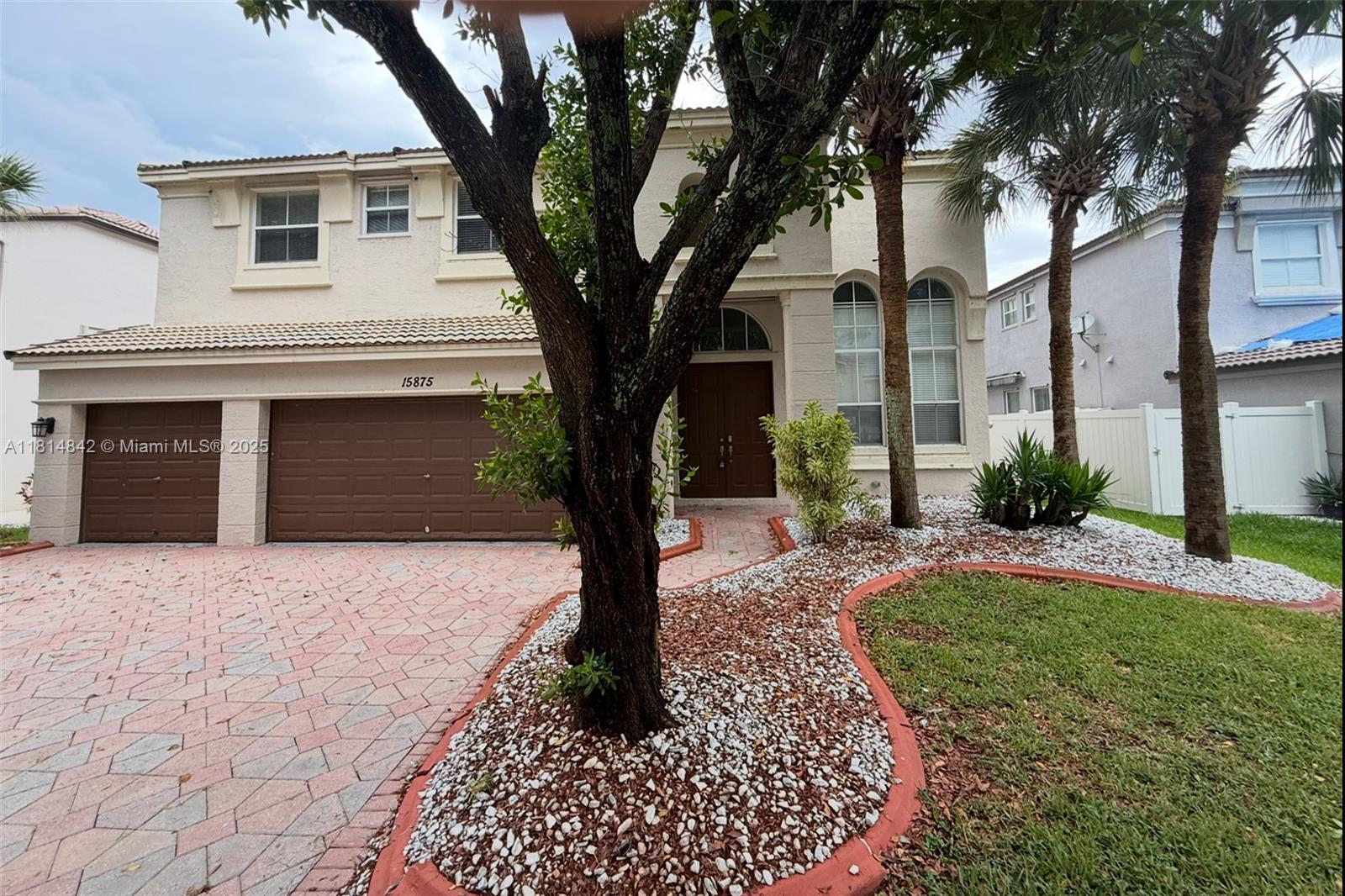 Stunning 2-story Mediterranean-style home featuring 5 bedrooms, 3 full bathrooms, and a 3-car garage. Soaring volume ceilings throughout create a bright, open feel. Enjoy spacious living and family areas, a formal dining room, and an open-concept kitchen with center island, pantry, & ample cabinet space. One guest suite conveniently located on the 1st floor. Upstairs, the expansive master suite offers a seating area, his & her walk-in closets, dual vanities, a jacuzzi tub, separate shower & private water closet. All guest bedrooms offer generous size & closet space. Additional features include a dedicated laundry room, storage room, and beautifully appointed bathrooms. Private fenced backyard w/ patio, plenty of space for adding a pool. Ideal layout for comfortable living & entertaining.