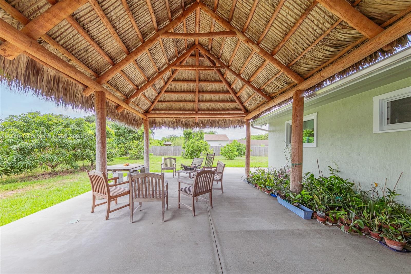 Country living at its best! Cozy, updated home in North Redland area of Homestead. Features and highlights include New Impact Windows and Doors, New Kitchen with high-end GE Café Appliances. Remodeled Great Room with Custom Woodwork and built in Bar, spacious Tiki Hut for enjoyment of the outdoors. Updated Bathrooms including Jacuzzi Tub. Freshly re-stuccoed and painted exterior. Freshly painted interior. Updated electrical. Recessed Lighting. Newer Security System with Cameras. New gutter and downspout system. Flat roof New 2025. Fully fenced and Gated, Two newer Driveways, two new septic systems. Many fruit trees. Plenty of room for boats, RVs, etc. In addition, a multi-stall Garage Workshop with income potential. One-half acre Agricultural Tax Exemption! Come see it today.