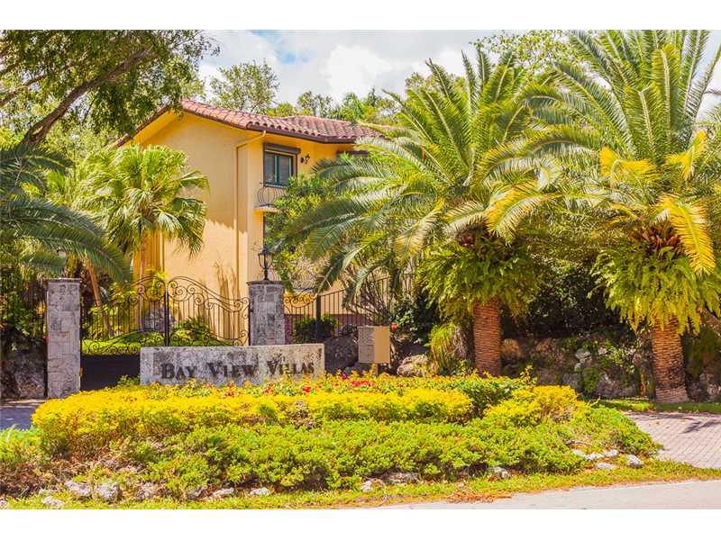 Bay View Villas is located in a secure, gated enclave across from Kennedy Park. This stunning 4/4 has a top-of-the-line kitchen with gas cooktop, rich marble counter-tops, ss appliances, breakfast nook & cherry wood cabinets. The bathrooms have been bea utifully remodeled & there are 18' ceilings to provide lots of light. French doors open to view your private tropical paradise. Two car garage, ample closets, low HOA fees. Walk to Yacht clubs & all Coconut Grove's dining, shopping & entertainment