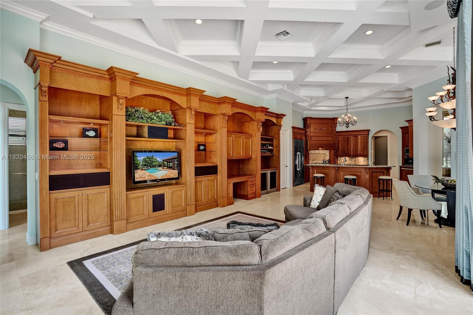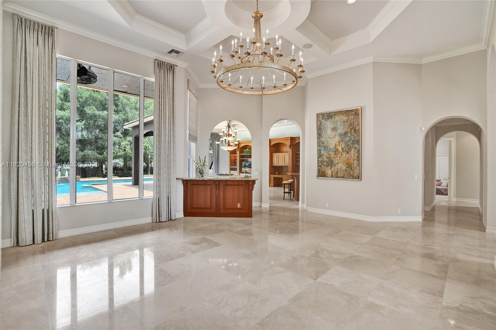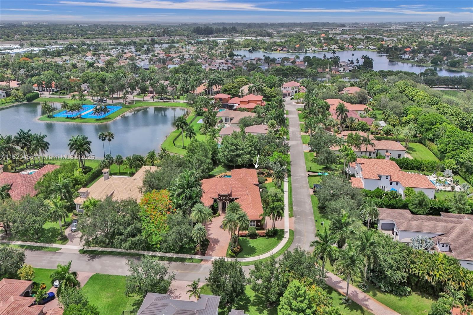 Blackhawk Reserve’s gated enclave of 42 estates holds this single-story custom home on corner builder’s acre. Triple-split layout offers 5 ensuite bedroom, grand owner suite, office, and theater (5th BD). Volume coffered ceilings, Italian marble floors, and abundant light set an elegant tone. Chef’s kitchen features center island, granite, new refrigerator, new double ovens, and an 8 burner gas range with grill. Outside, enjoy fenced yard with 60×20 heated pool, Viking grill, fire pit, lush landscaping, and lake view. Full-impact glass, motorized shades, Sonos, Crestron, dual driveways, 3 car garage, and wiring for whole-house generator complete the package. Community has no separate HOA fee—management and common area costs are collected through CDD and included in annual property taxes.