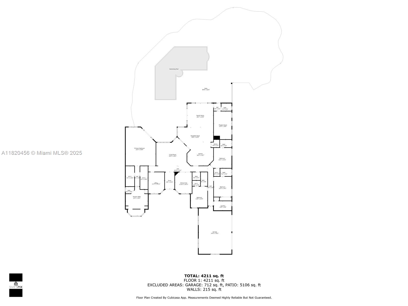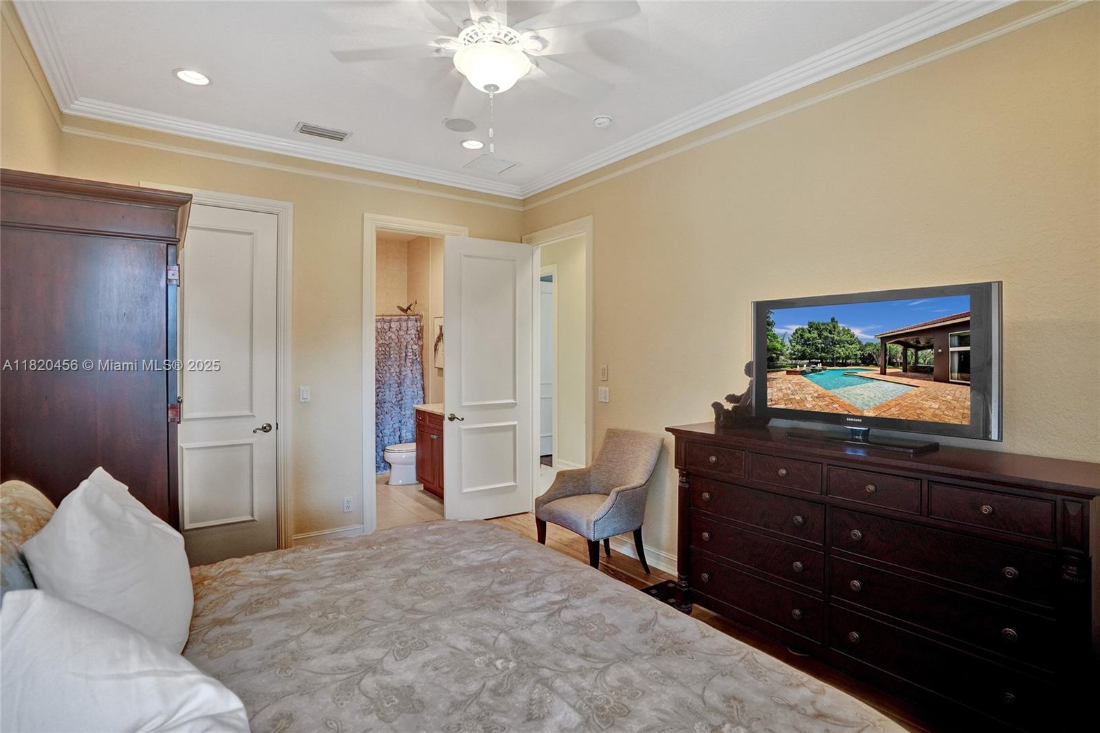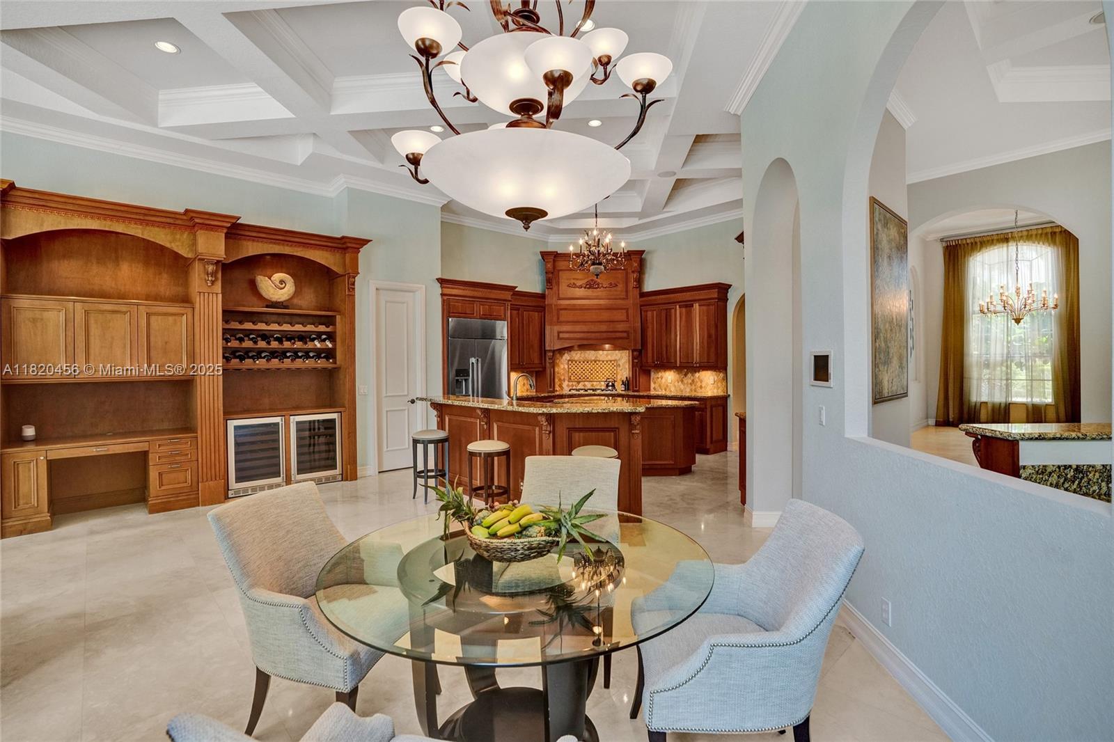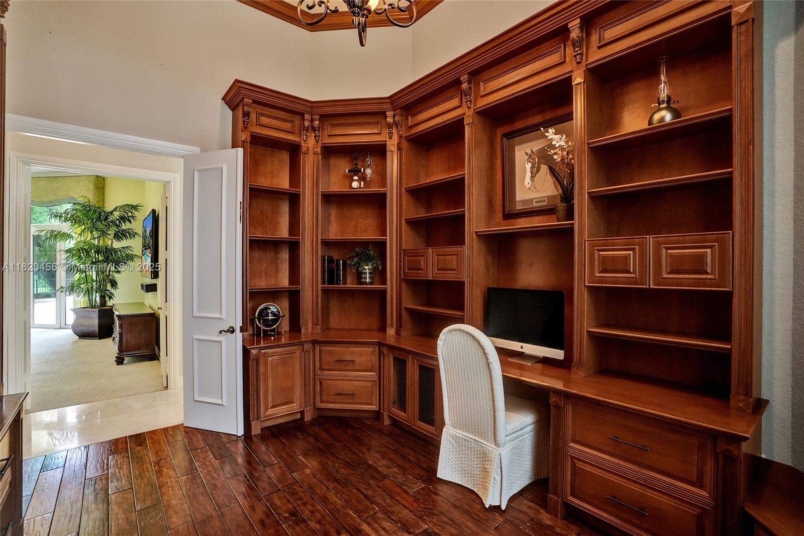 Blackhawk Reserve’s gated enclave of 42 estates holds this single-story custom home on corner builder’s acre. Triple-split layout offers 5 ensuite bedroom, grand owner suite, office, and theater (5th BD). Volume coffered ceilings, Italian marble floors, and abundant light set an elegant tone. Chef’s kitchen features center island, granite, new refrigerator, new double ovens, and an 8 burner gas range with grill. Outside, enjoy fenced yard with 60×20 heated pool, Viking grill, fire pit, lush landscaping, and lake view. Full-impact glass, motorized shades, Sonos, Crestron, dual driveways, 3 car garage, and wiring for whole-house generator complete the package. Community has no separate HOA fee—management and common area costs are collected through CDD and included in annual property taxes.