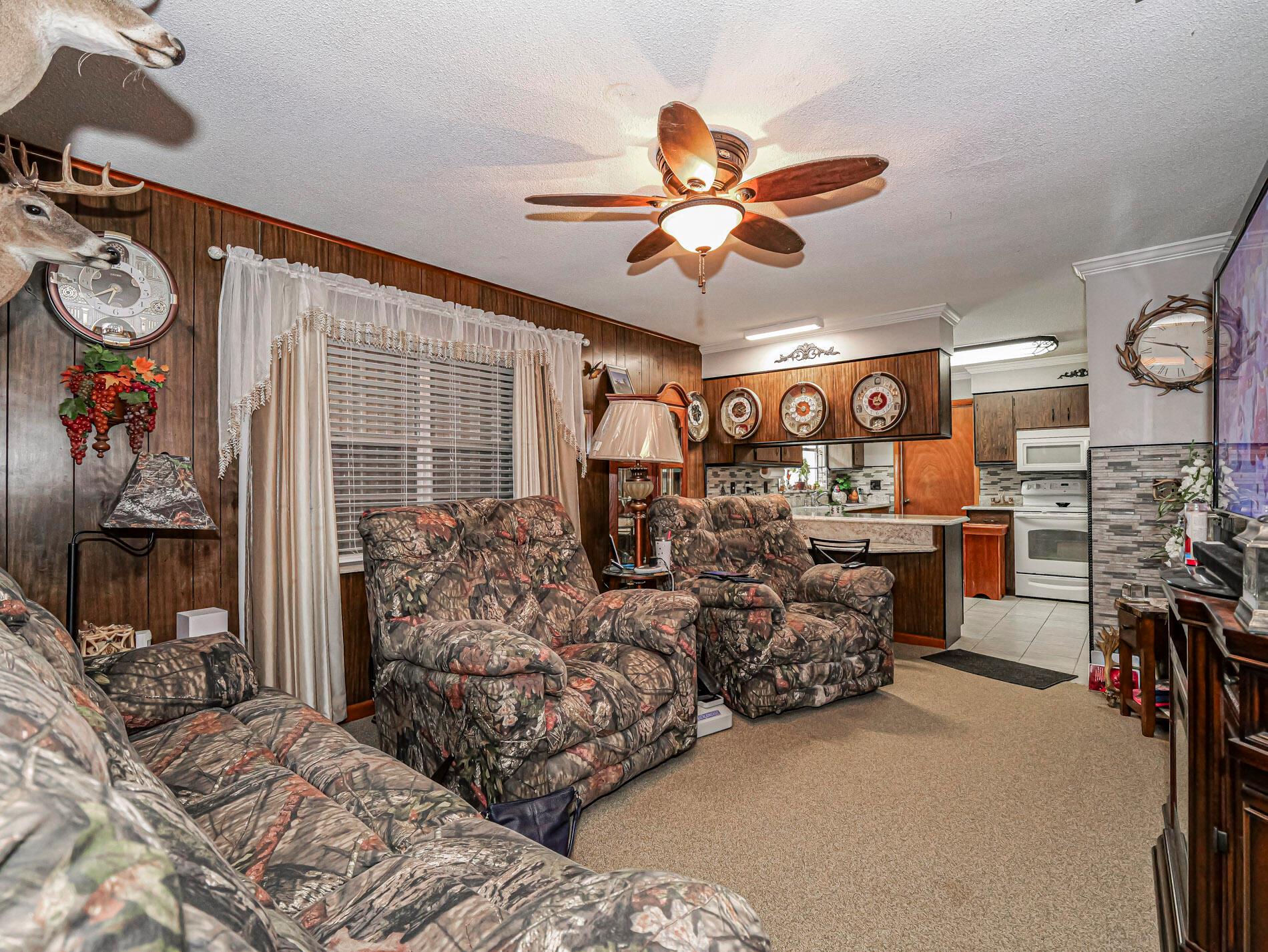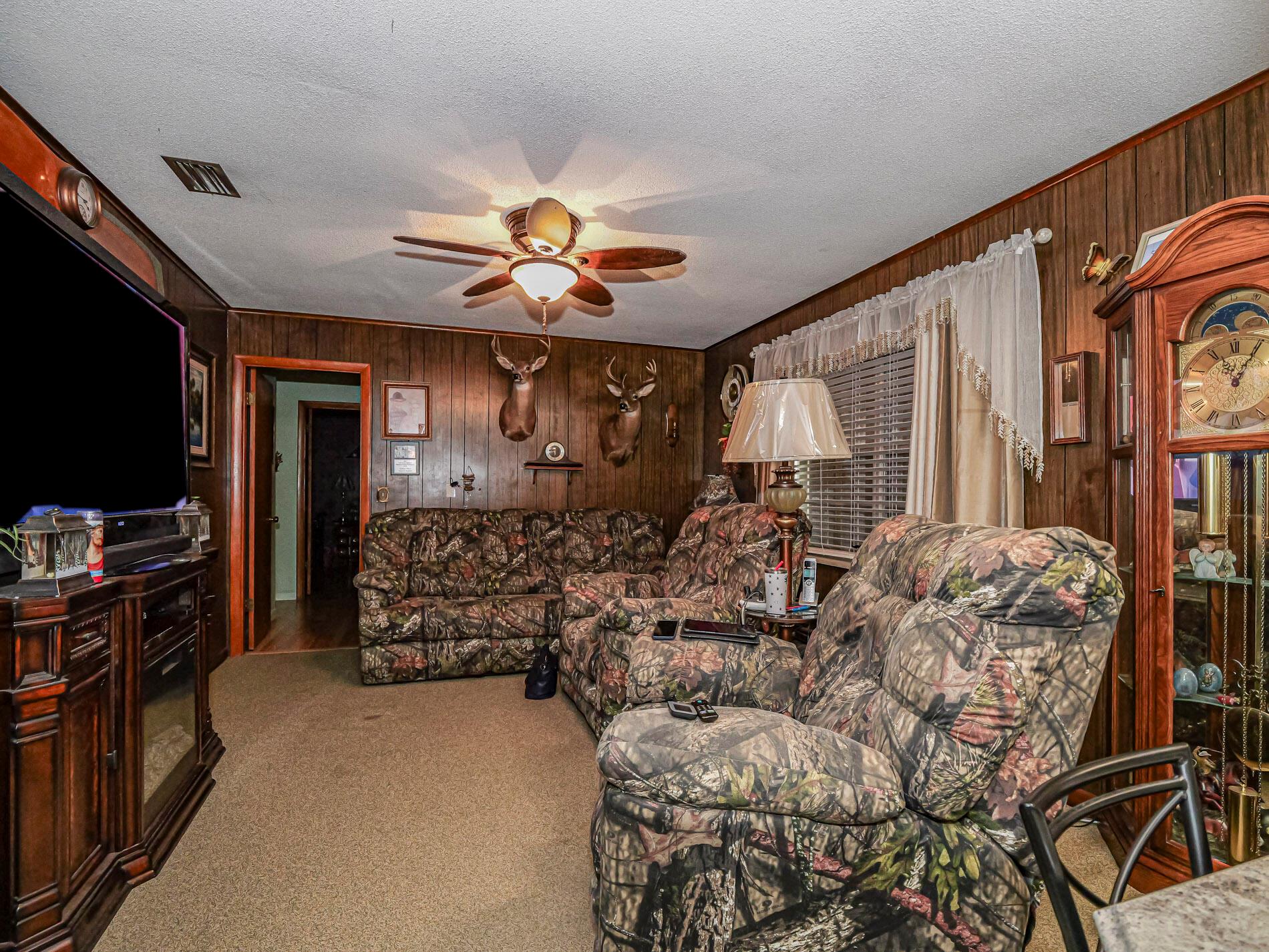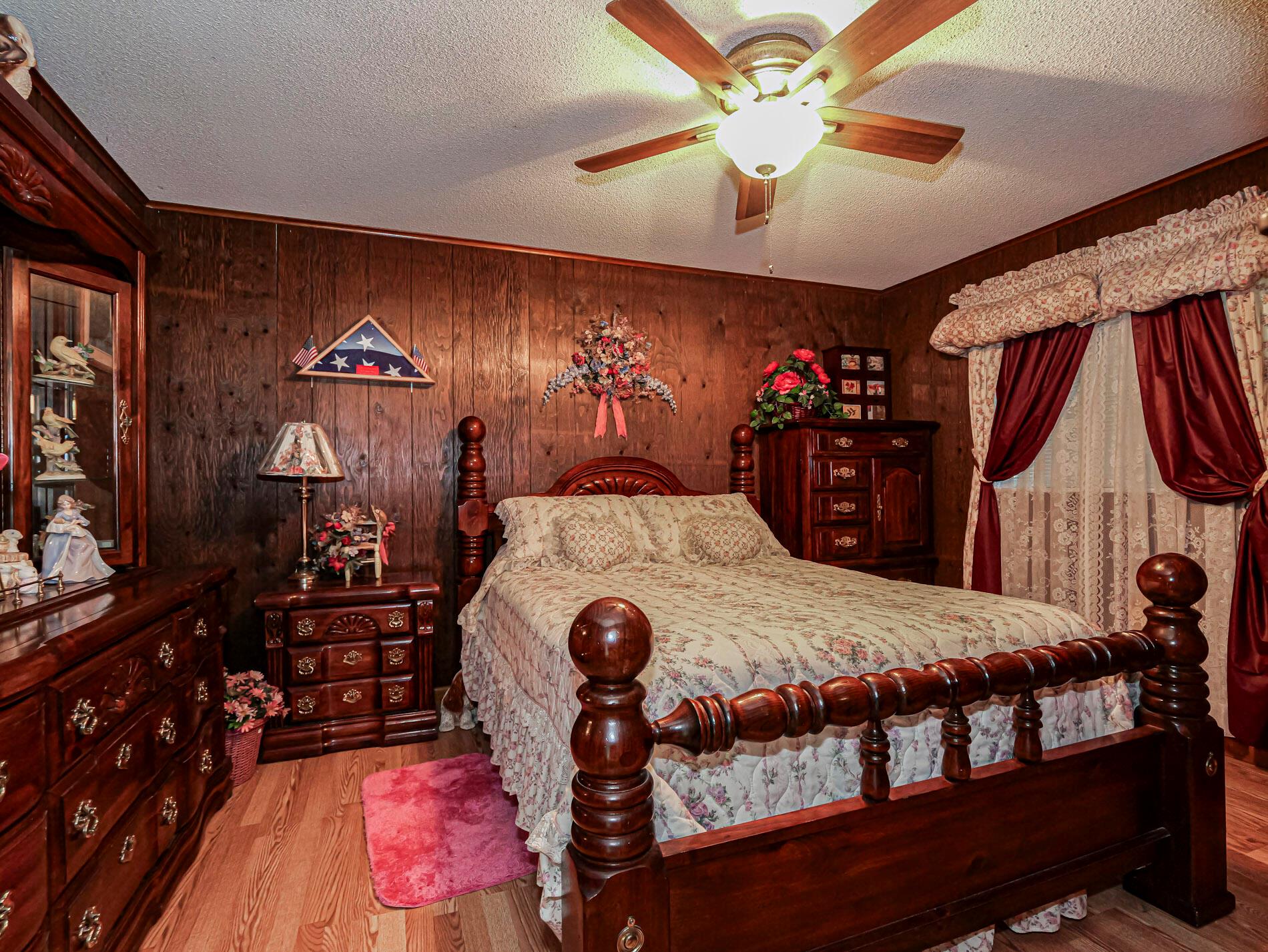 Opportunity to own 10 well-tended and fenced acres w/updated CBS 3/2 home, 2 newer pole barns, (40x40 and 34X24) 2 covered, custom porch areas, shop, greenhouse, irrigated artesian well stocked pond, newer central air and newer metal roof (2021) on main home, plus water purification system. 2 dog pens, beautifully maintained with plenty of room for animals and more! Large 5th Wheel RV is included in sale and set up with it's own covered area and decking. Enjoy a country lifestyle. Rare find. Must see. Room sizes approx.