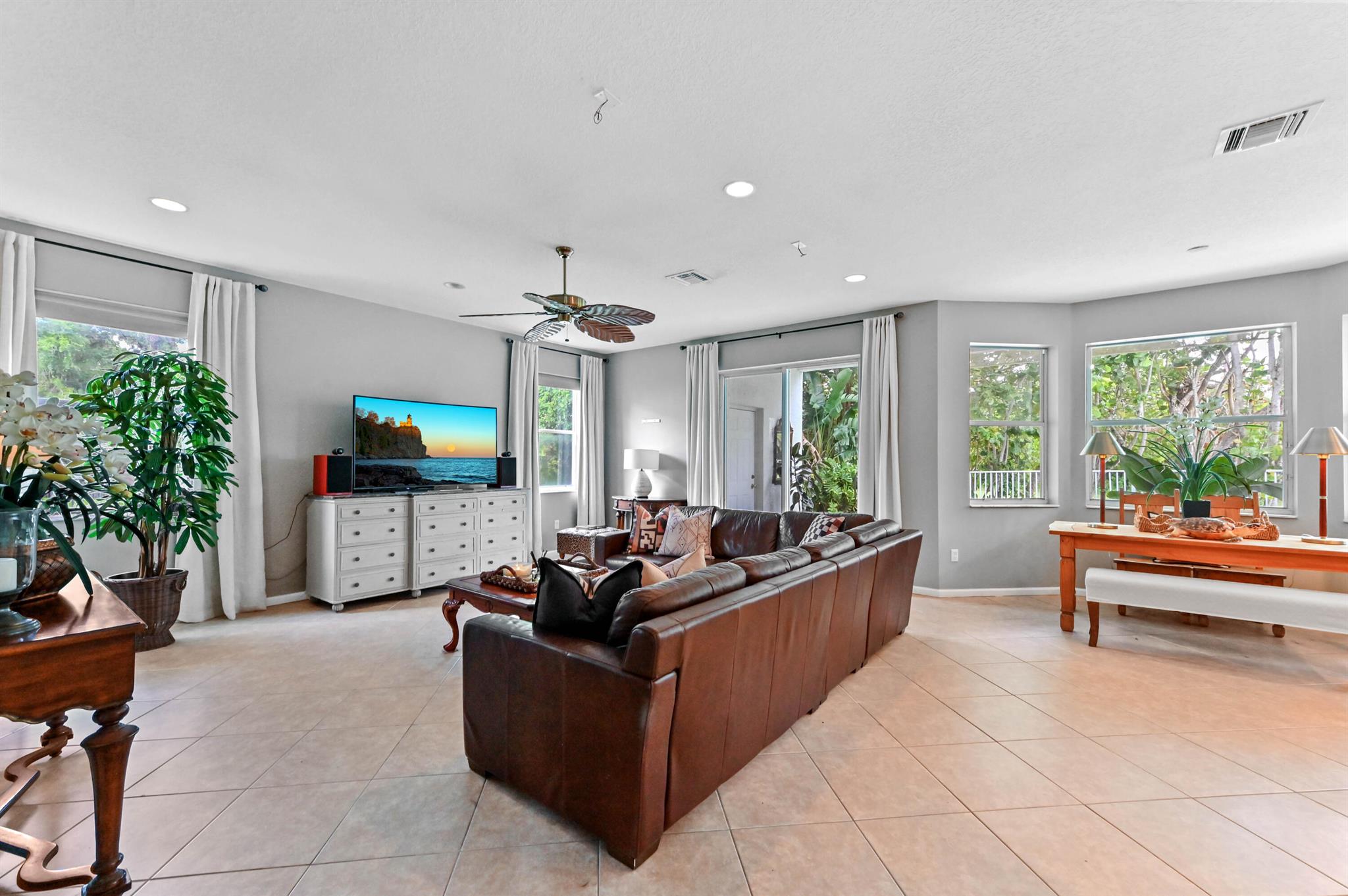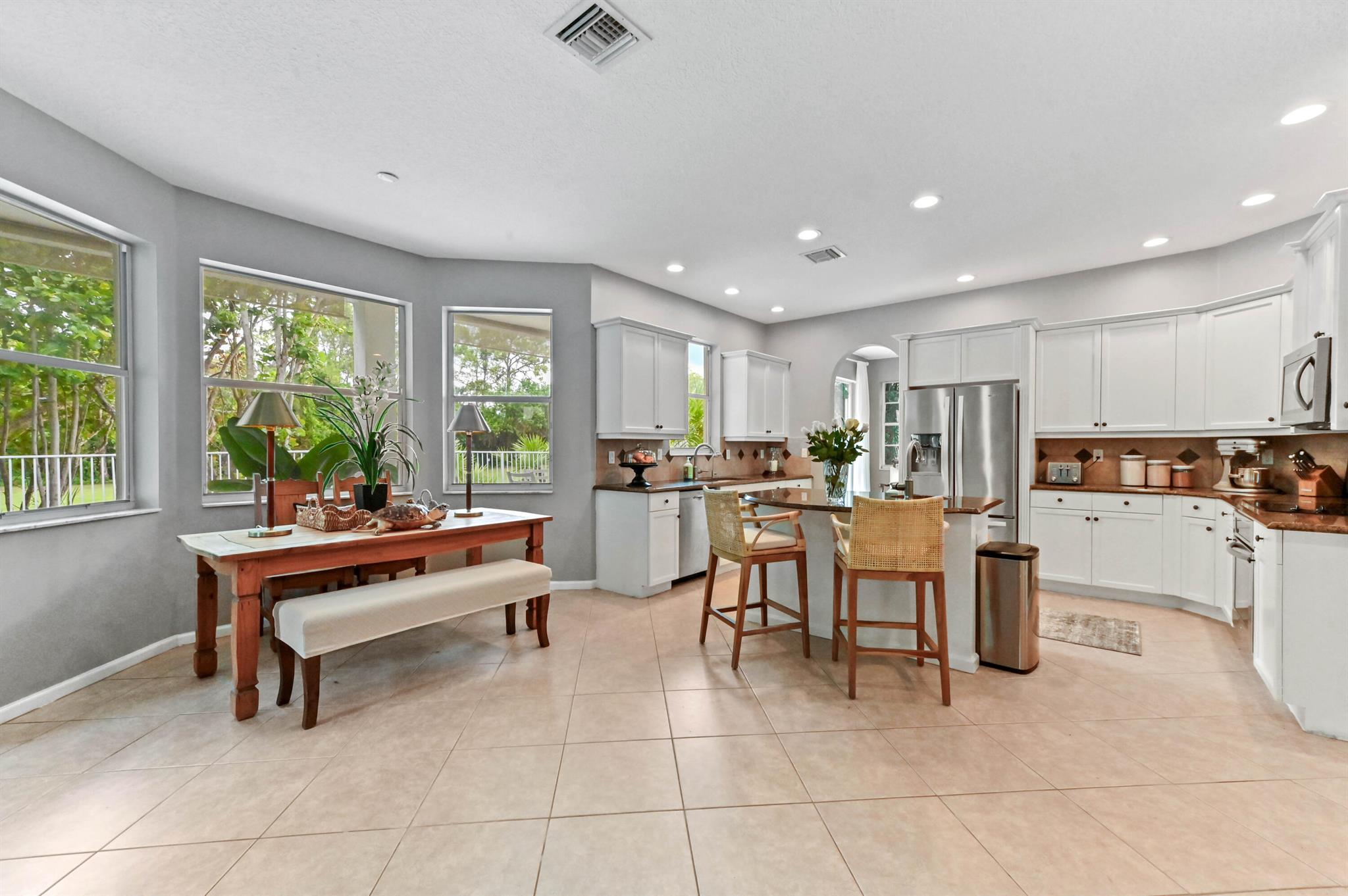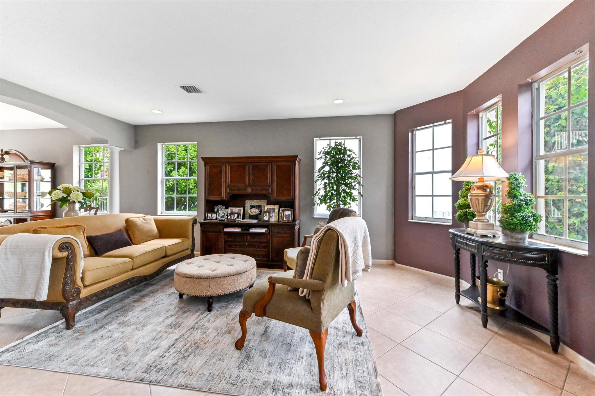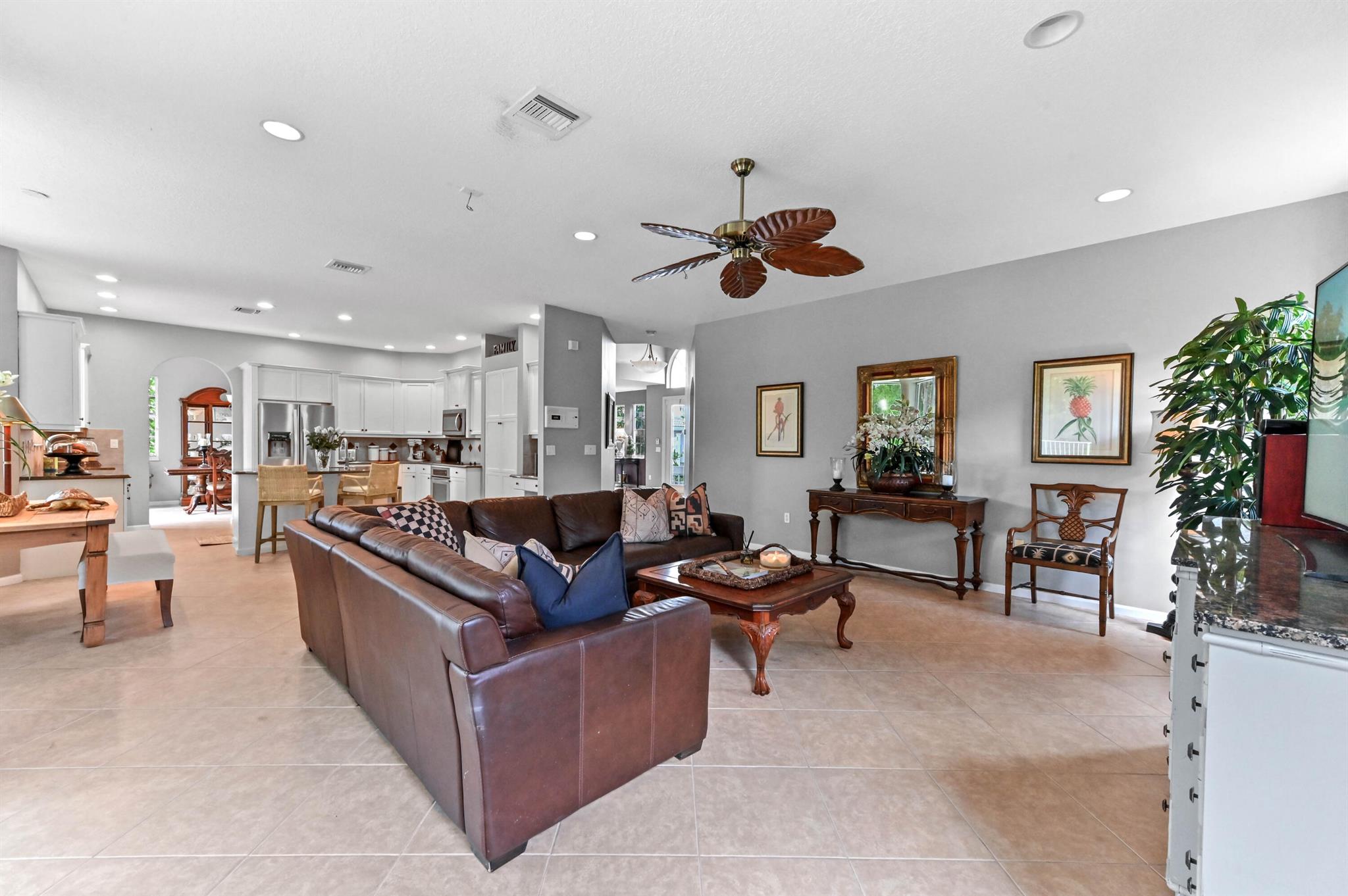 Welcome to your dream pool home in the prestigious Madison Green community! Nestled in a gated cul-de-sac, this stunning 2-story residence offers comfort, elegance, and resort-style living right on the golf course.Step through elegant French double doors into a spacious entry-level living room, where tile flooring flows seamlessly into a chef-inspired kitchen featuring a large island with sink and bar seating, walk-in pantry, cooktop, and 42'' cabinetry for ample storage. The dedicated laundry room includes a utility tub, washer, and dryer for convenience.Enjoy outdoor living at its finest with a private pool, adult swim area, and a cabana perfect for relaxing or entertaining. The covered and open patio extends into a fenced yard, providing privacy and space.