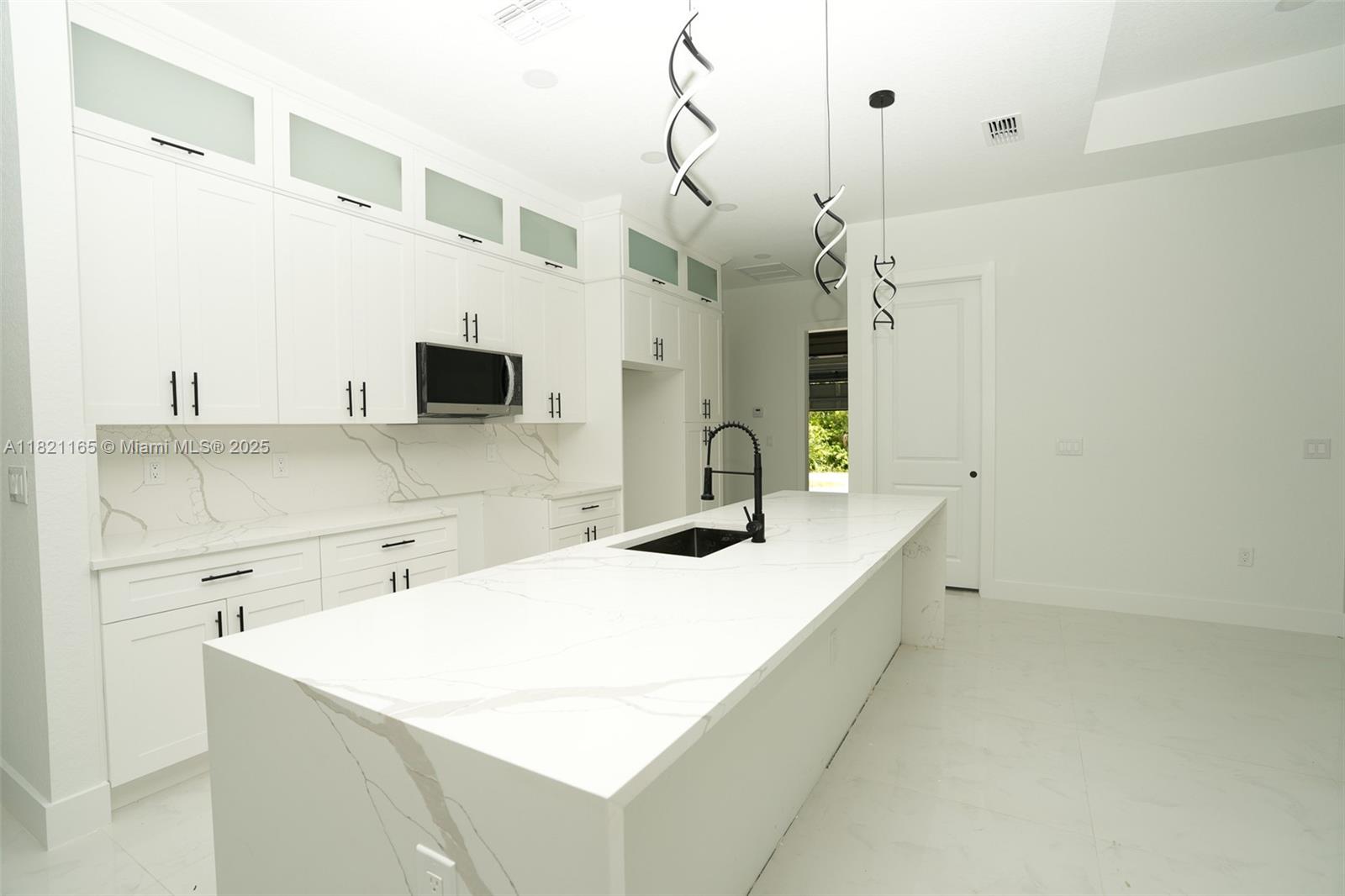 Now Offering $10,000 Toward Closing Costs for Qualified Buyers! This elegant one-story home under construction combines modern comfort with timeless design. It features 3 bedrooms, 2 bathrooms, and a den. The chef-inspired kitchen showcases ceiling-height soft-close cabinetry, quartz countertops, a waterfall island, and sleek black fixtures. Complete with stainless steel appliances and tile flooring throughout, it’s both stylish and functional. Designed with high ceilings and tall doors for an open, airy feel. The primary suite offers a walk-in closet and luxurious ensuite bath. Enjoy year-round outdoor living on the screen-enclosed lanai. Additional highlights include a 2-car garage, stormwater management, and a 0.5-acre lot, all located in Flood Zone X (no flood insurance required).
