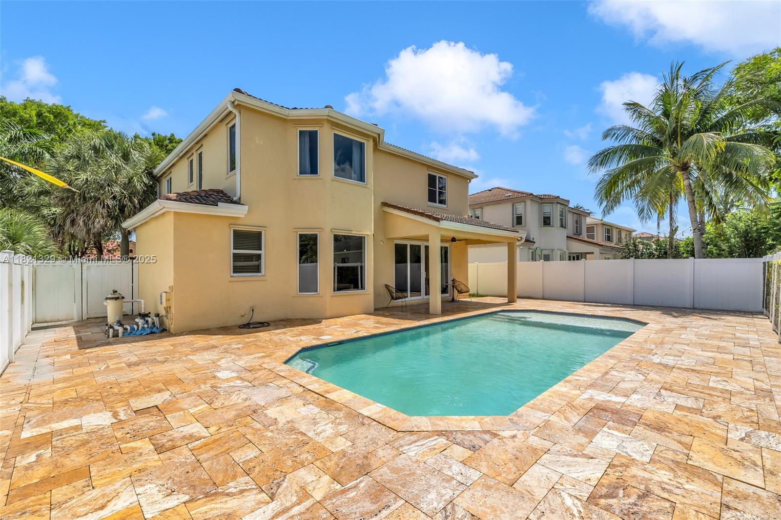 FABULOUS MOVE-IN READY POOL GEM IN HIGHLY DESIREABLE, GUARD GATED RIVIERA ISLES! DOUBLE DOOR FOYER ENTRY LEADS TO GRAND OPEN LIVING/DINING ROOM! SPACIOUS FAMILY ROOM! LARGE GOURMET KITCHEN WITH CENTER ISLAND & BUTLER'S PANTRY! BREAKFAST NOOK OVERLOOKS GORGEOUS POOL AREA! HUGE MASTER SUITE & SITTING ROOM! 2 SINKS, ROMAN TUB & REMODELED SHOWER! IMPRESSIVE CUSTOM WALK-IN CLOSET! PRIVATE FENCED POOL/ENTERTAINMENT AREA WITH TRAVERTINE MARBLE DECK, ELEGANT FOUNTAINS & COVERED PATIO! IMPACT WINDOWS/DOORS, CROWN MOLDING, TILE DOWNSTAIRS, WOOD UPSTAIRS, NEWER WATER HEATER & A/C, SURROUND SOUND SPEAKERS, ALARM & FRONT LOADING LAUNDRY & SINK ADDS TO THE VALUE! COMMUNITY FEATURES RESORT POOL, SPA, PICKLE BALL, TENNIS, GYM, BASKETBALL COURTS & AWESOME AMMENITIES! TO SEE IS TO BUY THIS WINNER TODAY!