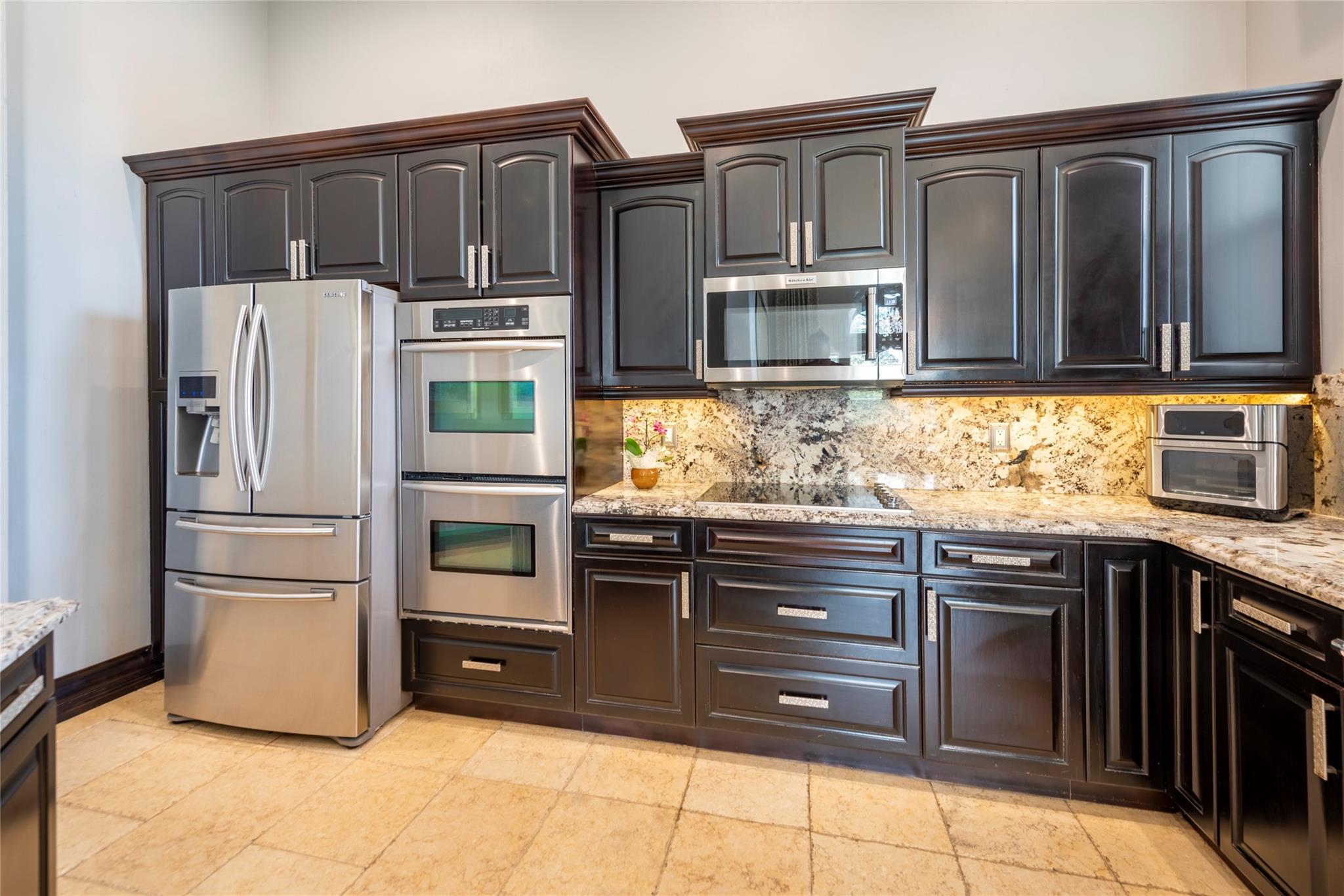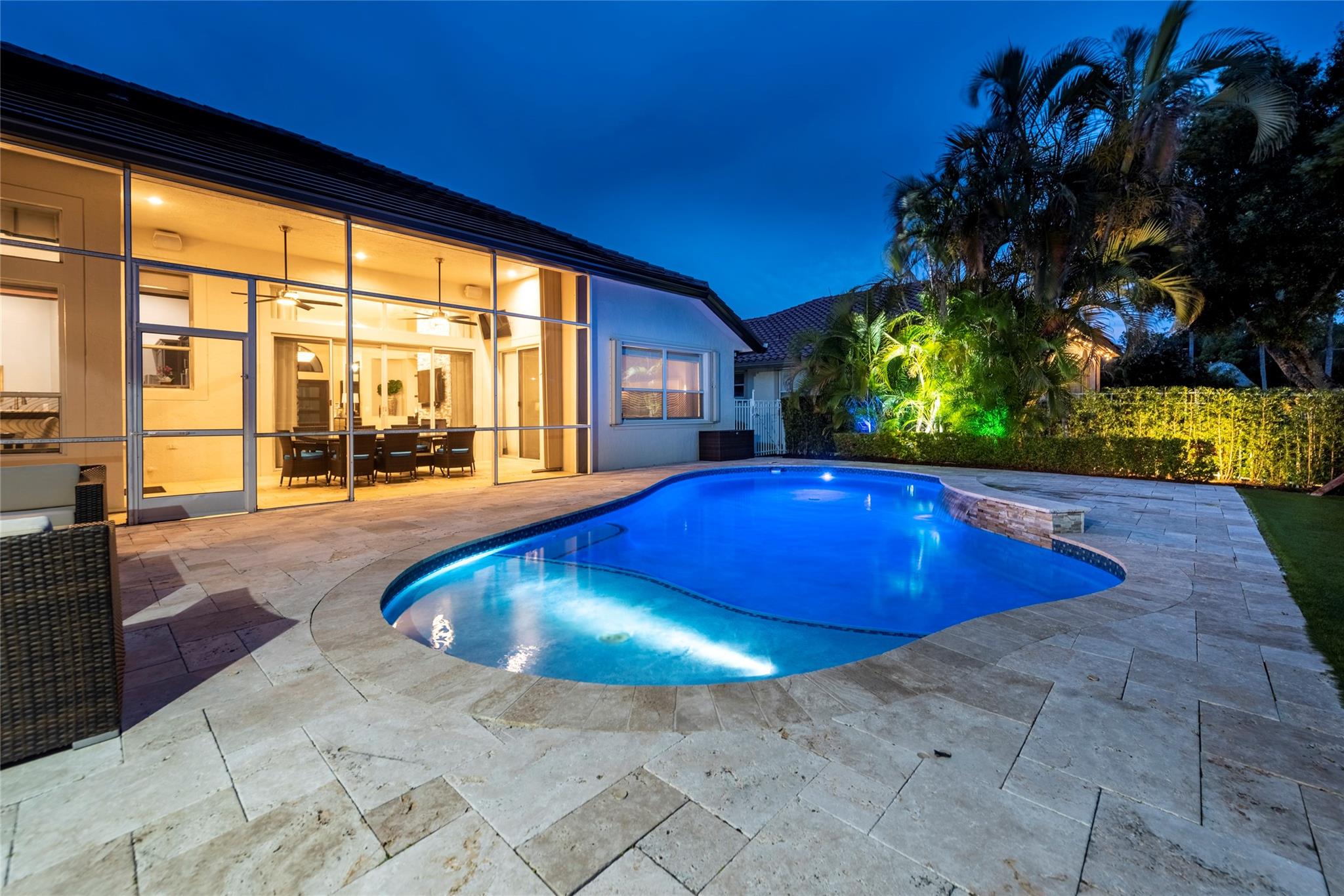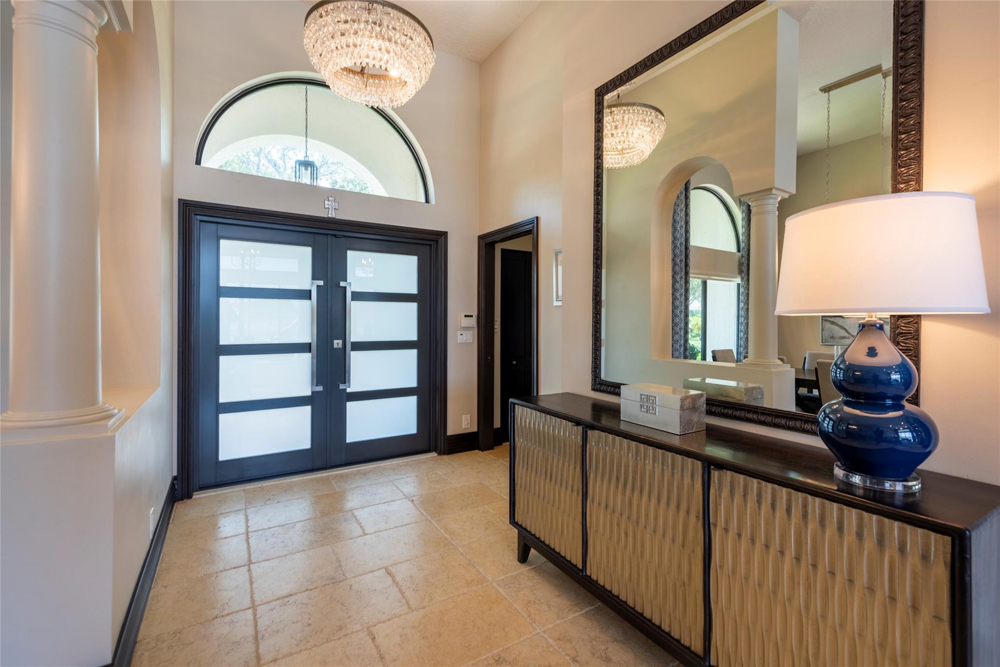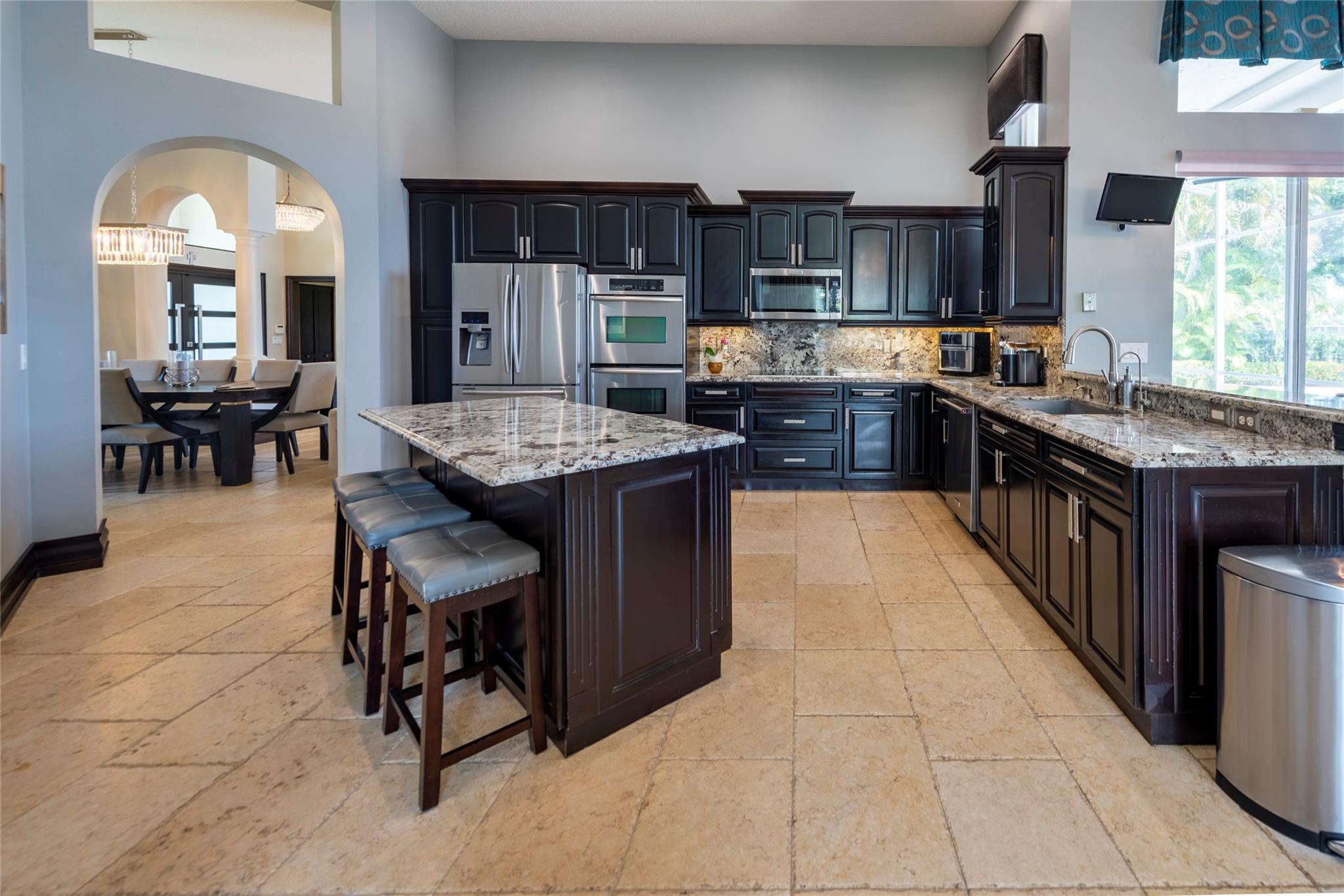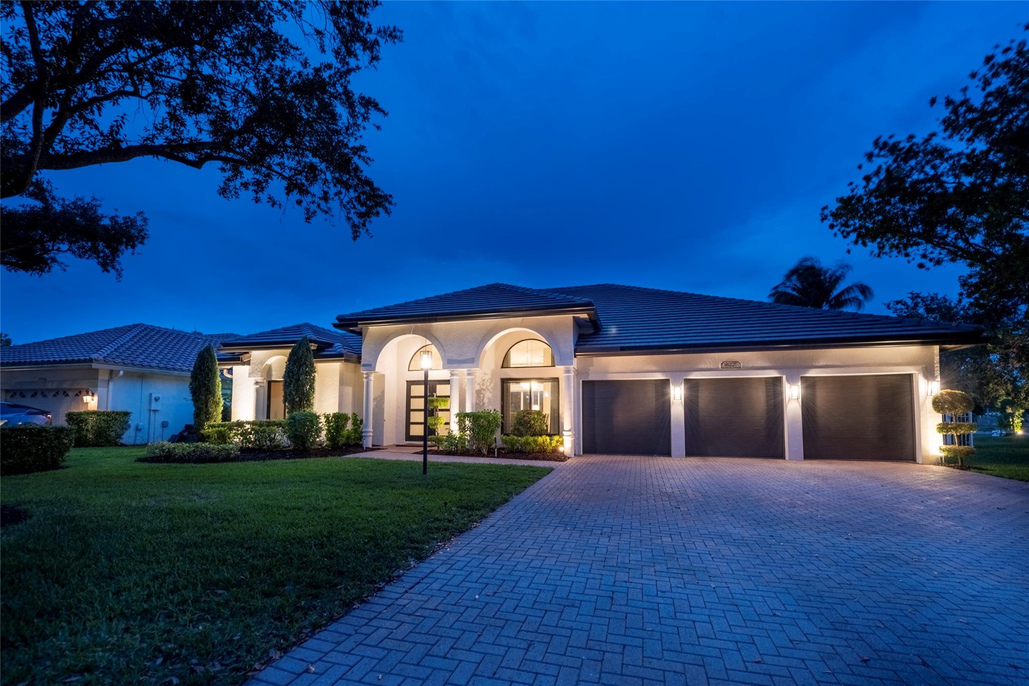 Stunning 5BR/3BA waterfront estate home in premium gated community. A new flat tile roof & front impact windows & doors highlight the substantial upgrades. The interior features a spacious open layout, soaring ceilings, renovated bedrooms & bathrooms, & amazing water views. The gourmet kitchen offers an over-sized island, granite countertops, stainless steel appliances, & custom cabinetry. The separate living & family rooms feature custom TV walls & an electronic fireplace, perfect for upscale entertaining or everyday family comforts. The private primary suite offers dual walk-in closets w/organizers, a luxurious ensuite bath & serene lake/pool views. Enjoy true resort-style, waterfront living w/renovated pool/waterfall & lush landscaping. Fenced yard. Newly paved streets, A-rated schools.