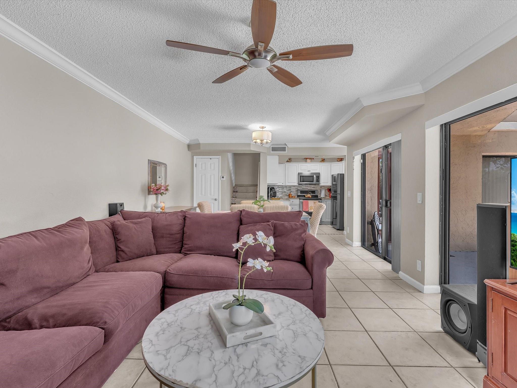 Rarely available 3 BD / 3 FULL BATH Townhome w/ Private Courtyard. Upgraded kitchen has granite countertops, tile backsplash & stainless steel appliances. 2 bedrooms upstairs, including Primary Suite. Both bedrooms upstairs with access to the patio. 1st Floor bedroom can be a work at home office, if needed. Sliding glass doors in all bedrooms. Private Courtyard is great for pets and the weekend barbecues. A/C & appliances all under 5 yrs old. Highly rated Elementary, Middle & High School! Close to FAU as well. Only 8 miles to the Deerfield Beach Pier, Ocean, Nightlife & Restaurants. Amenities include Pool, Sauna, Tennis Court, Kids Playground, Fitness Center, Clubhouse.