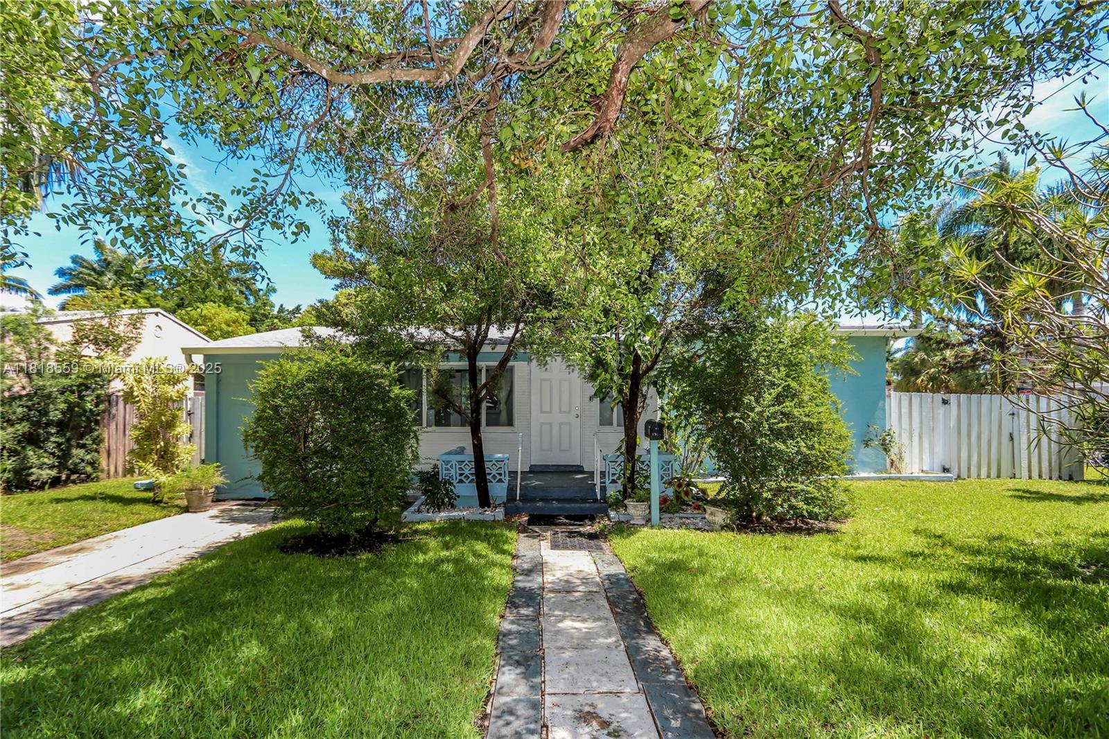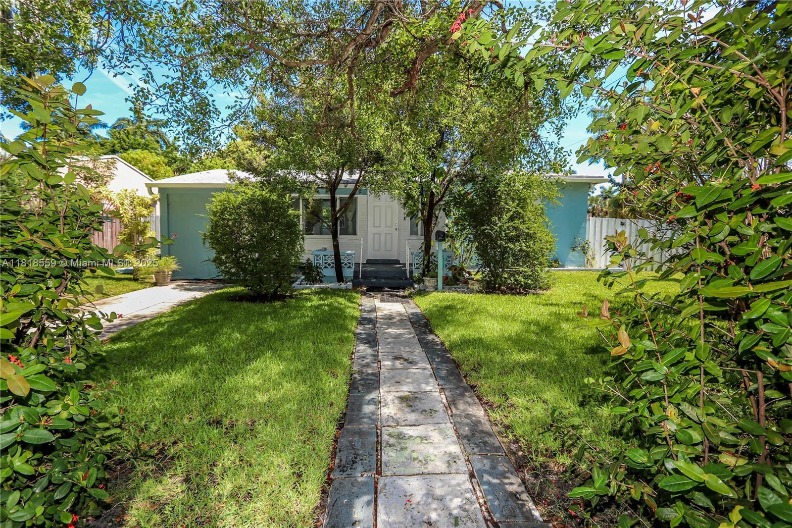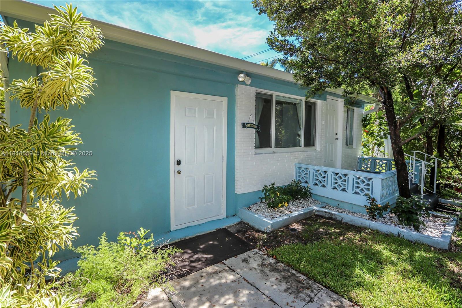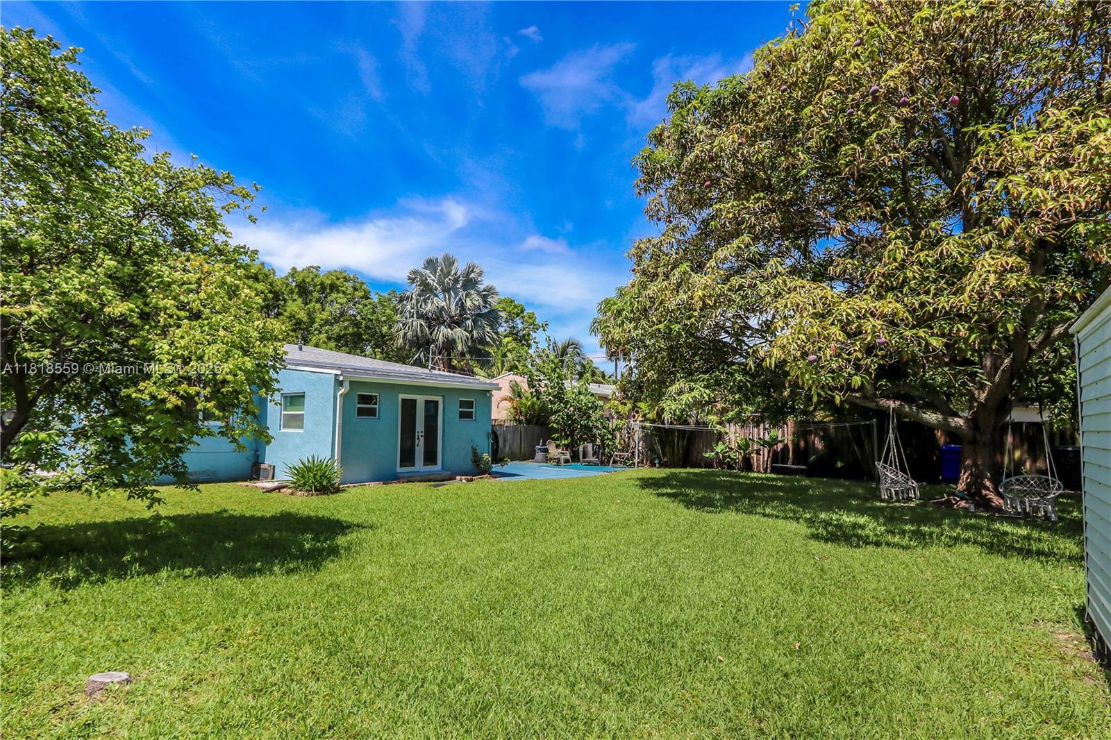 Welcome to this beautiful 2-bedroom, 2-bath home. Situated on a spacious corner lot. This 2-bedroom, 2-bath home includes a versatile additional room with its own cabana bath and private entrance—perfect as a home office. Step inside to original wood floors, crown molding, a kitchen updated with stainless steel appliances, quartz countertops, classic shaker cabinets, and an open living and dining concept. Enjoy the outdoors year-round with an open patio or under the shade of a majestic mango tree. You’ll also find mulberry, banana, and star fruit trees! Extra features include a large utility room, extra storage shed, 2020 shingle roof, and impact windows and doors!! Garage has been converted.