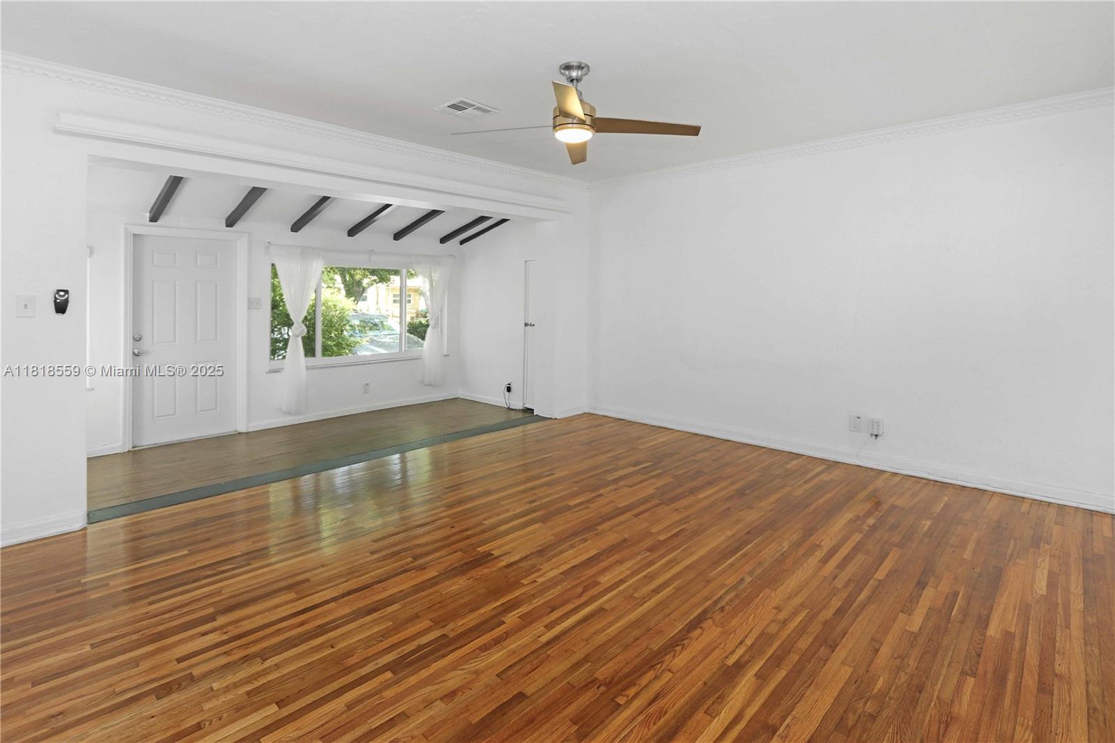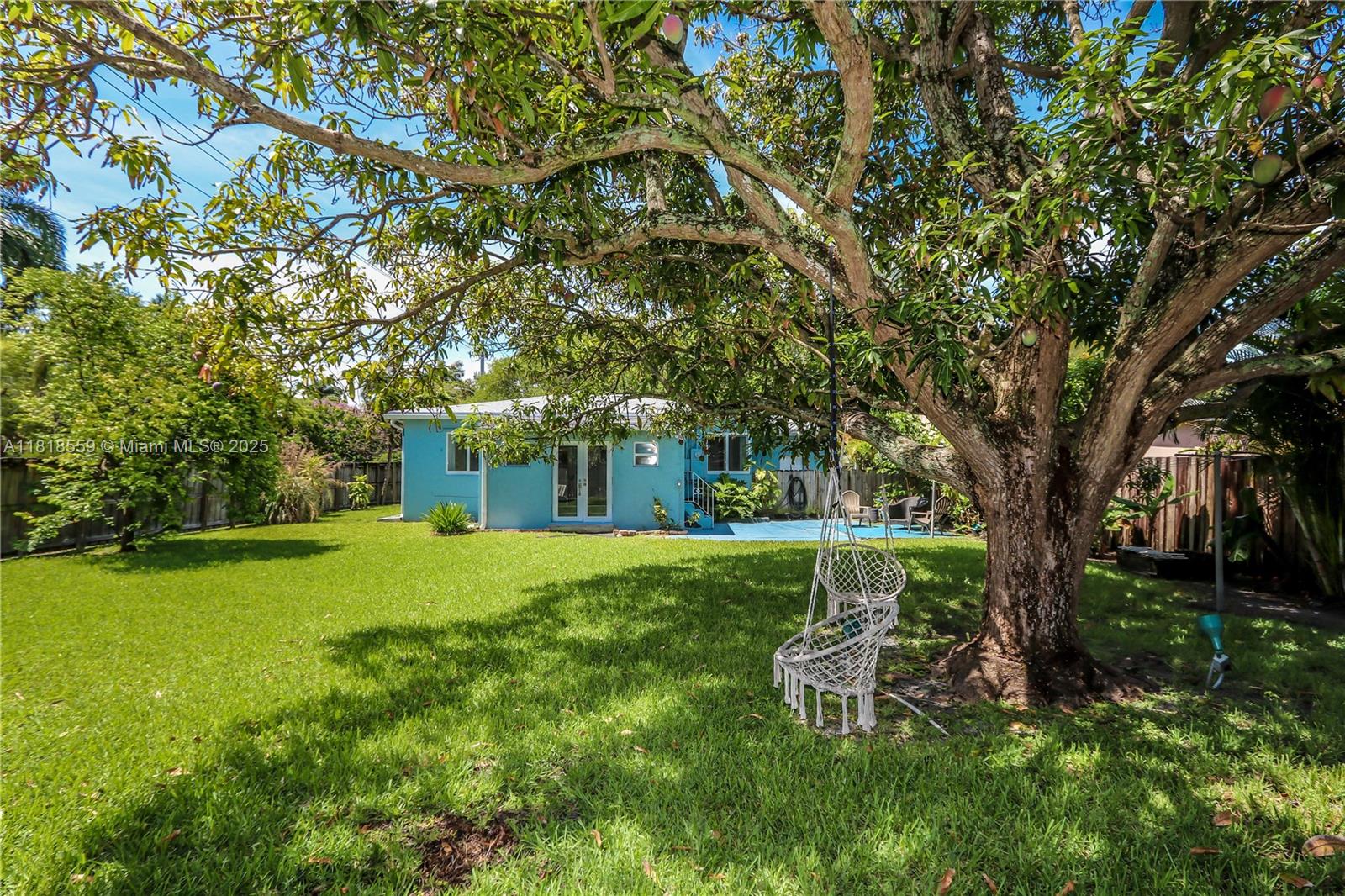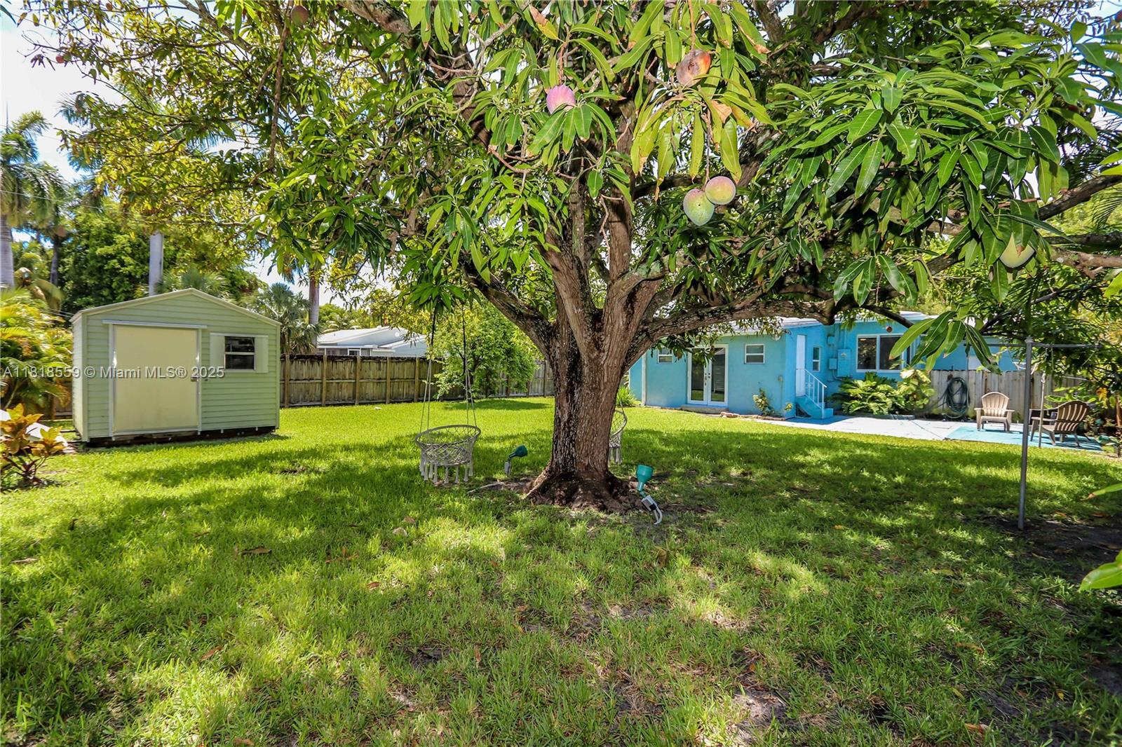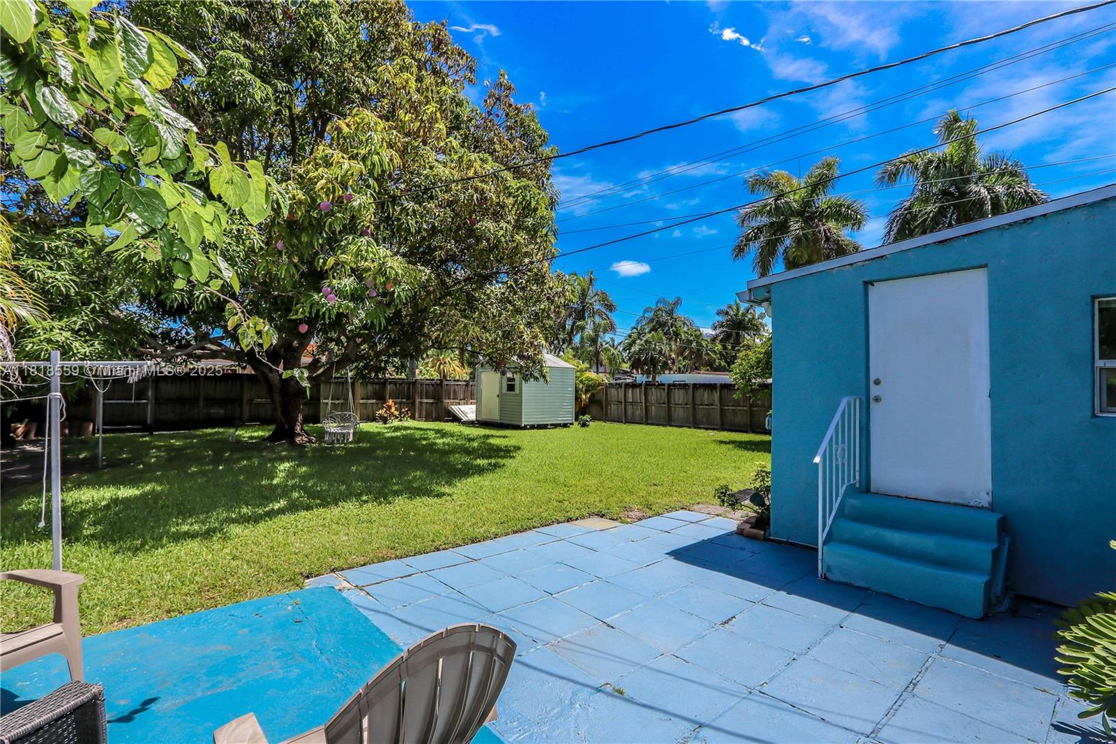 Welcome to this beautiful 2-bedroom, 2-bath home. Situated on a spacious corner lot. This 2-bedroom, 2-bath home includes a versatile additional room with its own cabana bath and private entrance—perfect as a home office. Step inside to original wood floors, crown molding, a kitchen updated with stainless steel appliances, quartz countertops, classic shaker cabinets, and an open living and dining concept. Enjoy the outdoors year-round with an open patio or under the shade of a majestic mango tree. You’ll also find mulberry, banana, and star fruit trees! Extra features include a large utility room, extra storage shed, 2020 shingle roof, and impact windows and doors!! Garage has been converted.