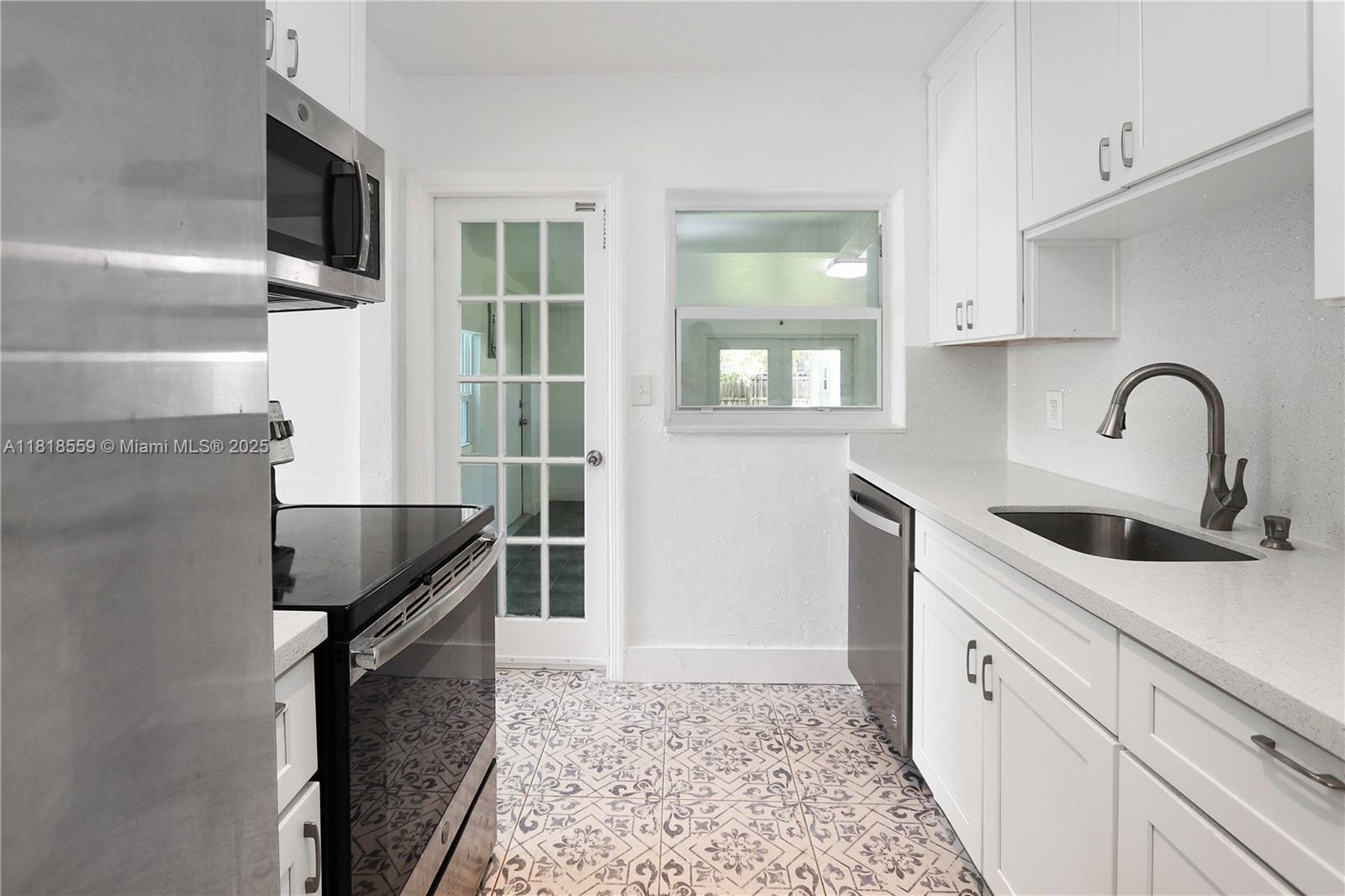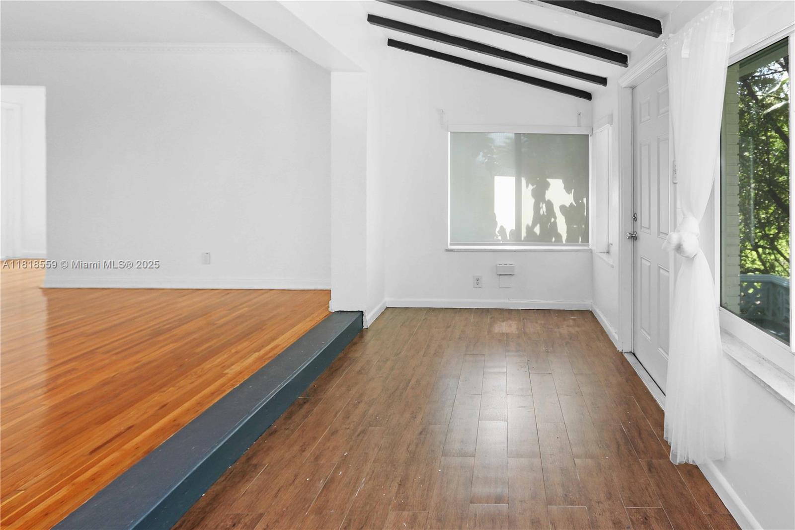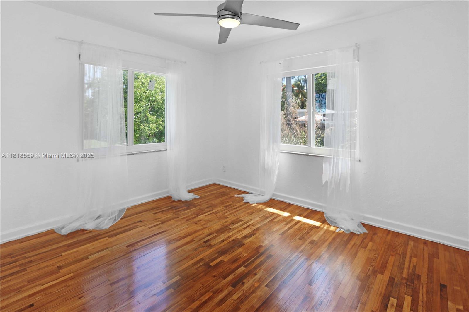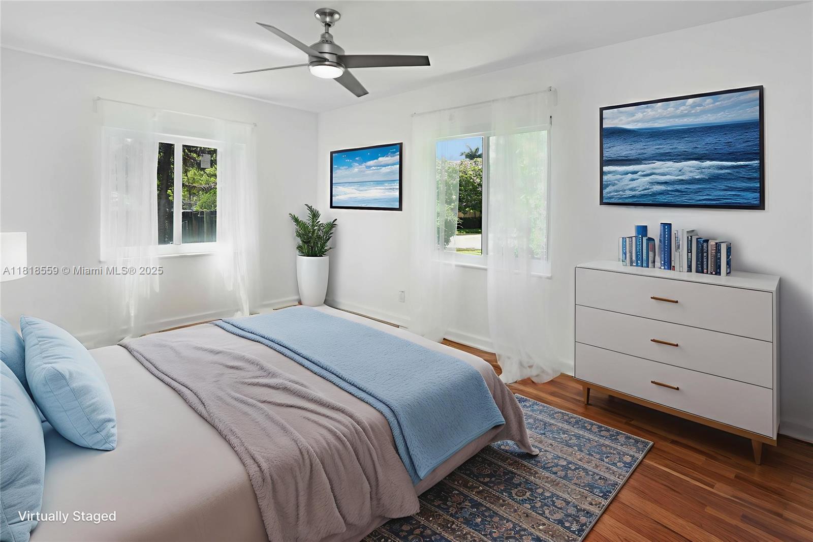 Welcome to this beautiful 2-bedroom, 2-bath home. Situated on a spacious corner lot. This 2-bedroom, 2-bath home includes a versatile additional room with its own cabana bath and private entrance—perfect as a home office. Step inside to original wood floors, crown molding, a kitchen updated with stainless steel appliances, quartz countertops, classic shaker cabinets, and an open living and dining concept. Enjoy the outdoors year-round with an open patio or under the shade of a majestic mango tree. You’ll also find mulberry, banana, and star fruit trees! Extra features include a large utility room, extra storage shed, 2020 shingle roof, and impact windows and doors!! Garage has been converted.