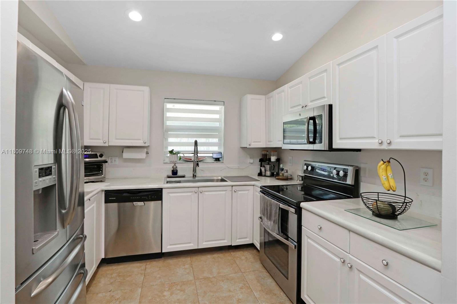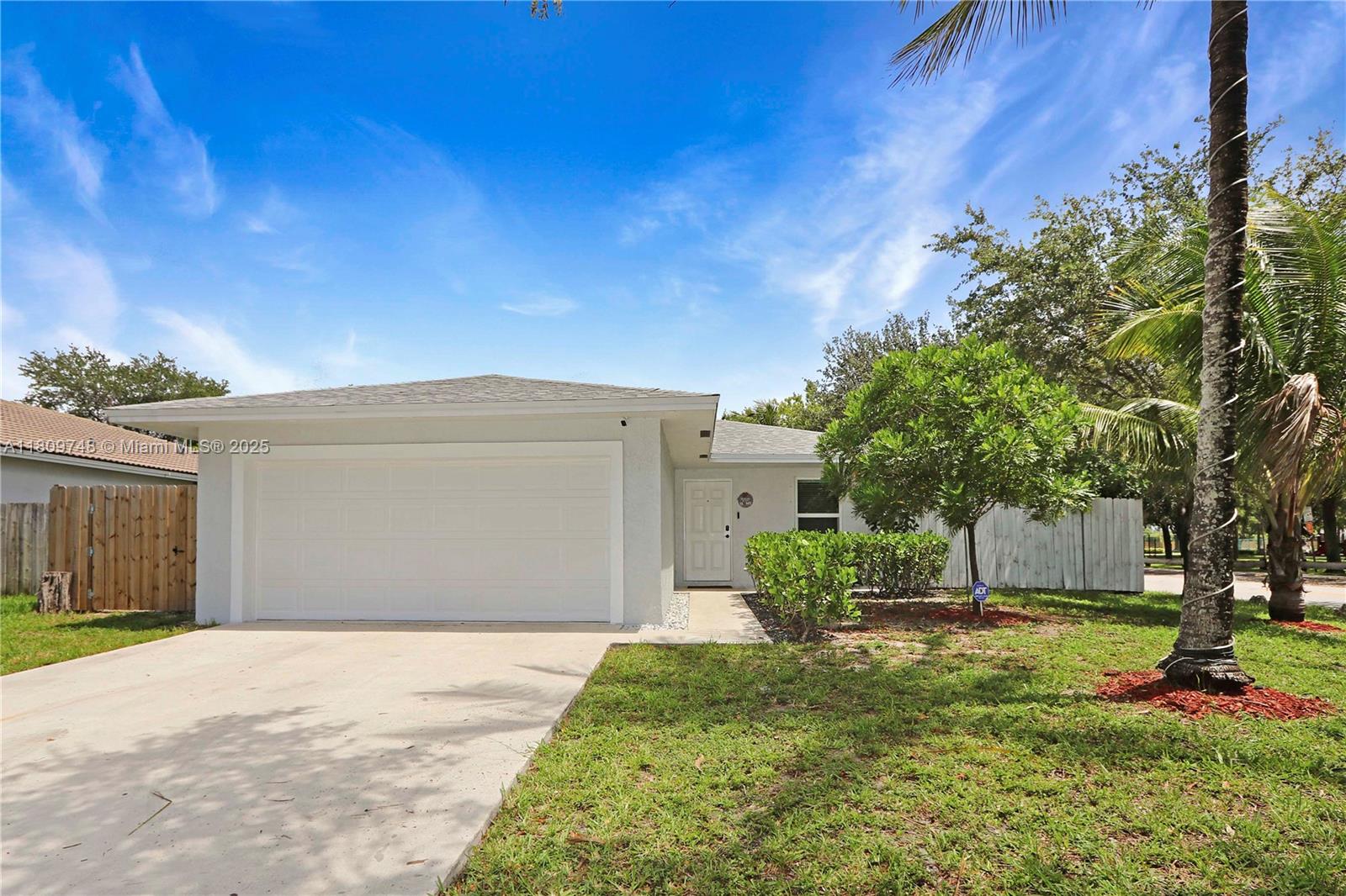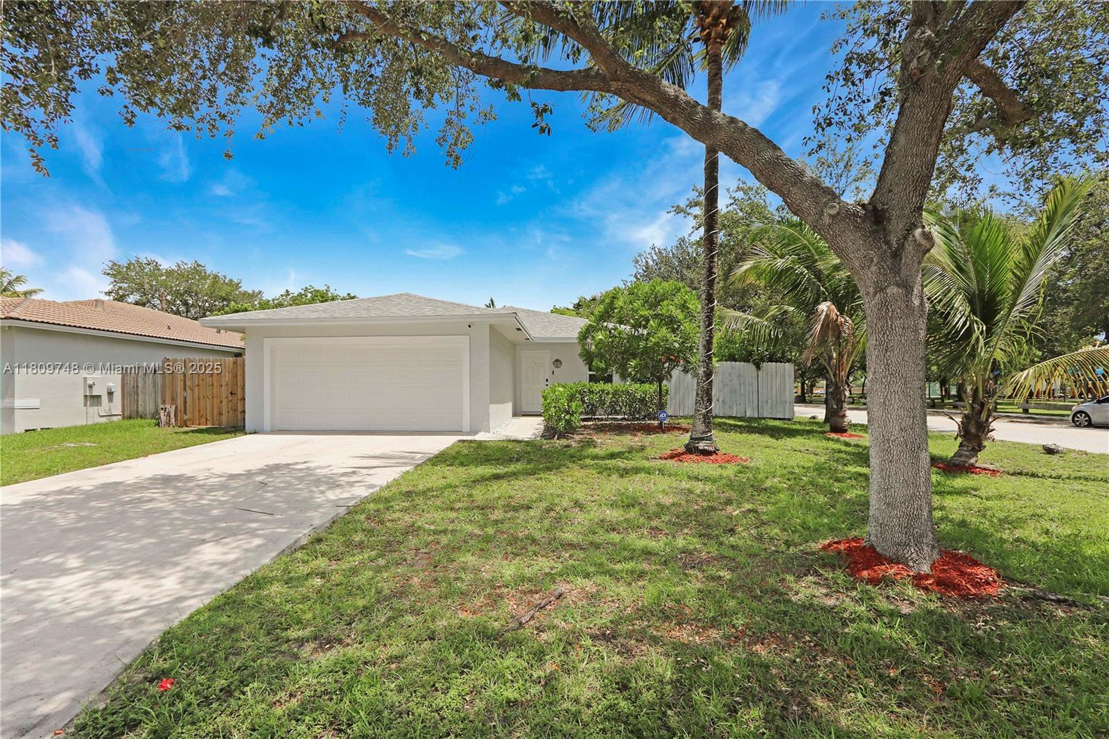 Spacious single story home, 4 bedrooms, 2 bathrooms, and 2 car garage. This home was converted to 3/2 with huge living area. Home is on a corner lot completely fenced. Freshly painted. Roof was replaced in 2022, new impact windows, newer A/C, tankless water heater, washer and dryer. Spacious master with walk in closets. Tiled floors and laminate throughout. Room for a boat on the side of the home. Storage shed is included. Great location. No HOA.