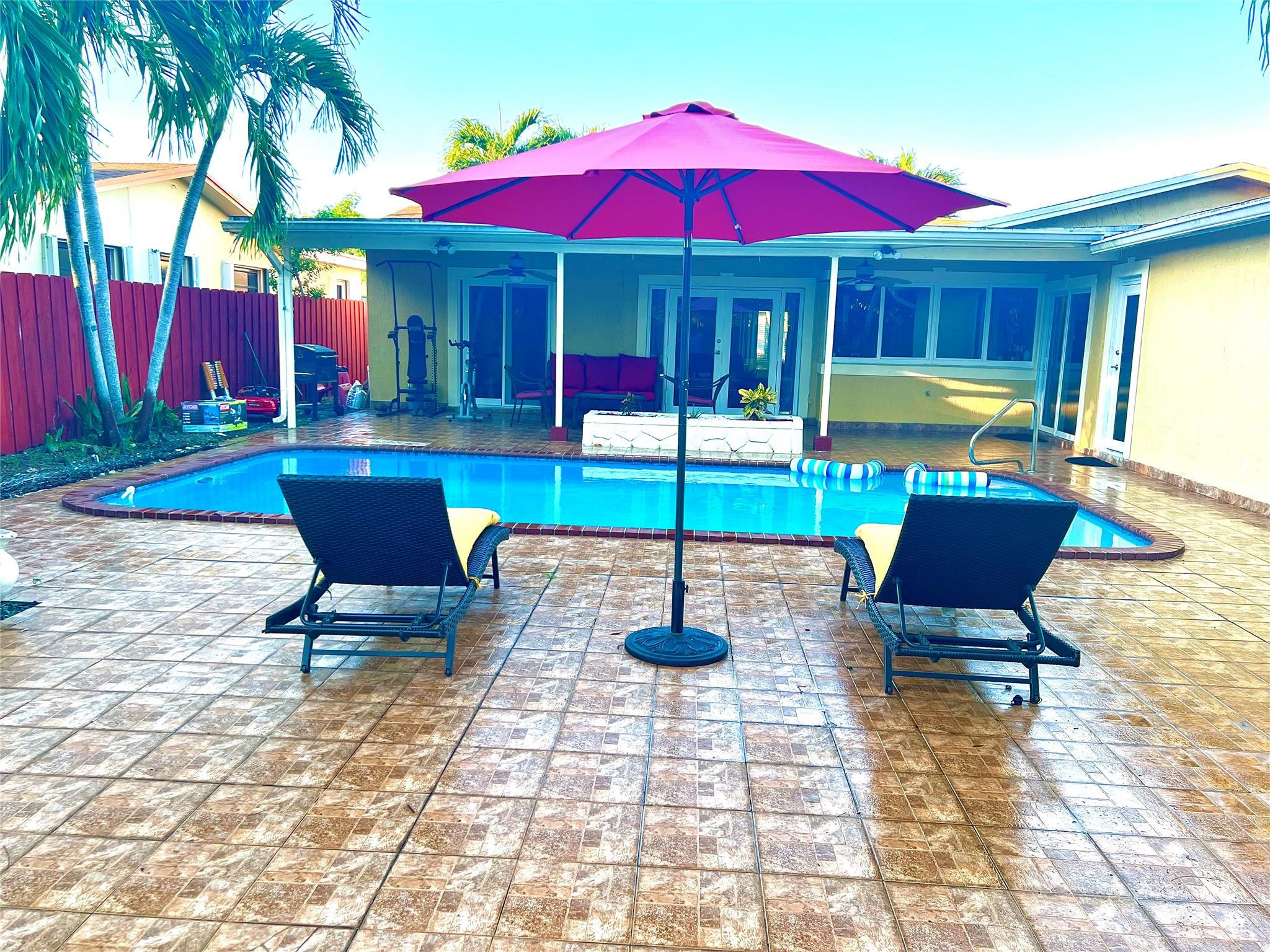 This beautifully designed and spacious 4-bedroom,2 bathrooms home offers a blend of indoor comfort and outdoor living. The home features a thoughtful split floor plan for privacy and convenience. The master bedroom has a walk-in closet with dual sinks. The kitchen has granite countertops and stainless-steel appliances. There is a separate formal dining area, direct view to the pool from literally every area of the house. Featuring a beautifully landscaped pool area with a gazebo for entertaining or relaxing. Enjoy peace of mind with impact windows and doors. A large backyard that has fruit trees. The rear yard is fenced. Two car garage, no homeowner's association. Solar panels to reduce electricity cost.