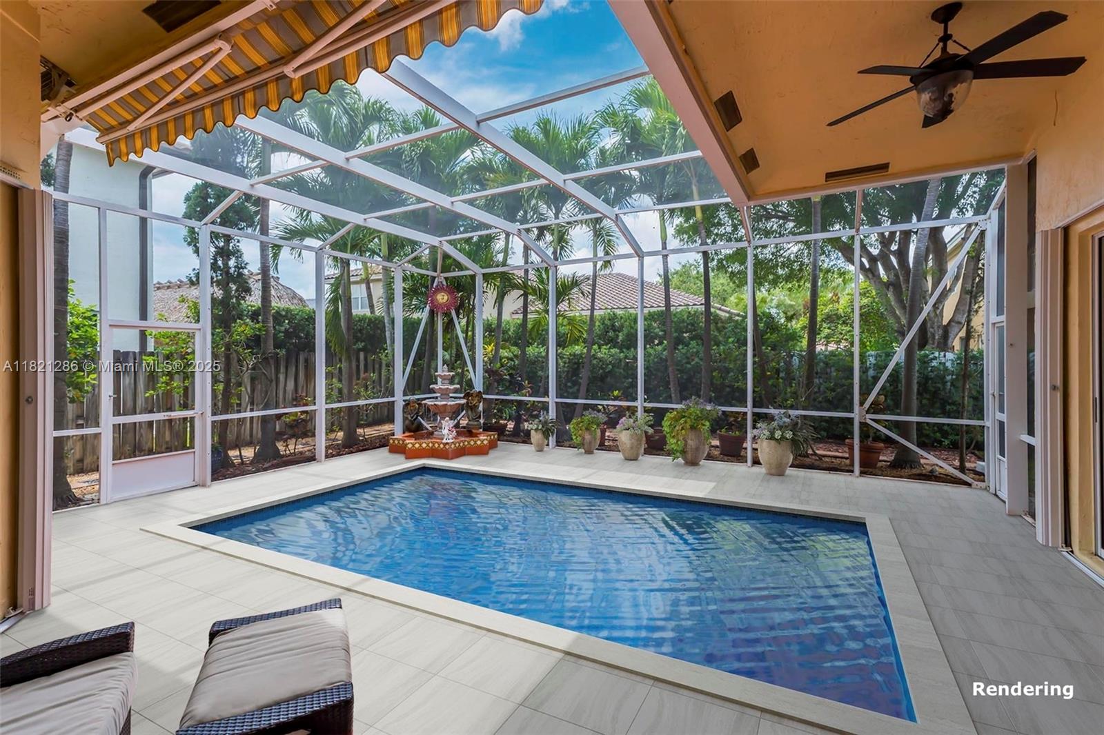 Charming, one story 5BD/3BA Mediterranean-style home in the sought-after Breaker Estates @ Pembroke Isles. This well-maintained home features a well designed layout that flows seamlessly throughout- PERFECT for comfortable living and entertaining. Home features NEW roof 2023, accordion shutters throughout, NEW A/C unit 2025 and second A/C unit 2020, . Enjoy your screened patio with soothing fountain that creates the perfect space to unwind. HOA includes: 24h security, internet, cable, maintenance, alarm monitoring. Remodeled CLUB HOUSE includes: Gym, tennis courts, pickleball courts, basketball court, soccer field, exercise room, sauna, 3 pools, playground, picnic area and more! Conveniently located near major highways, shopping and A+Schools!