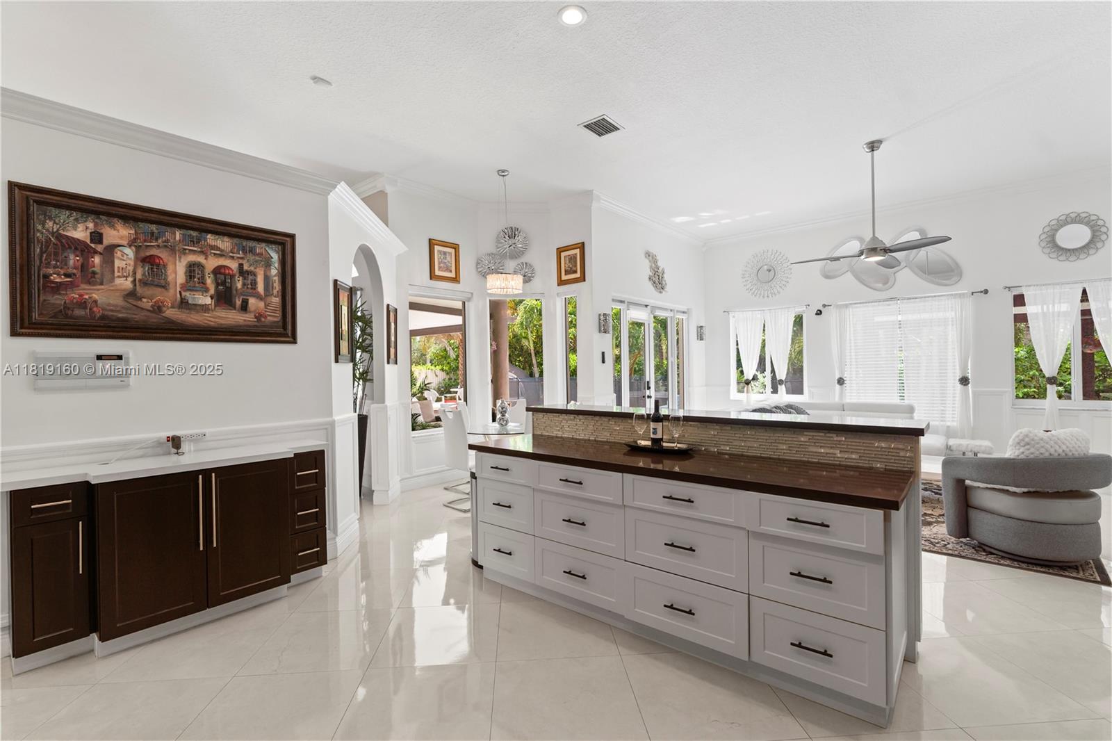 Step into timeless elegance at this meticulously remodeled residence, where high design meets relaxed Florida living. Situated on a generous 15,000 sq. lot in one of Palmetto Bay's most exclusive enclaves, this home offers curated interiors, soaring vaulted ceilings, and bespoke finishes throughout. The chef's kitchen is a masterpiece crafted with sleek quartz countertops, custom cabinetry, and premium appliances. Spacious living areas flow effortlessly into the backyard oasis, where a sparkling pool, custom-built pergola, and fully outfitted outdoor kitchen set the stage for unforgettable entertaining. Whether you're hosting under the stars or enjoying quiet moments in your private retreat, this home offers a rare blend of sophistication, comfort, and lifestyle.