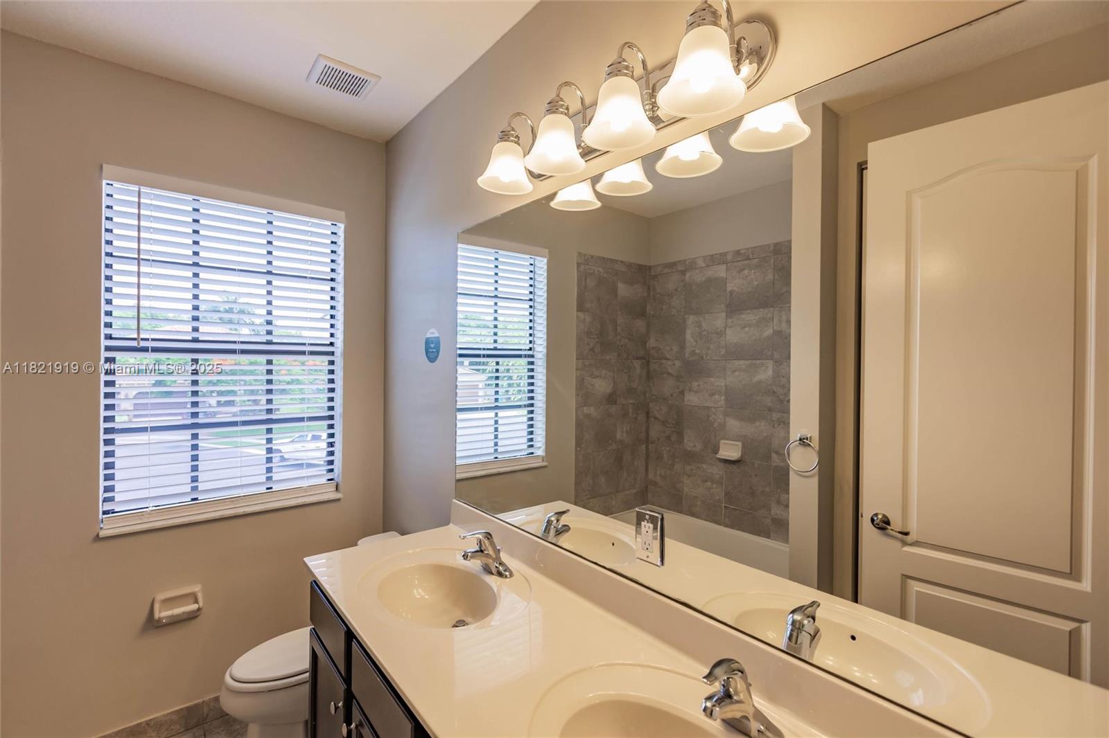 Beautiful 2-story home featuring a striking brick-accented front, shuttered exterior windows, and a driveway with elegant pavers. The front yard landscaped with grass & manicured shrubs while the backyard offers a blank canvas to design your dream outdoor living space. Step inside to tile floors downstairs and lvp floor on the stairs and upstairs living areas. Neutral paint color throughout that complements any decor. Upon entry, you'll find a formal living room perfect for entertaining. The open-concept family room flows seamlessly into the kitchen, featuring an island & stainless steel appliances. All bedrooms are upstairs, have ceilings fans, raised panel doors and are good sized! Thanks for showing this gorgeous home!