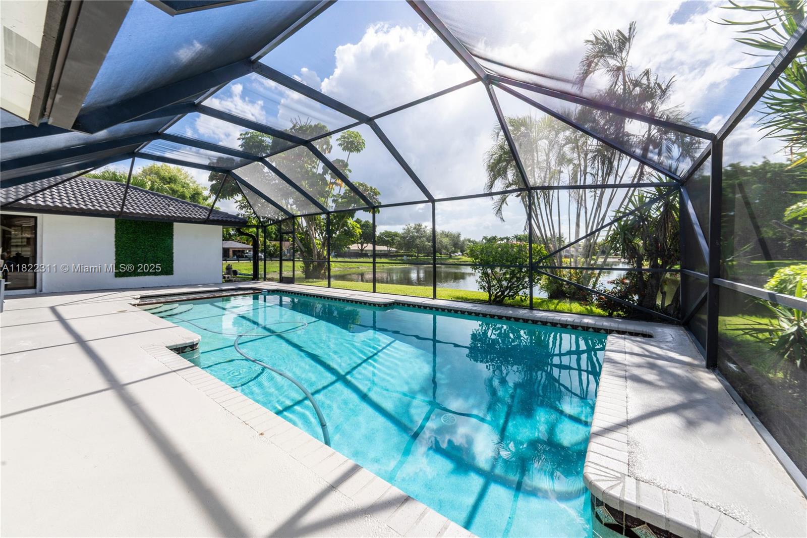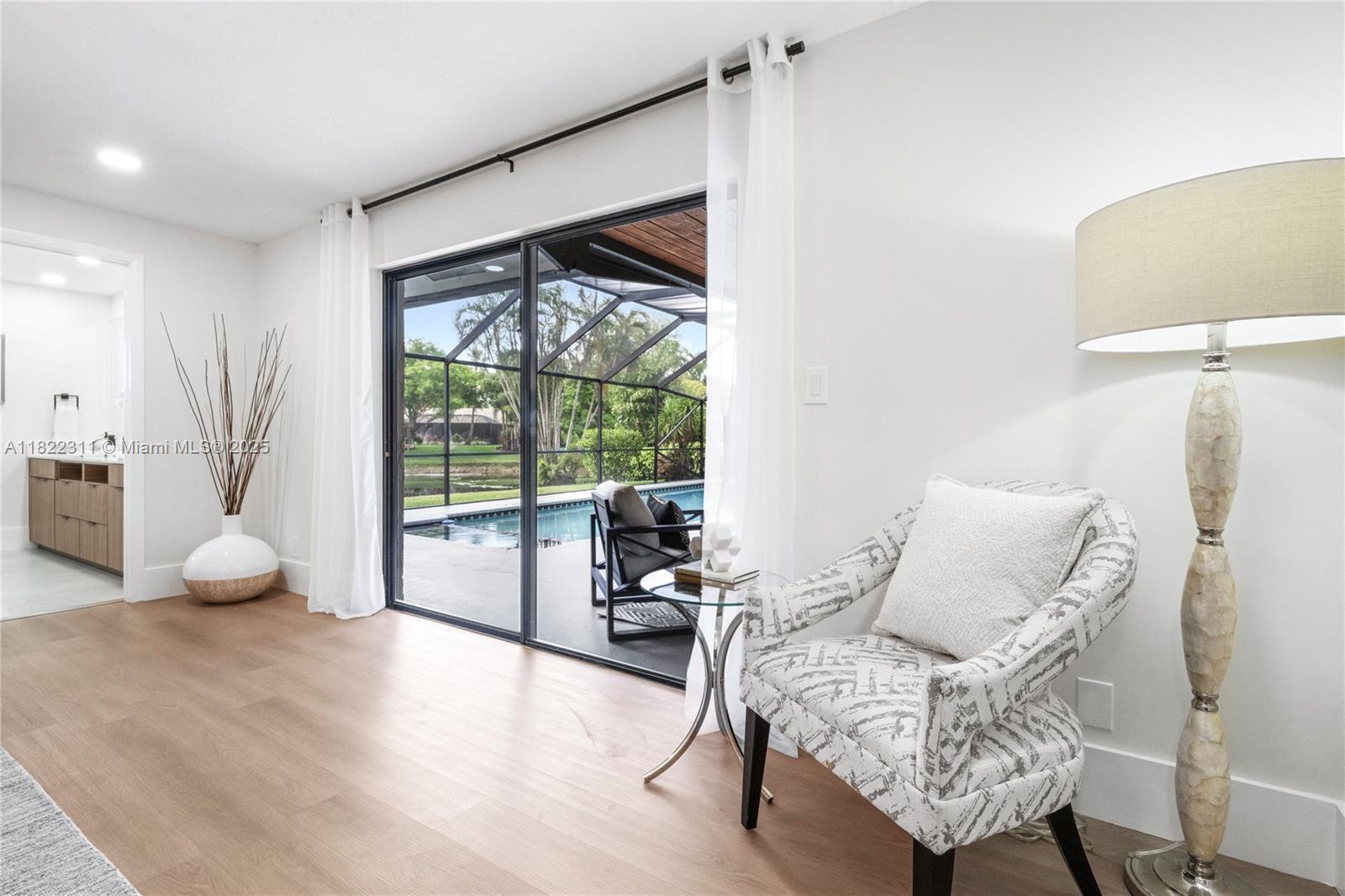 Stunning 4BD/2.5BA waterfront pool home in the heart of Coral Springs! Bright and open with soaring vaulted ceilings, sleek LED lighting, and brand-new floors throughout. The showstopper kitchen features quartz counters, stainless steel appliances, and a huge island perfect for entertaining. Designer-updated baths, custom vanities, and a spa-like primary suite with a cedar-lined closet. Freshly painted inside and out with lush new landscaping. Step outside to your private screened patio and sparkling pool with water views. No HOA! Close to A+ schools, parks, shopping, and dining. This home is a must see!