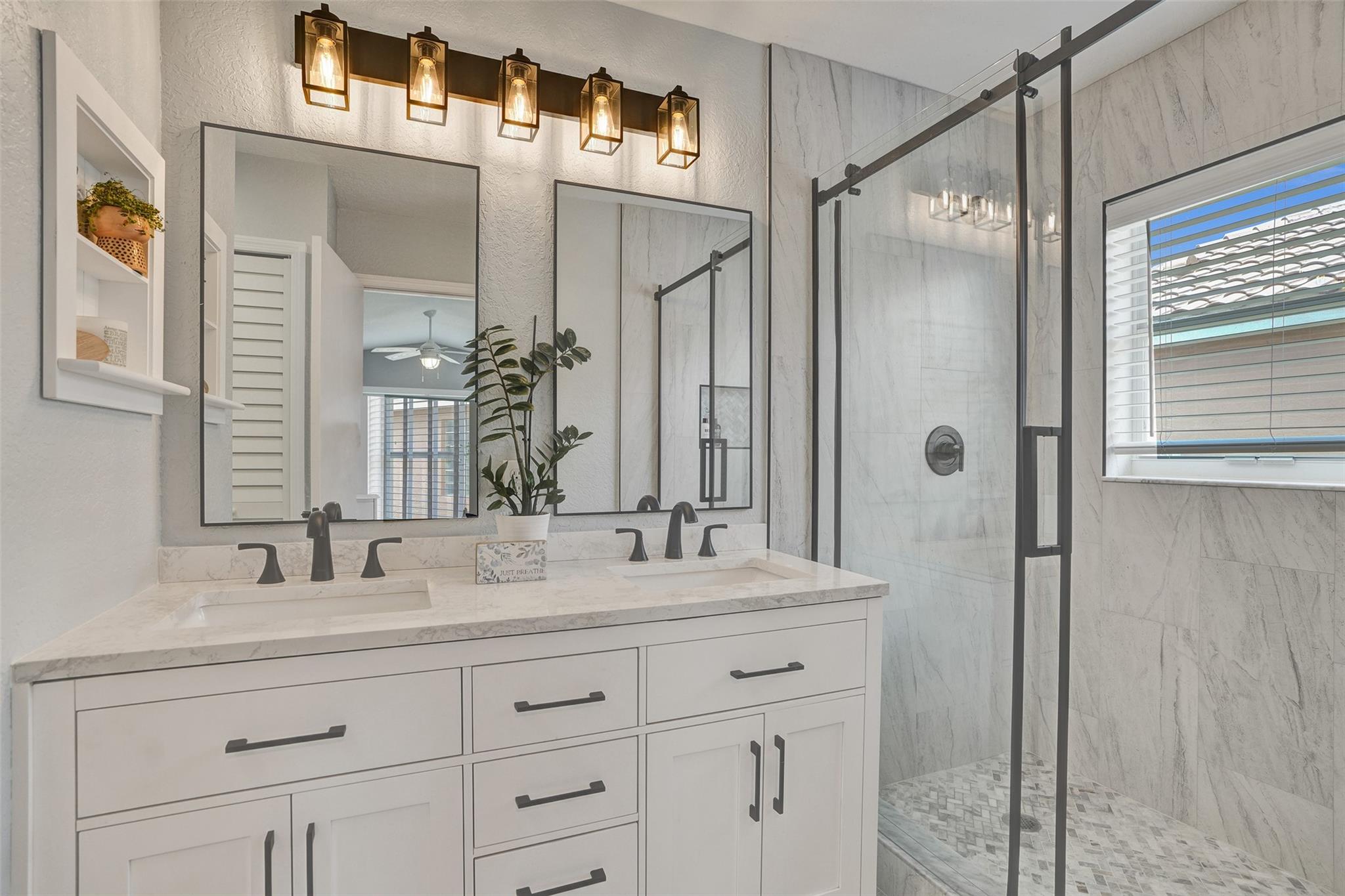 Welcome to your new family home in the beautiful, gated community of Estancia. This fully remodeled 3-bedroom, 2-bath home is move-in ready. It features a brand-new roof, new exterior paint and stylish updates throughout. The open-concept kitchen is every home cook’s dream, offering plenty of counter space, cabinet storage, and new appliances. Both bathrooms have been tastefully updated, and the bright, open living and dining areas feature new flooring and lots of natural light. With a newer A/C and water heater you’ll enjoy year-round comfort and efficiency. Enjoy a spacious fenced in backyard with a relaxing lake view — the perfect place for the kids to play or for hosting outdoor gatherings.