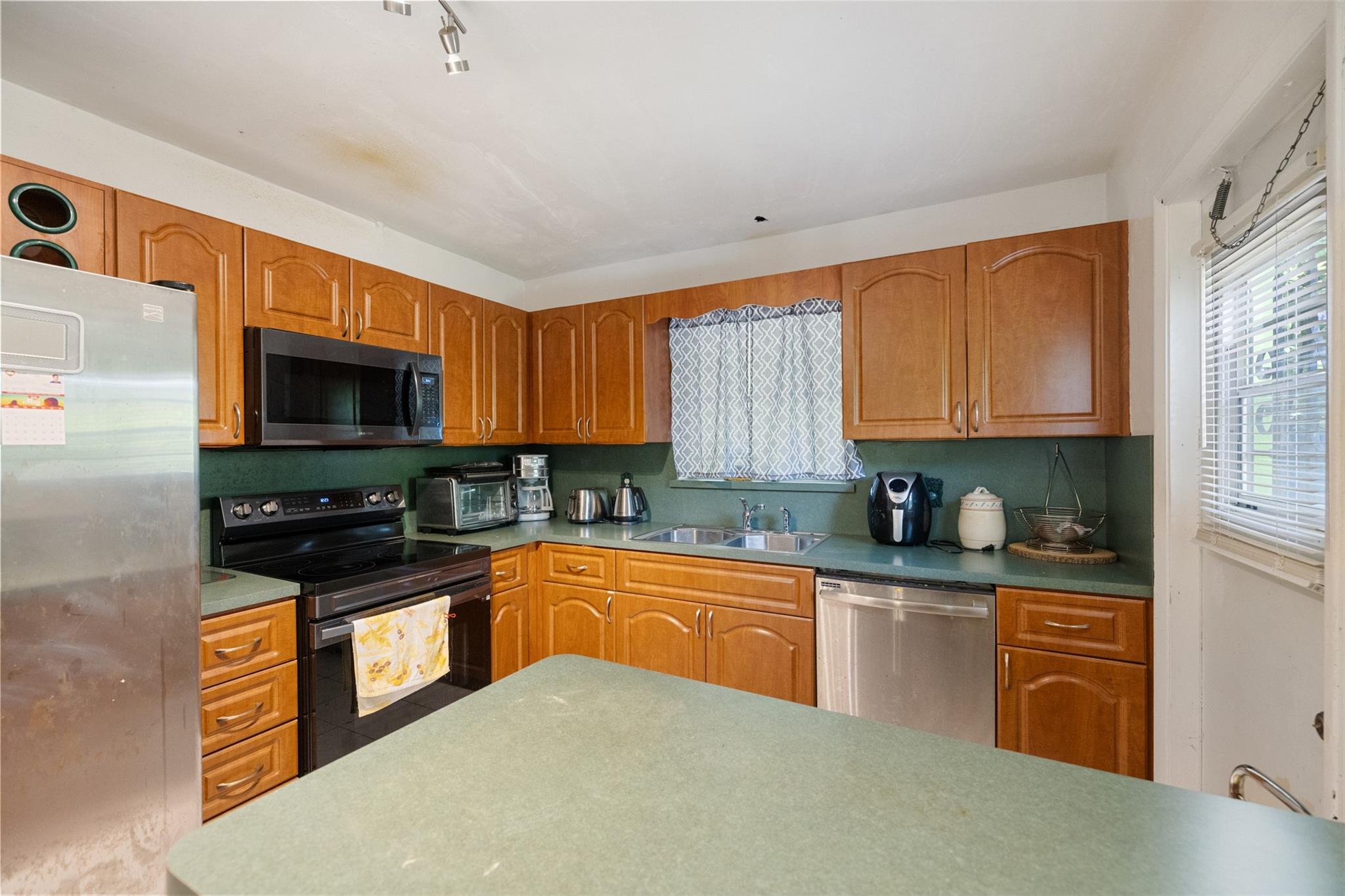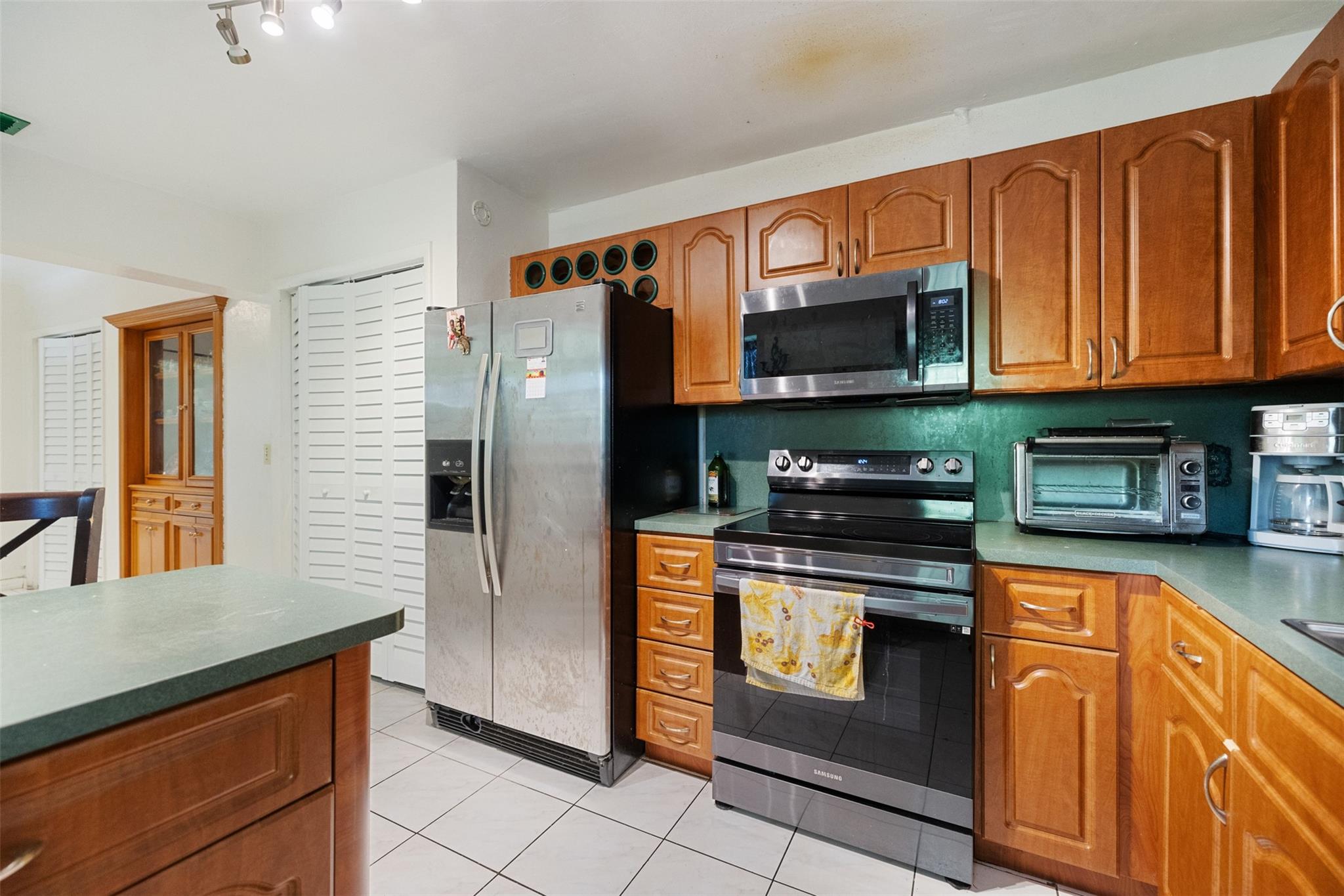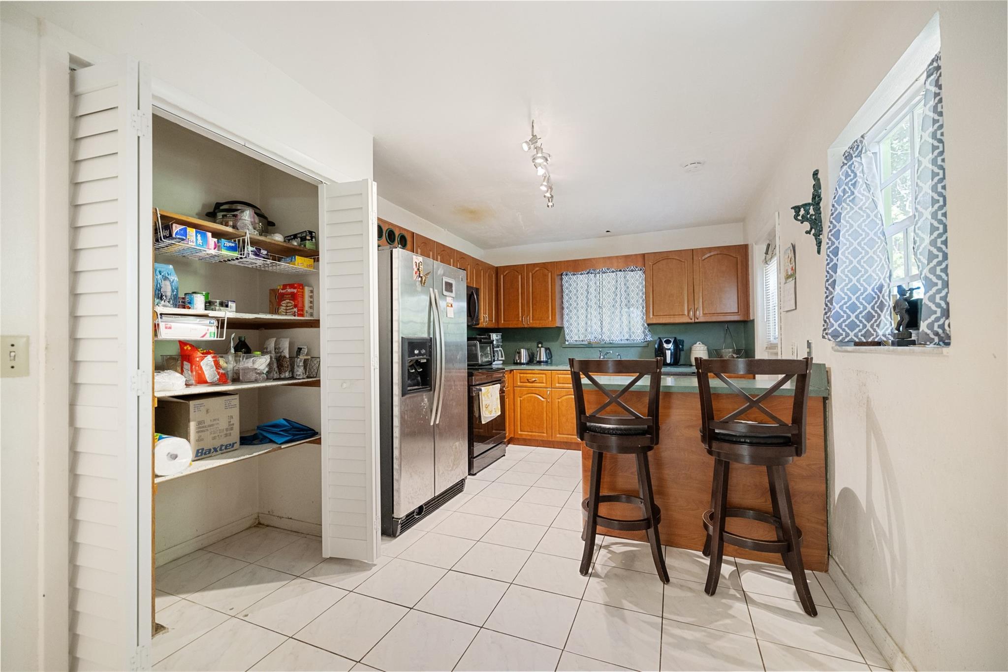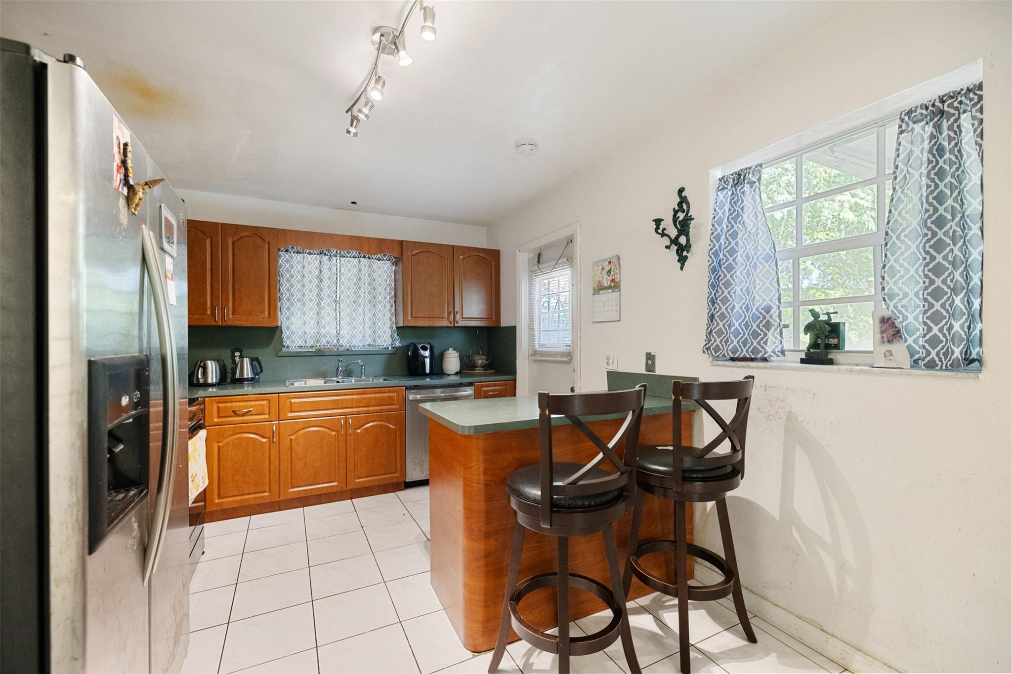 Welcome to this charming 2-bedroom, 2-bathroom home with no HOA! Located on a spacious 10,000+ sq ft corner lot with room for a pool. Property is fully gated, perfect for pets. Includes a 1-car carport and circular driveway for guest parking. A shed in back offers extra storage. The yard features mango, starfruit, jackfruit, guinep, sweet sap, avocado, plum, moringa, Ethiopian apple, lemongrass, and oregano plants. Close to major highways, shopping, dining, Hard Rock Casino & Stadium, FLL Airport, and beaches. Kitchen has wooden cabinets. Tile flooring throughout. Ceiling fans add comfort. The home comes partially furnished. Guest bedroom has a walk-in closet; primary bedroom includes an en-suite bath. Full-size washer and dryer are in a covered, attached area. A/C is 2015. Roof is 2005.