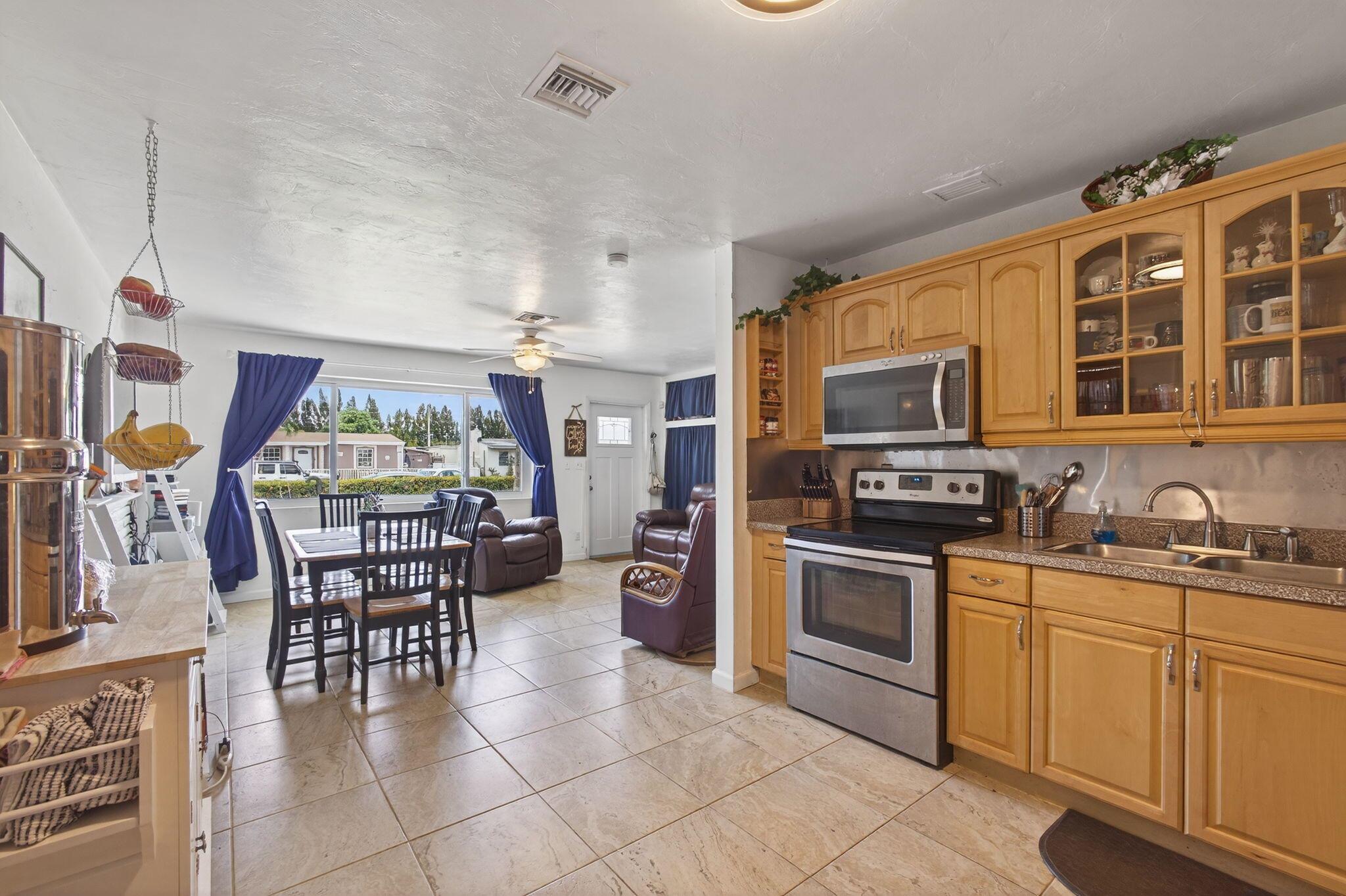 As you walk into this beautiful 4/2 open concept home you notice the abundance of natural light as the living room flows seamlessly into the kitchen. This home has a split floor plan the main bedroom features a walk-in closet and a full bathroom with a glass-enclosed shower and jetted tub this living space has a separate A/C unit. The 2nd and 3rd bedroom features the artistic stylings of a local artist recently acknowledged by PBC parks and rec. The 4th bedroom is currently used as an office space but is great for any family size. The property backs up to a canal creating privacy in the backyard. Outside there is a firepit for gatherings and raised garden beds for the avid gardener as well as a double driveway to ensure plenty of parking for you and your guests.