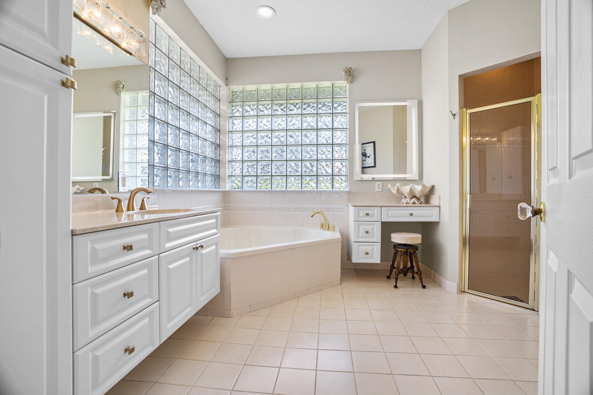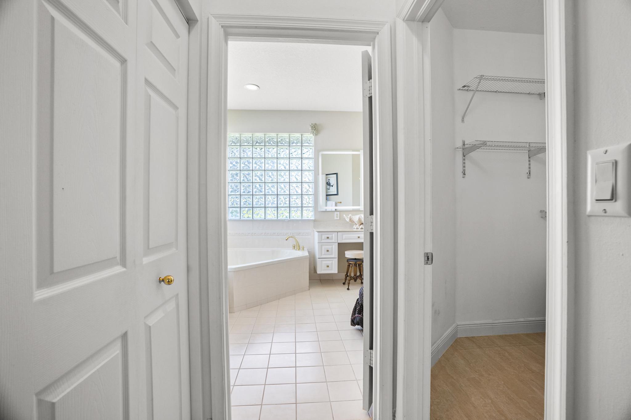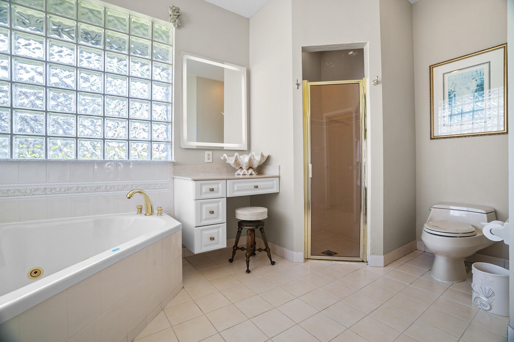 Nestled in a quiet enclave in desirable East Boca Raton, this Mizner Forest home was built in 1998 and offers a thoughtfully designed layout with stylish upgrades throughout. Featuring soaring high ceilings and a renovated white kitchen, the home has modern flooring throughout the main living areas and one guest bedroom & family room. The split bedroom floor plan offers privacy, and the spacious primary suite includes direct access to the covered patio and pool area. Primary bath features a separate soaking tub and shower. Additional highlights include a 3-year-old A/C system, a tankless water heater, and an extra water heater dedicated to the primary suite. Impact doors. Fully fenced backyard is an entertainer's dream, showcasing a stunning pool &expansive patio