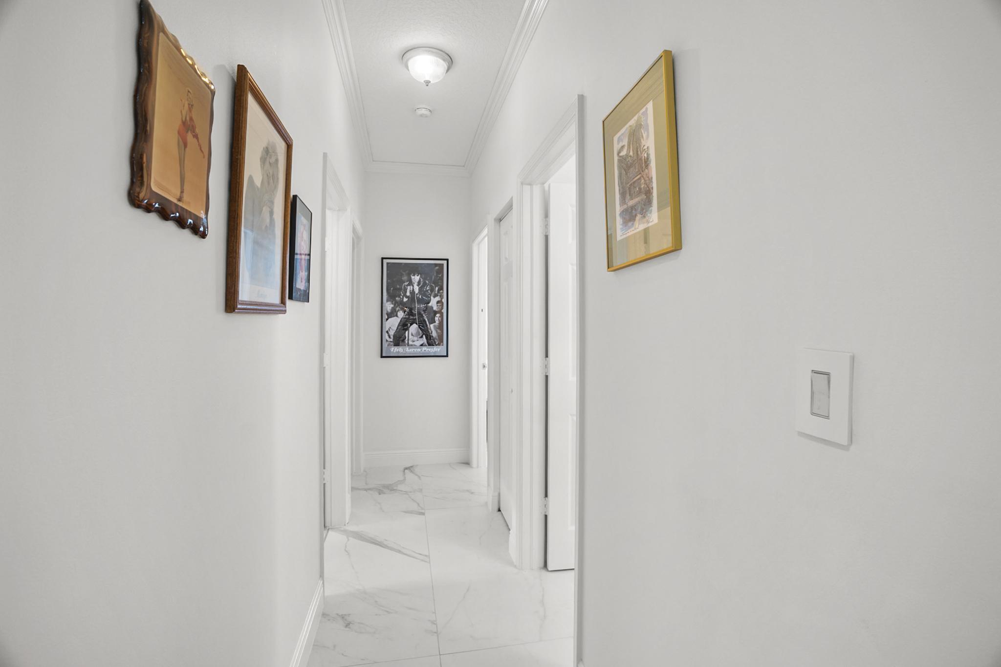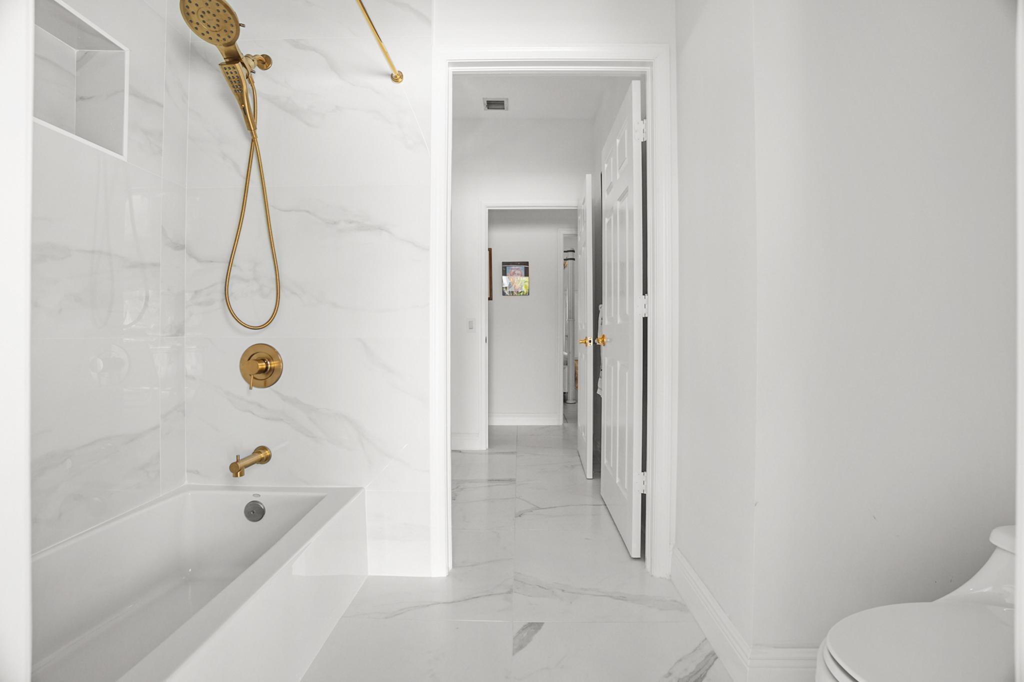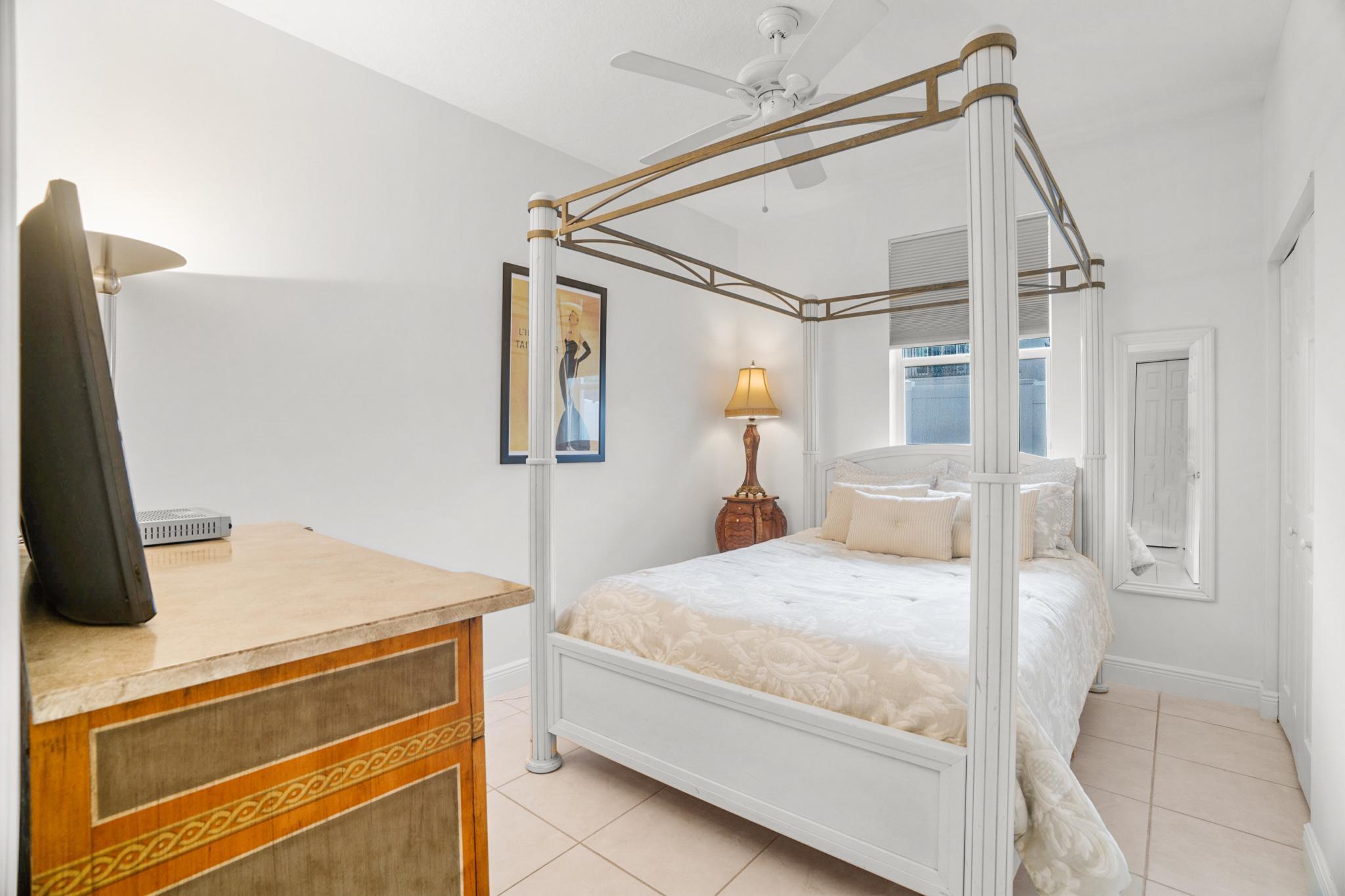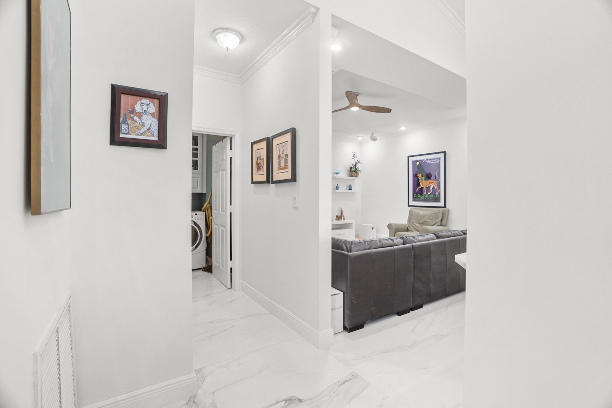 Nestled in a quiet enclave in desirable East Boca Raton, this Mizner Forest home was built in 1998 and offers a thoughtfully designed layout with stylish upgrades throughout. Featuring soaring high ceilings and a renovated white kitchen, the home has modern flooring throughout the main living areas and one guest bedroom & family room. The split bedroom floor plan offers privacy, and the spacious primary suite includes direct access to the covered patio and pool area. Primary bath features a separate soaking tub and shower. Additional highlights include a 3-year-old A/C system, a tankless water heater, and an extra water heater dedicated to the primary suite. Impact doors. Fully fenced backyard is an entertainer's dream, showcasing a stunning pool &expansive patio