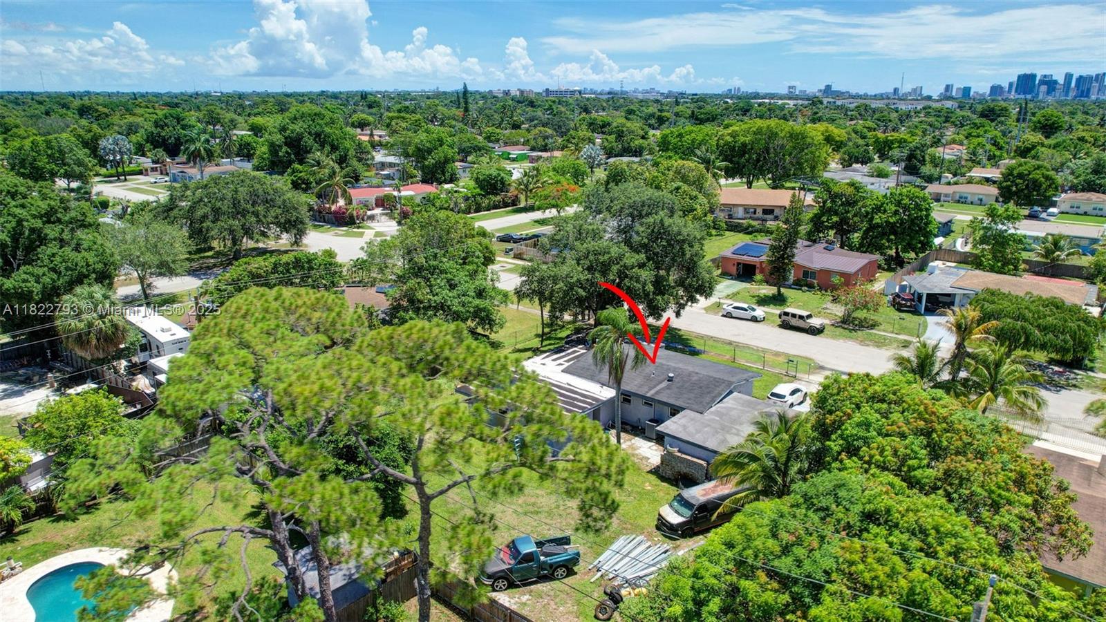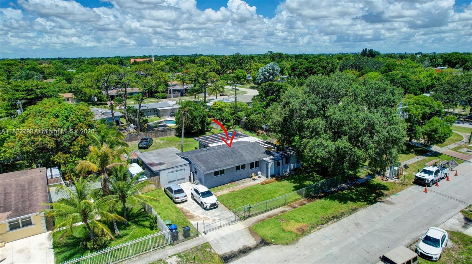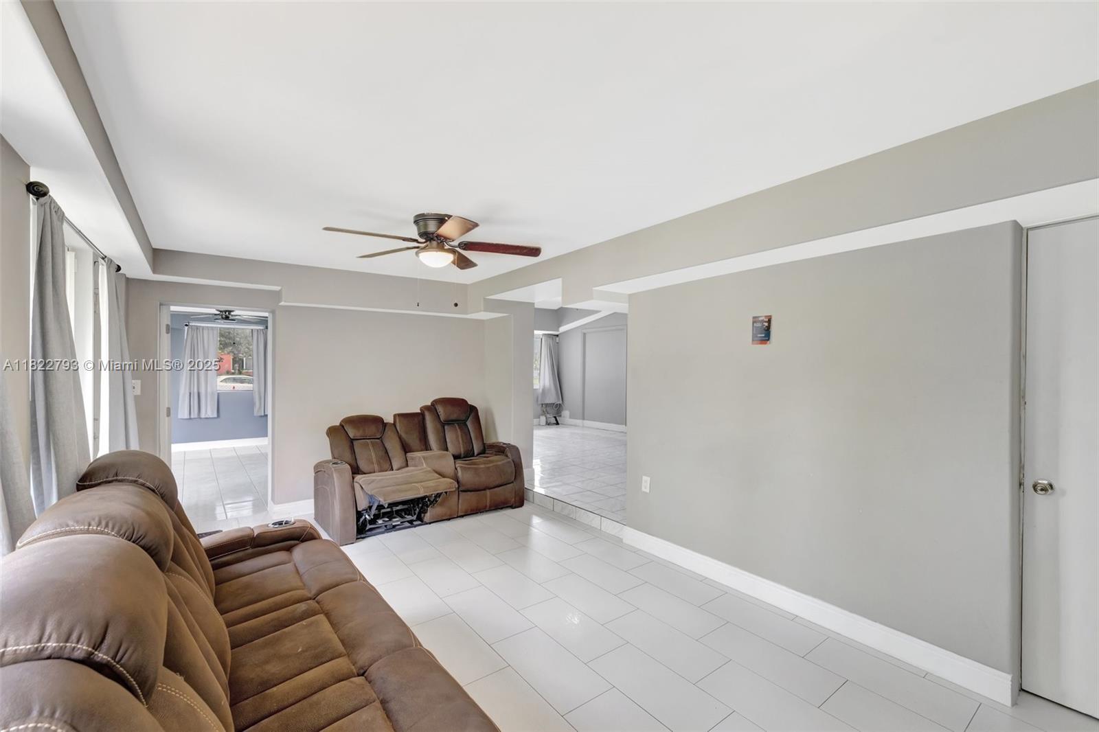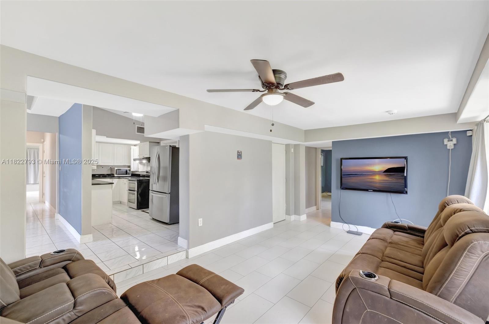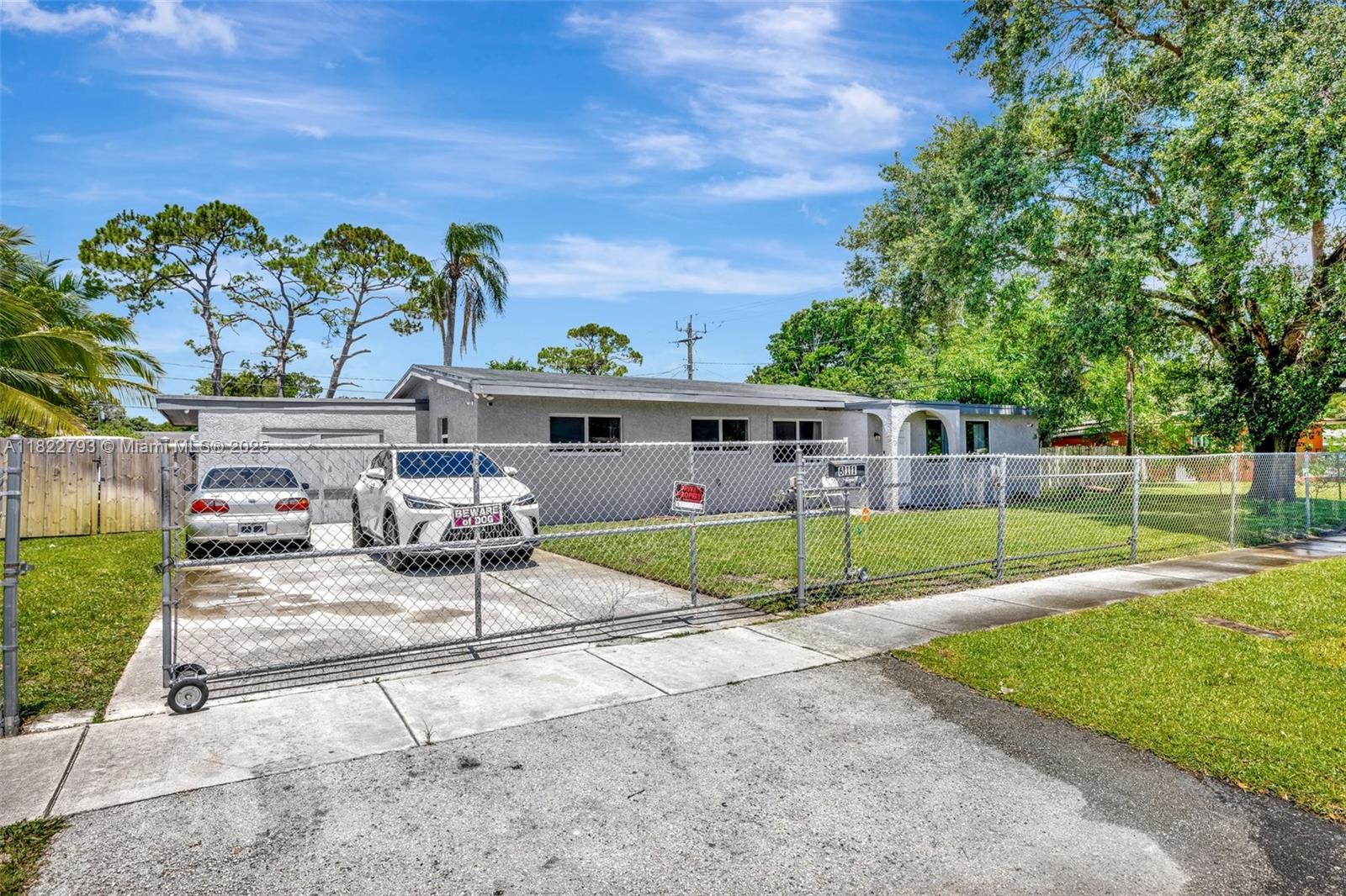 Spacious open floor plan with desirable triple-split bedroom layout, perfect for privacy and flexibility! This maintained home features impact windows and doors throughout for a peace of mind, plus a sprinkler system, and saltwater filtration for added efficiency. The fenced yard is perfect for kids or pets, and a large lot offers plenty of room to add a pool. The enclosed carport provides versatile space - use as additional storage, a home office, or explore rental income potential. New electrical lines are being installed underground in the neighborhood and were just installed at the property. Ideally located to schools, major highways, shopping, and more. Don't miss this versatile and secure home with room to grow and earn! **Refrigerator does not convey**