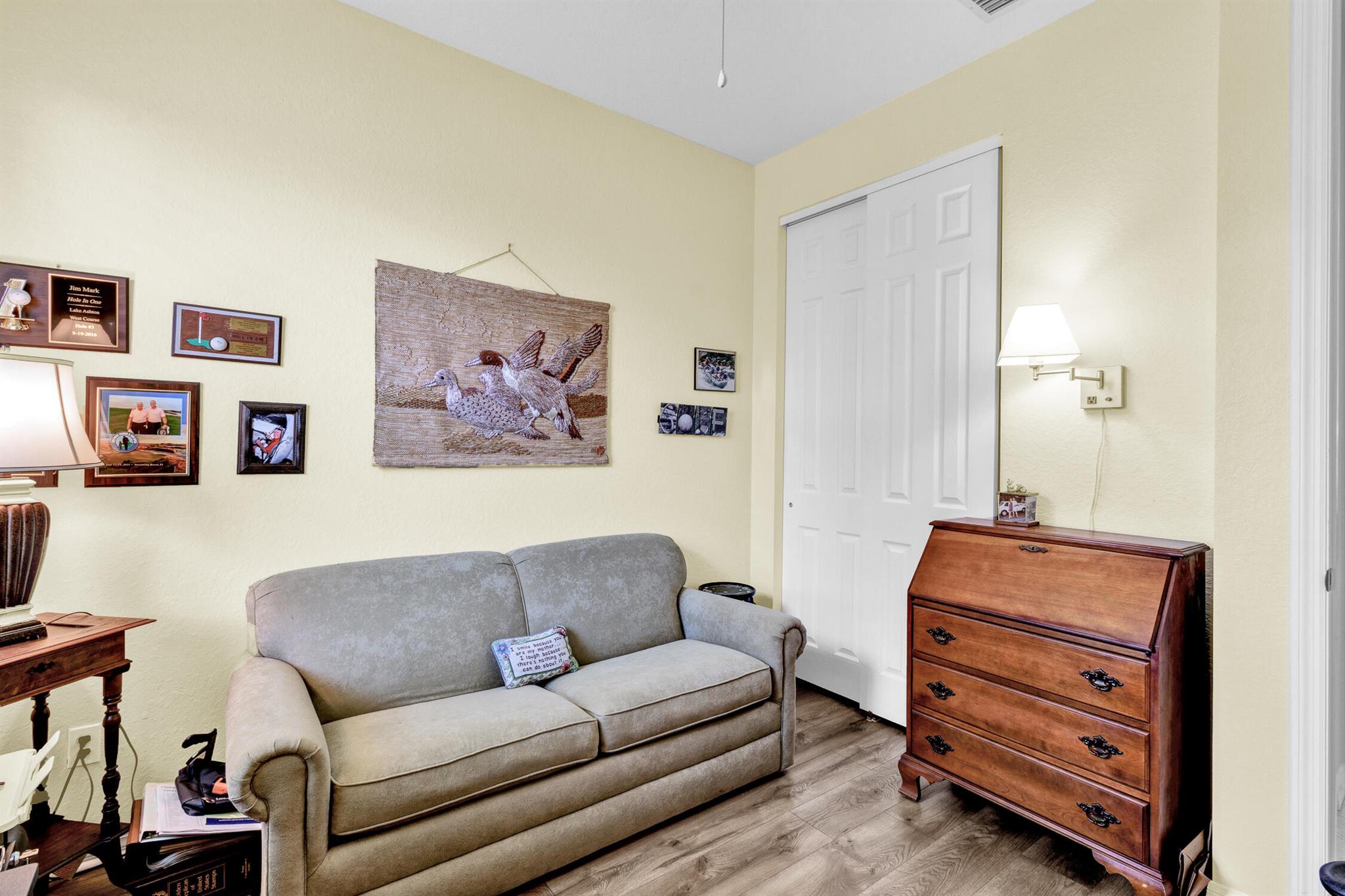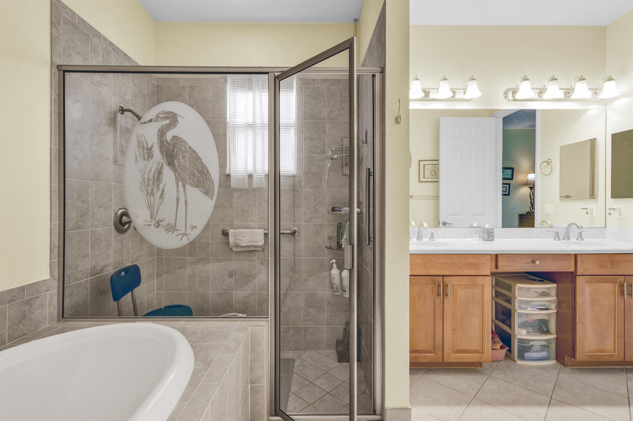 Located on a lake with a view of a beautiful tropical backyard from the lanai. Impact windows, large eat-in kitchen, and an open living area. Primary bedroom/bath is spacious with dual sinks, separate walk-in shower, soaking tub. The Woodfield Clubhouse has a resort-style heated pool & spa, bocce ball, Har-tru tennis courts, a billiard room, full fitness center and onsite management. Most of all, there are many social activities all month long. Close to great shopping, dining and, of course, Vero's beautiful beaches.