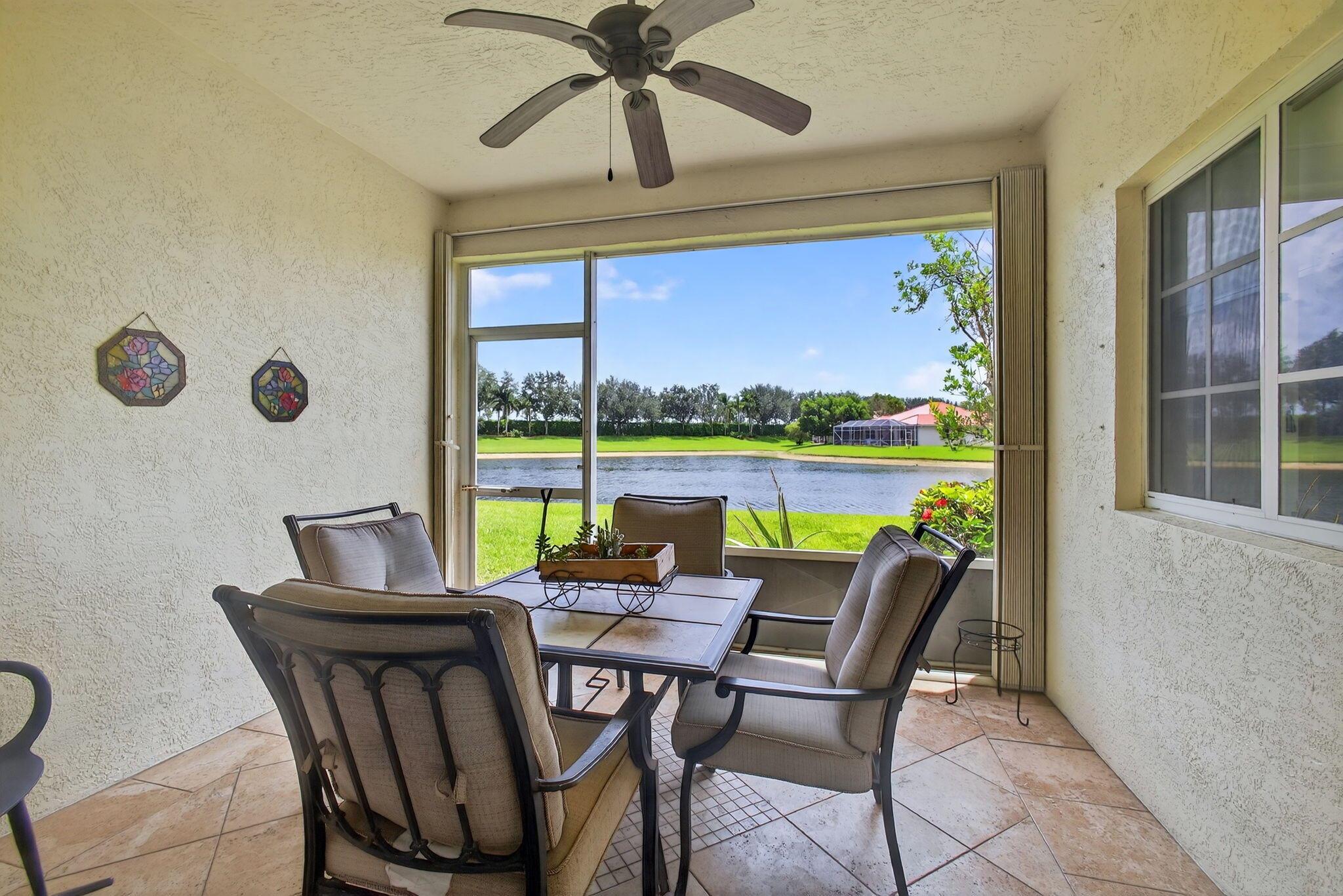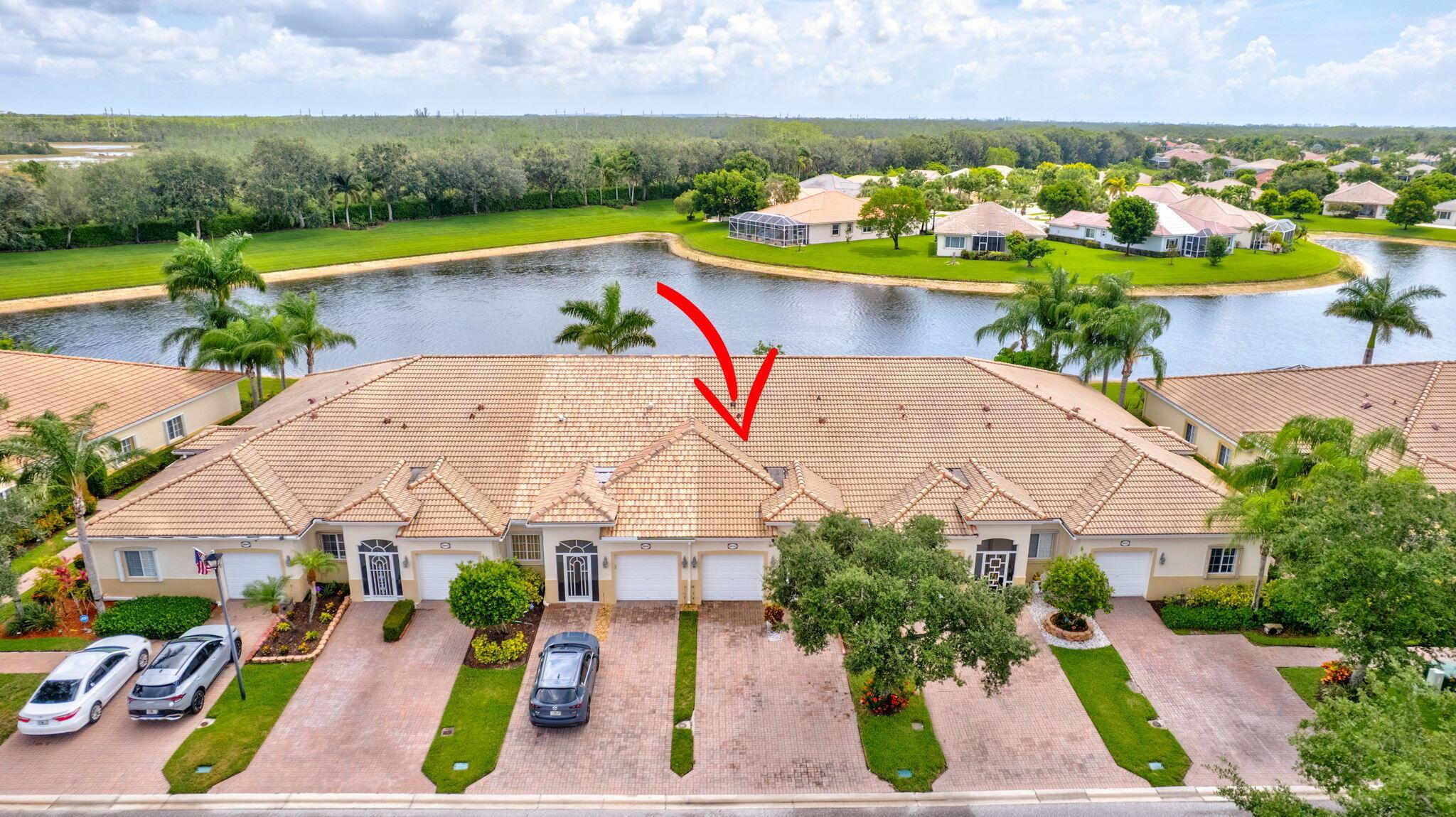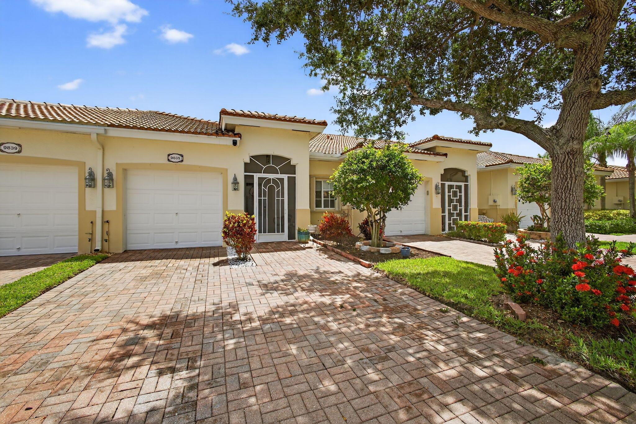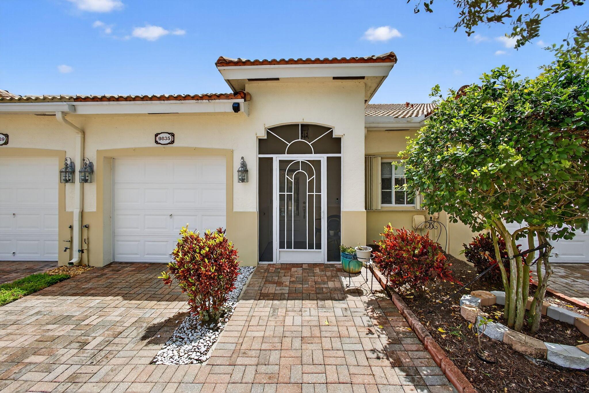 PRICED TO SELL! This pristine, one-story townhouse offers 2 bedrooms and 2 bathrooms in a beautifully maintained and thoughtfully upgraded home. From the moment you walk in, you're welcomed by a sense of warmth and comfort. Featuring elegant porcelain tile flooring, a spacious kitchen, and an open layout perfect for both daily living and entertaining, this home blends style with ease.Step outside to your private patio oasis with peaceful water views--ideal for relaxing or hosting guests. Additional highlights include a one-car garage and driveway parking.Protected with Accordion Shutters. Enjoy resort-style amenities including an adult lap pool, family pool, spa, resistance walking pool, six tennis courts, bocce, shuffleboard, and a clubhouse with gym, ballroom, card room, billiards
