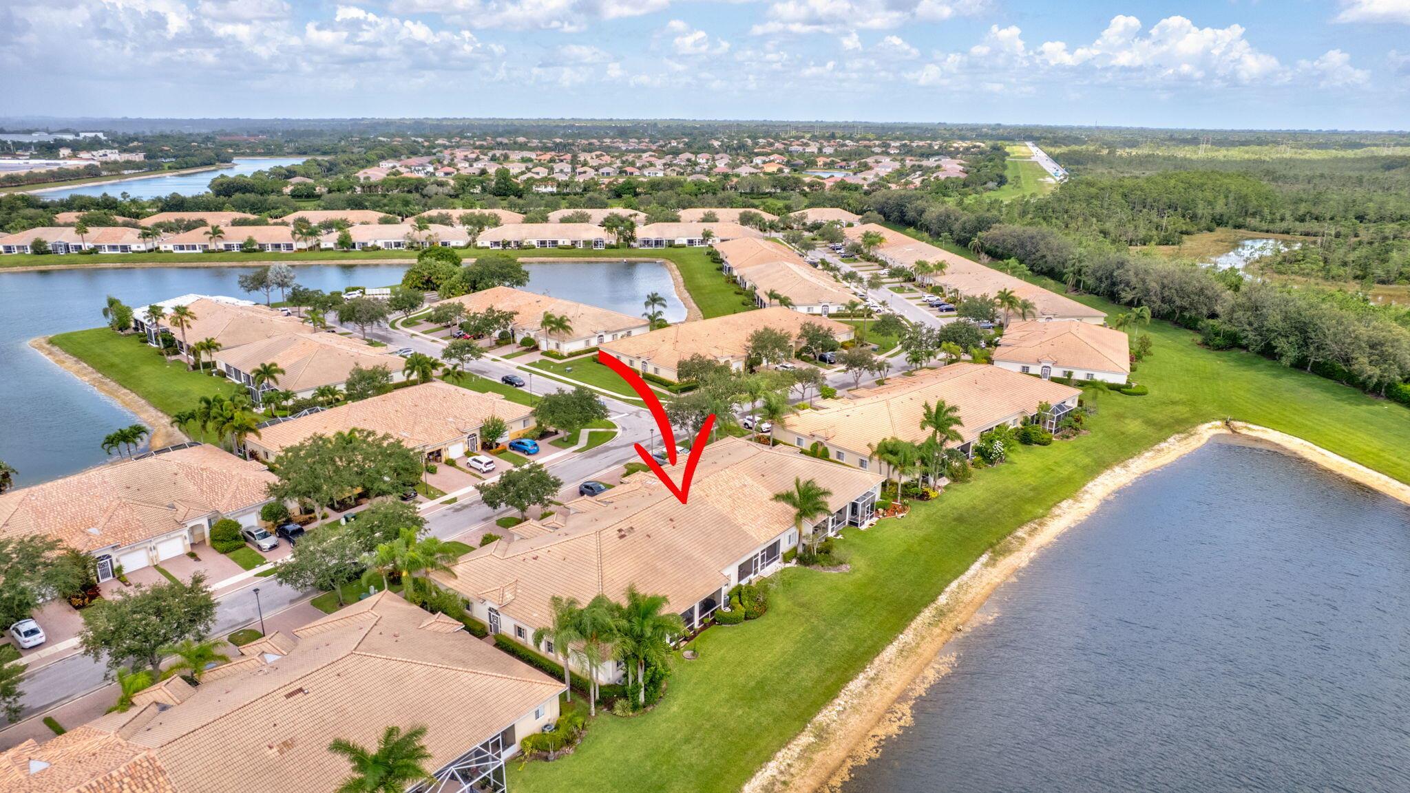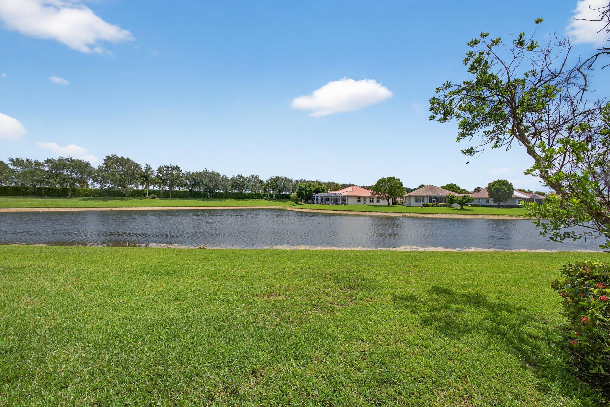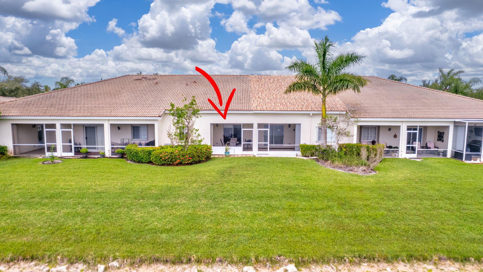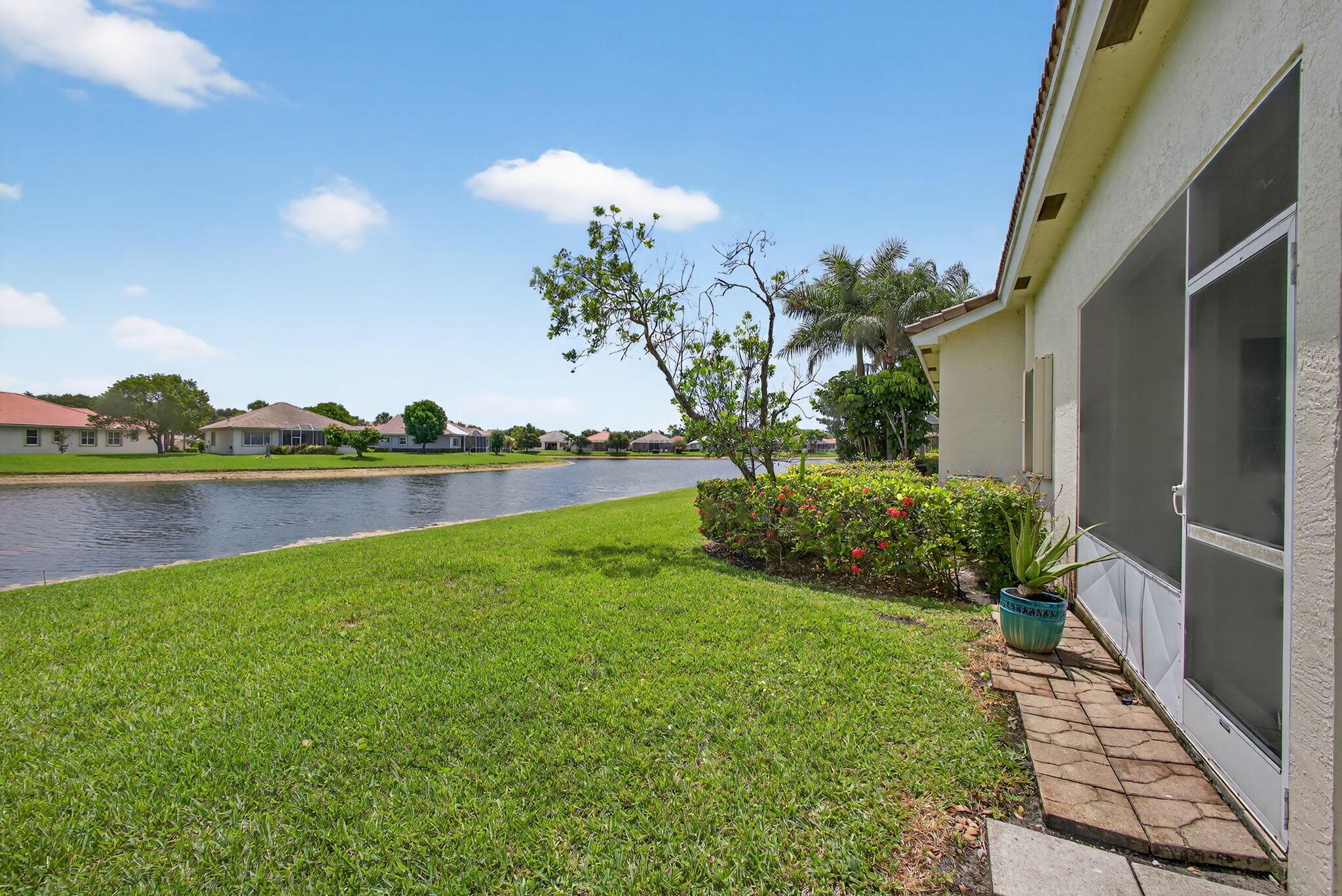 PRICED TO SELL! This pristine, one-story townhouse offers 2 bedrooms and 2 bathrooms in a beautifully maintained and thoughtfully upgraded home. From the moment you walk in, you're welcomed by a sense of warmth and comfort. Featuring elegant porcelain tile flooring, a spacious kitchen, and an open layout perfect for both daily living and entertaining, this home blends style with ease.Step outside to your private patio oasis with peaceful water views--ideal for relaxing or hosting guests. Additional highlights include a one-car garage and driveway parking.Protected with Accordion Shutters. Enjoy resort-style amenities including an adult lap pool, family pool, spa, resistance walking pool, six tennis courts, bocce, shuffleboard, and a clubhouse with gym, ballroom, card room, billiards