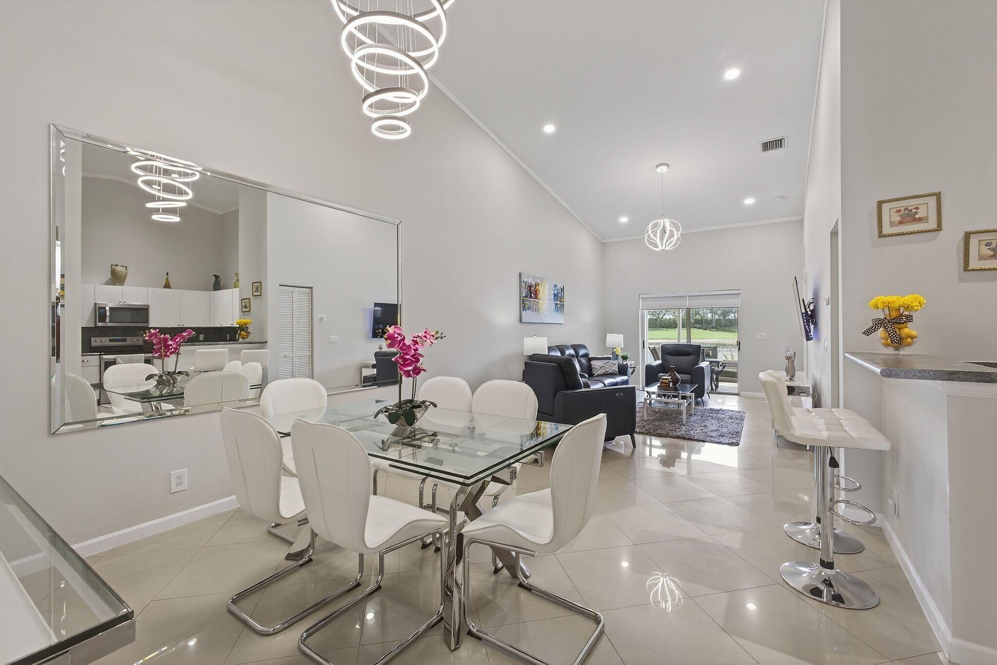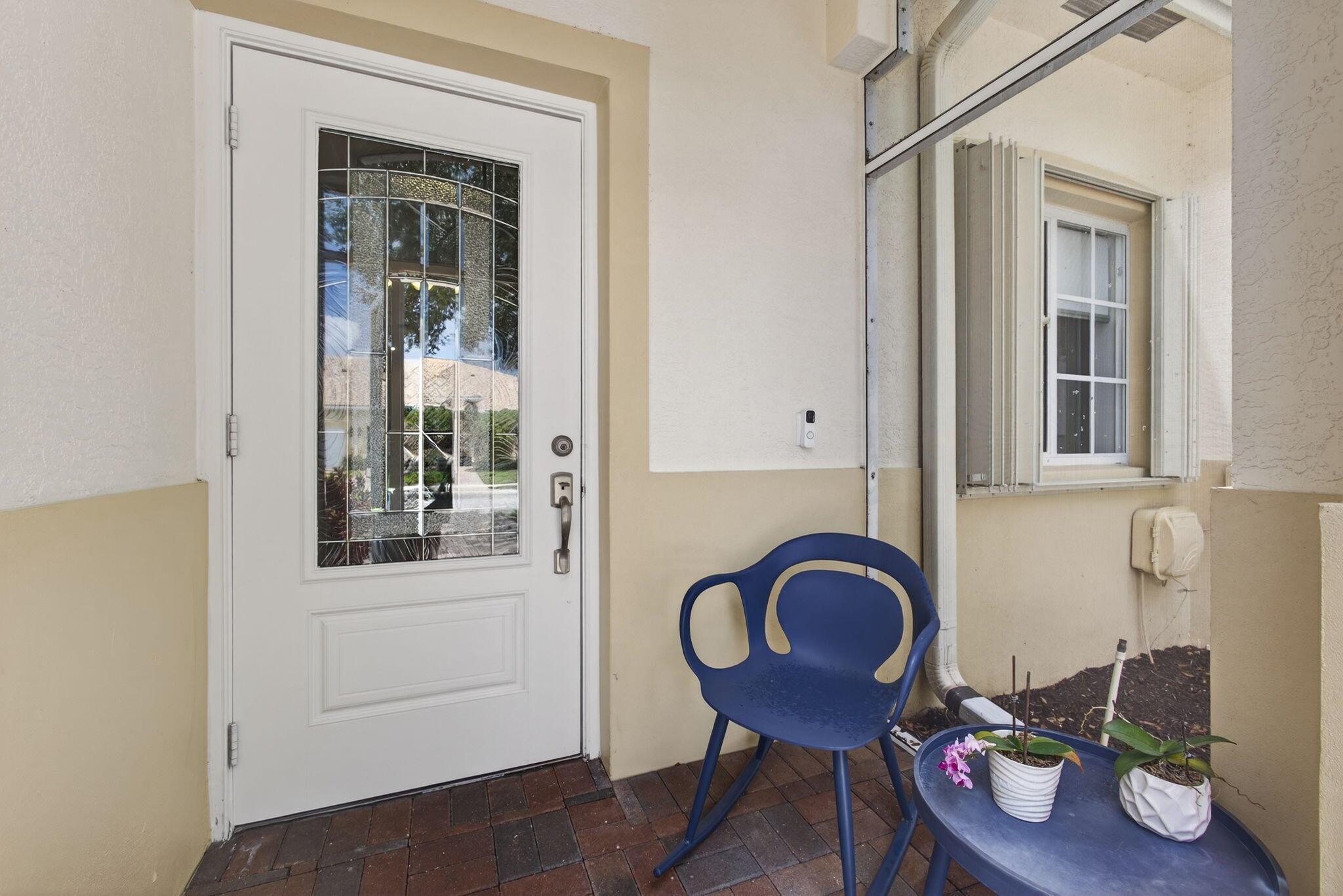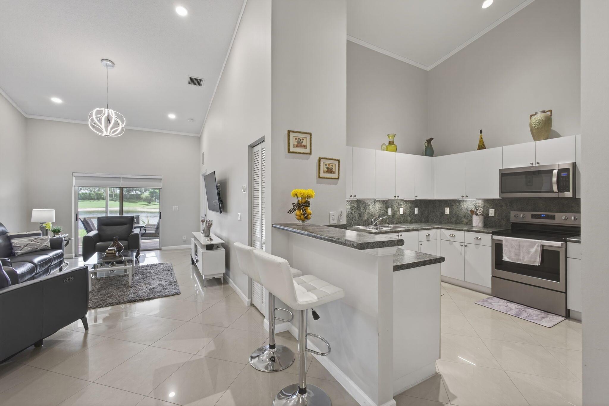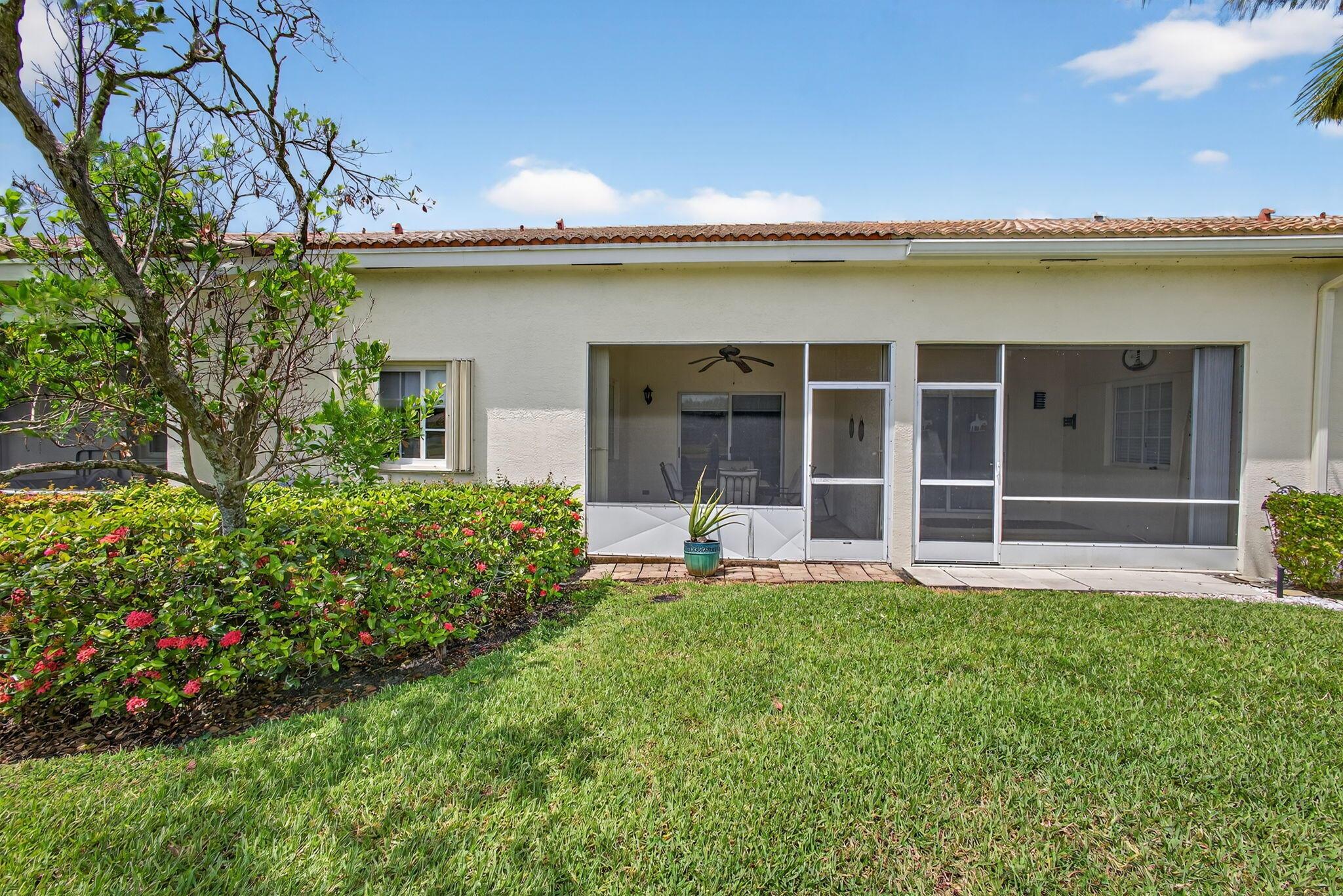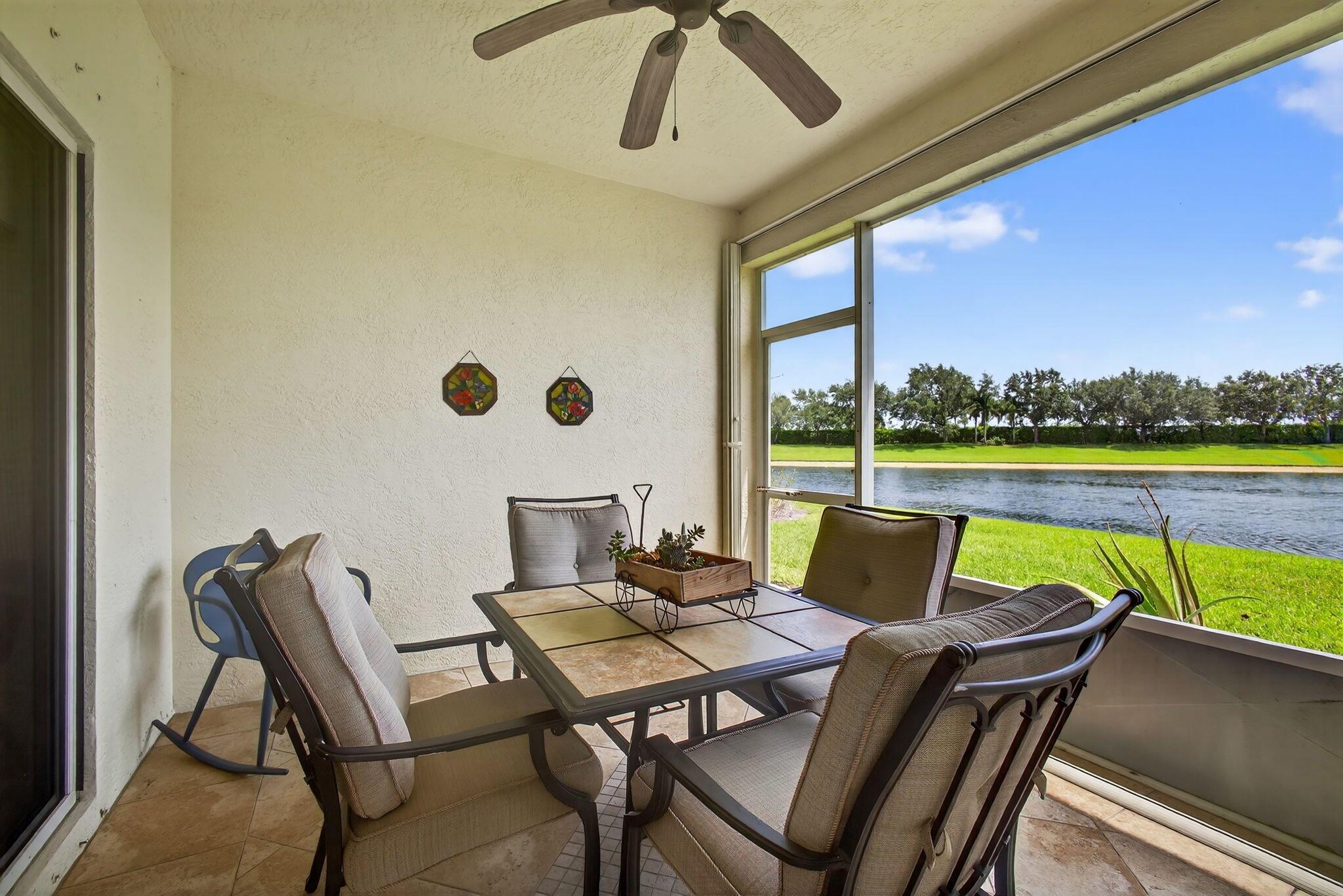 PRICED TO SELL! This pristine, one-story townhouse offers 2 bedrooms and 2 bathrooms in a beautifully maintained and thoughtfully upgraded home. From the moment you walk in, you're welcomed by a sense of warmth and comfort. Featuring elegant porcelain tile flooring, a spacious kitchen, and an open layout perfect for both daily living and entertaining, this home blends style with ease.Step outside to your private patio oasis with peaceful water views--ideal for relaxing or hosting guests. Additional highlights include a one-car garage and driveway parking.Protected with Accordion Shutters. Enjoy resort-style amenities including an adult lap pool, family pool, spa, resistance walking pool, six tennis courts, bocce, shuffleboard, and a clubhouse with gym, ballroom, card room, billiards