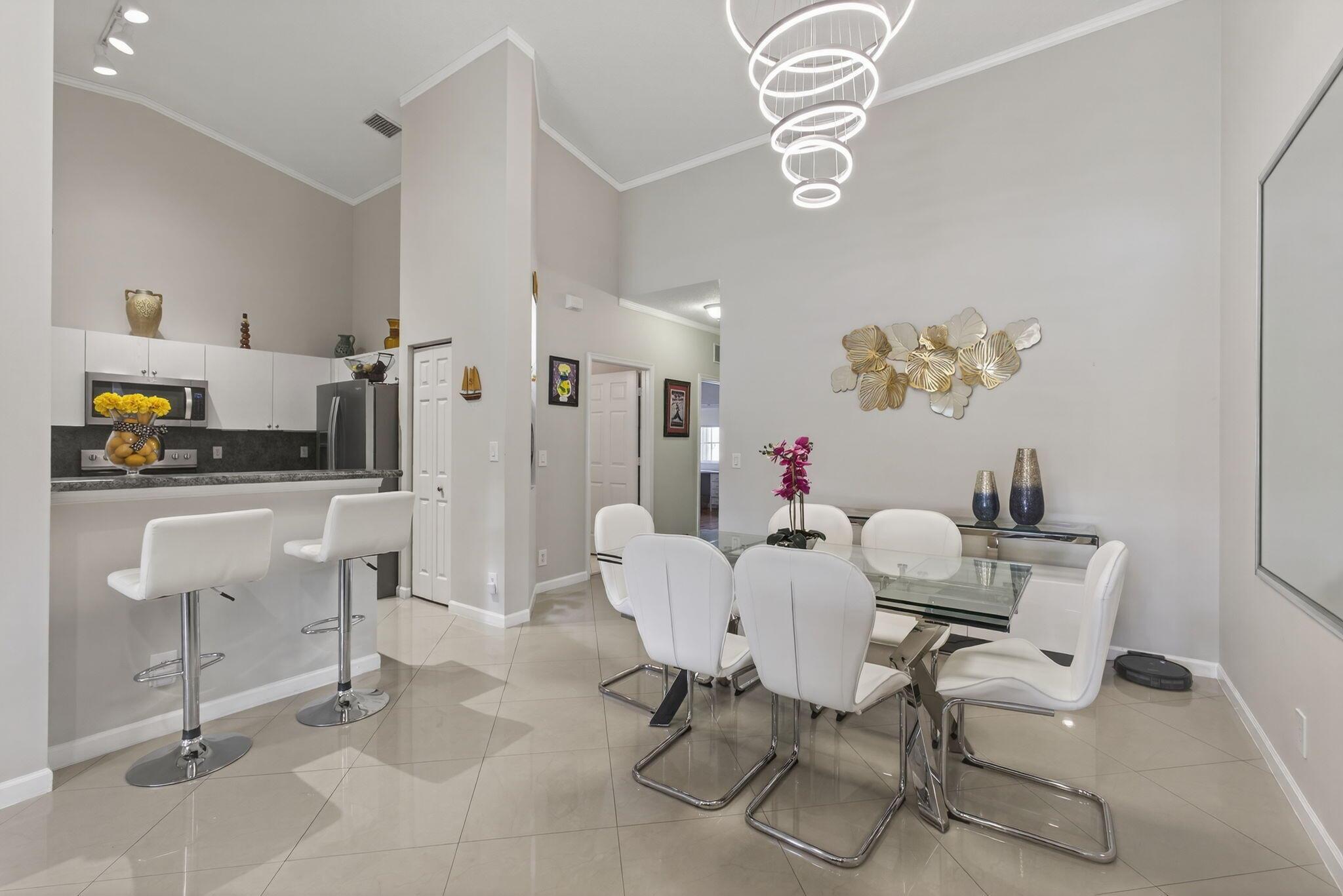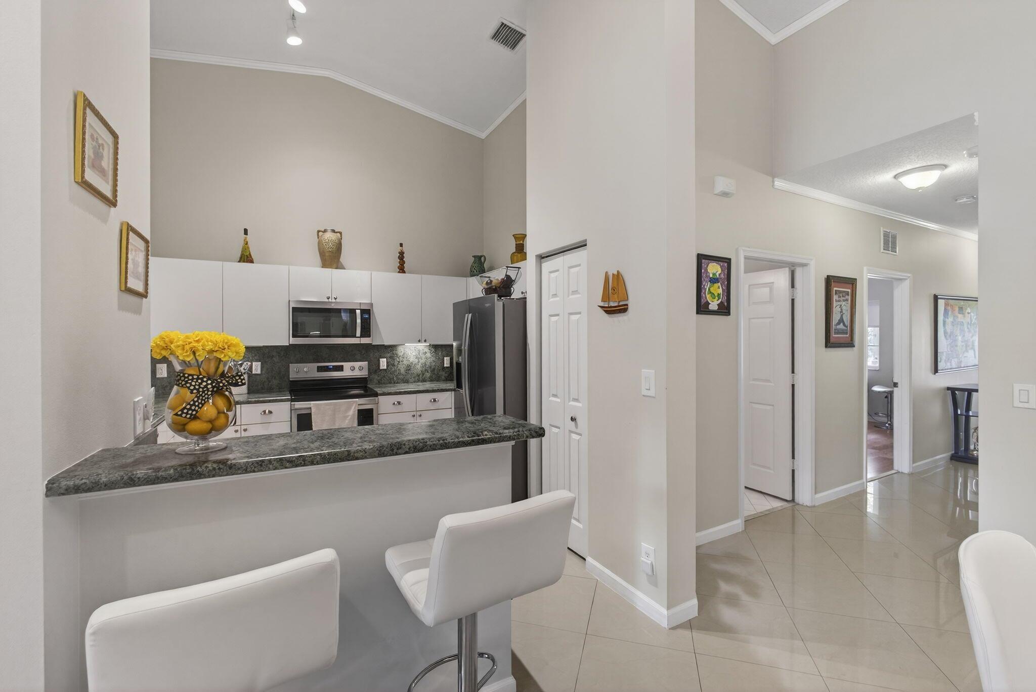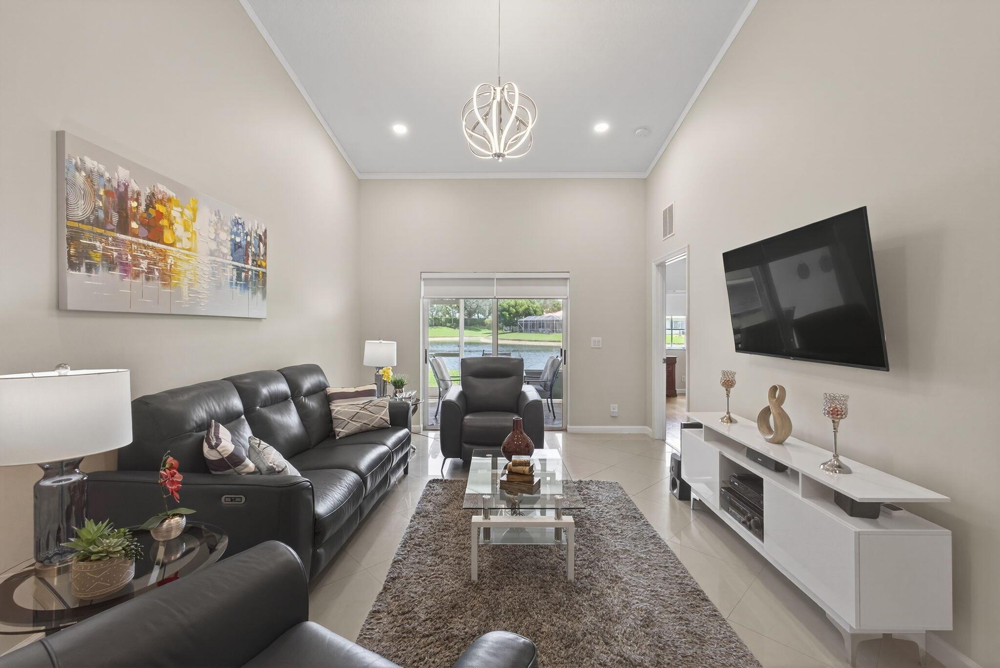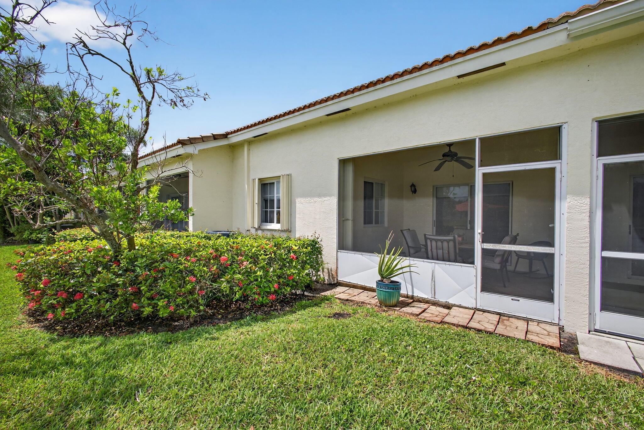 PRICED TO SELL! This pristine, one-story townhouse offers 2 bedrooms and 2 bathrooms in a beautifully maintained and thoughtfully upgraded home. From the moment you walk in, you're welcomed by a sense of warmth and comfort. Featuring elegant porcelain tile flooring, a spacious kitchen, and an open layout perfect for both daily living and entertaining, this home blends style with ease.Step outside to your private patio oasis with peaceful water views--ideal for relaxing or hosting guests. Additional highlights include a one-car garage and driveway parking.Protected with Accordion Shutters. Enjoy resort-style amenities including an adult lap pool, family pool, spa, resistance walking pool, six tennis courts, bocce, shuffleboard, and a clubhouse with gym, ballroom, card room, billiards
