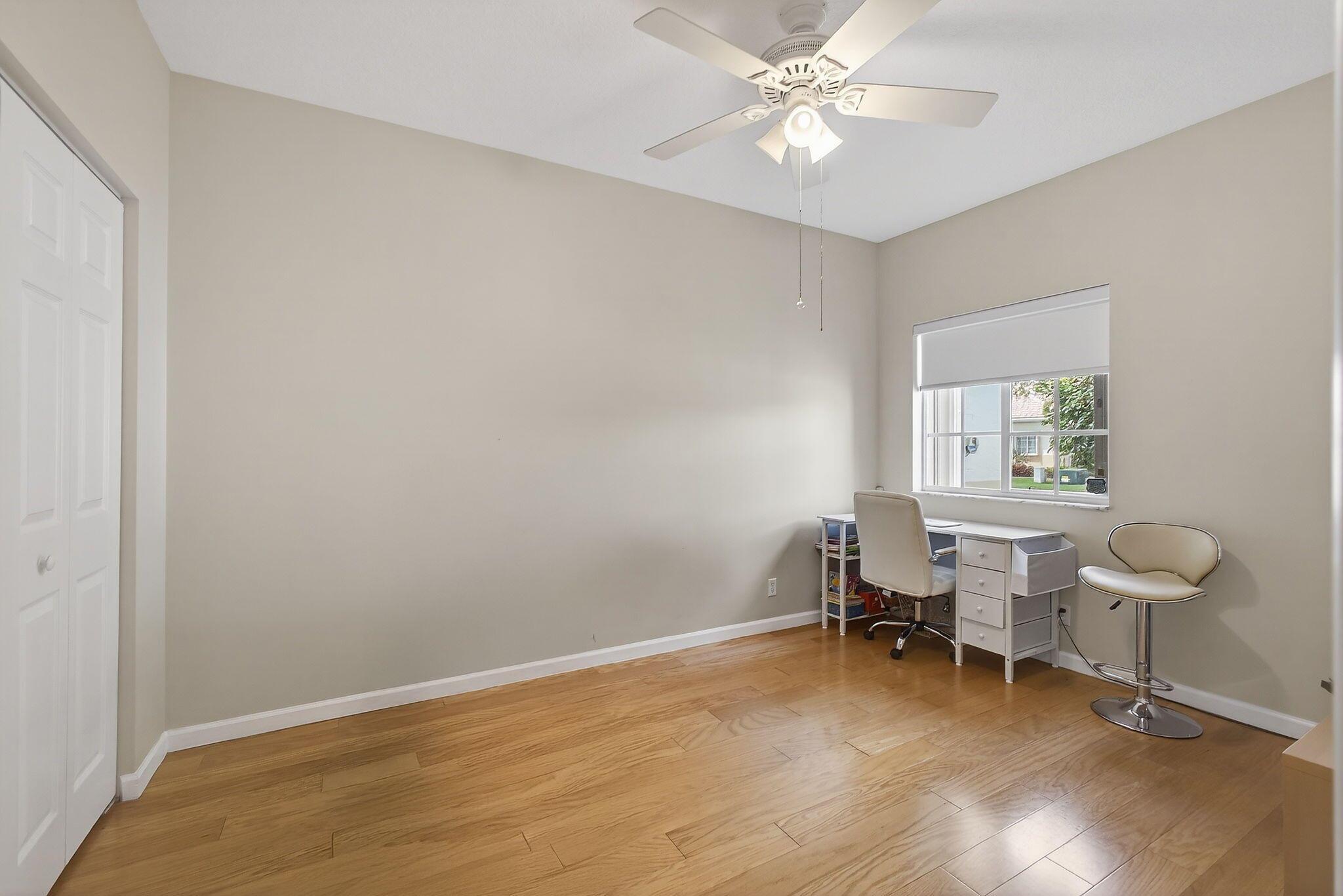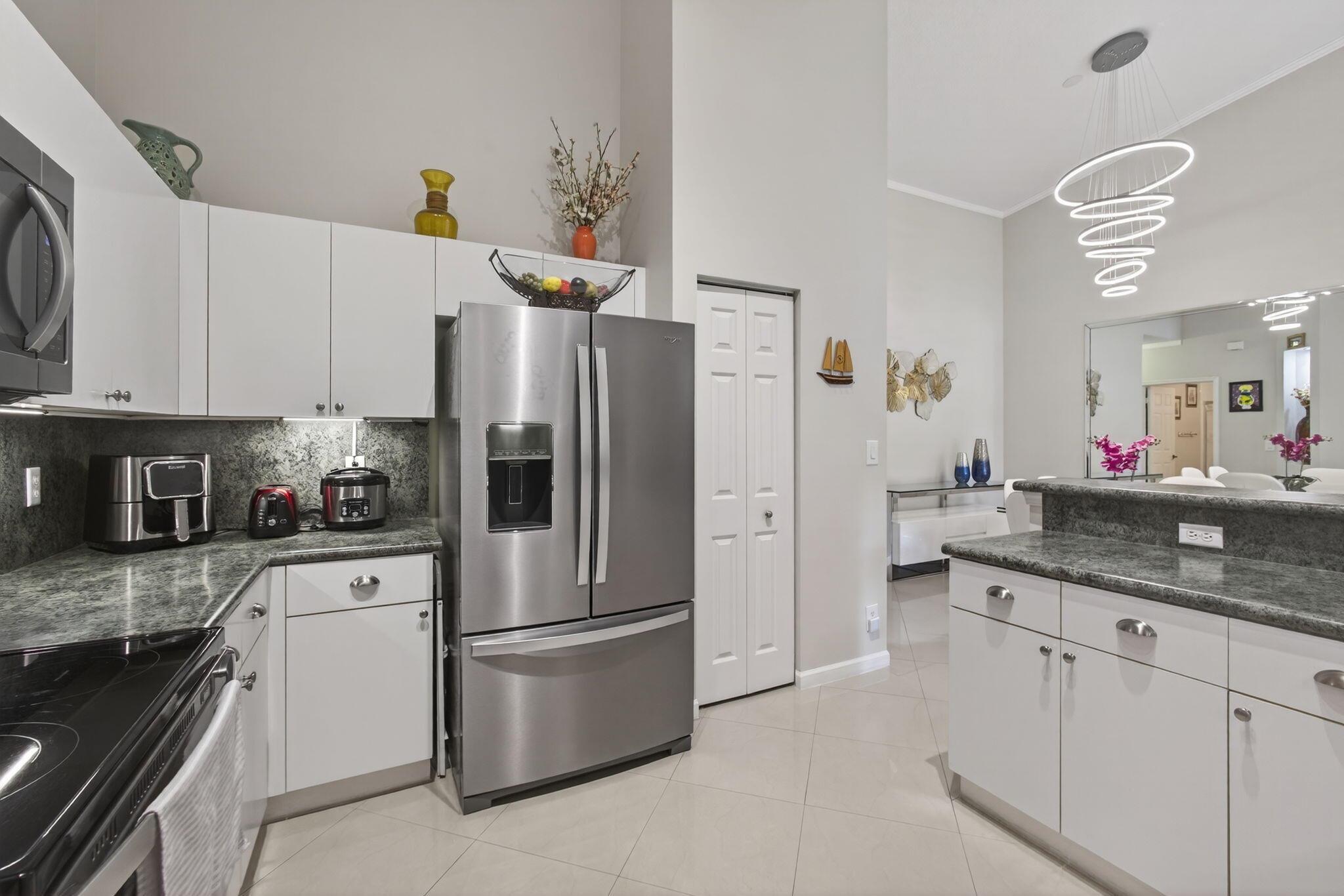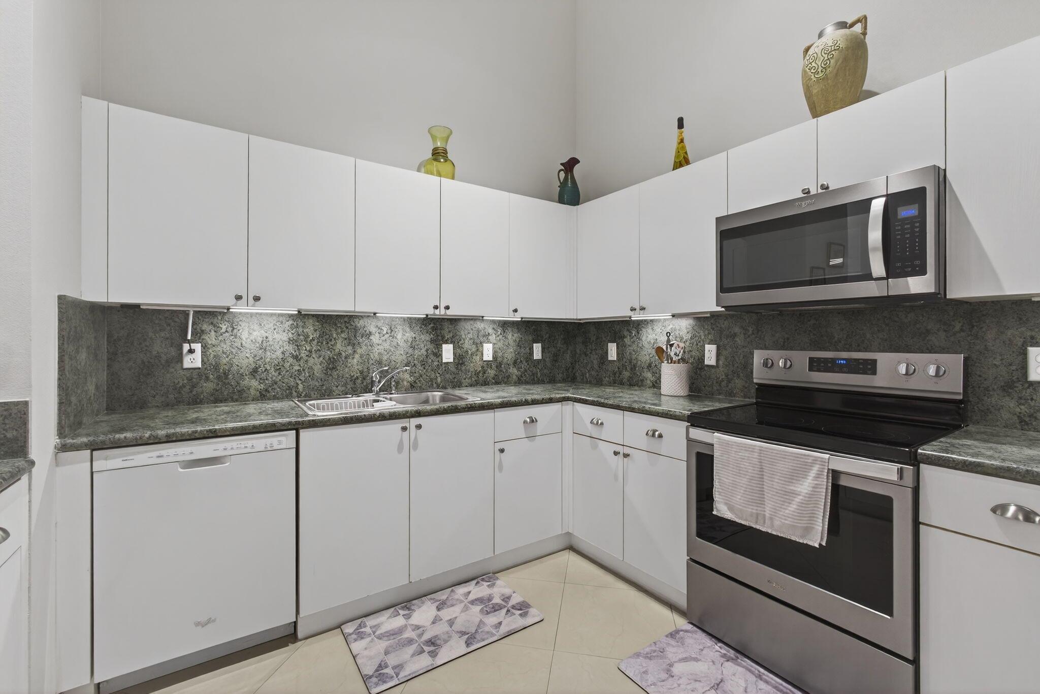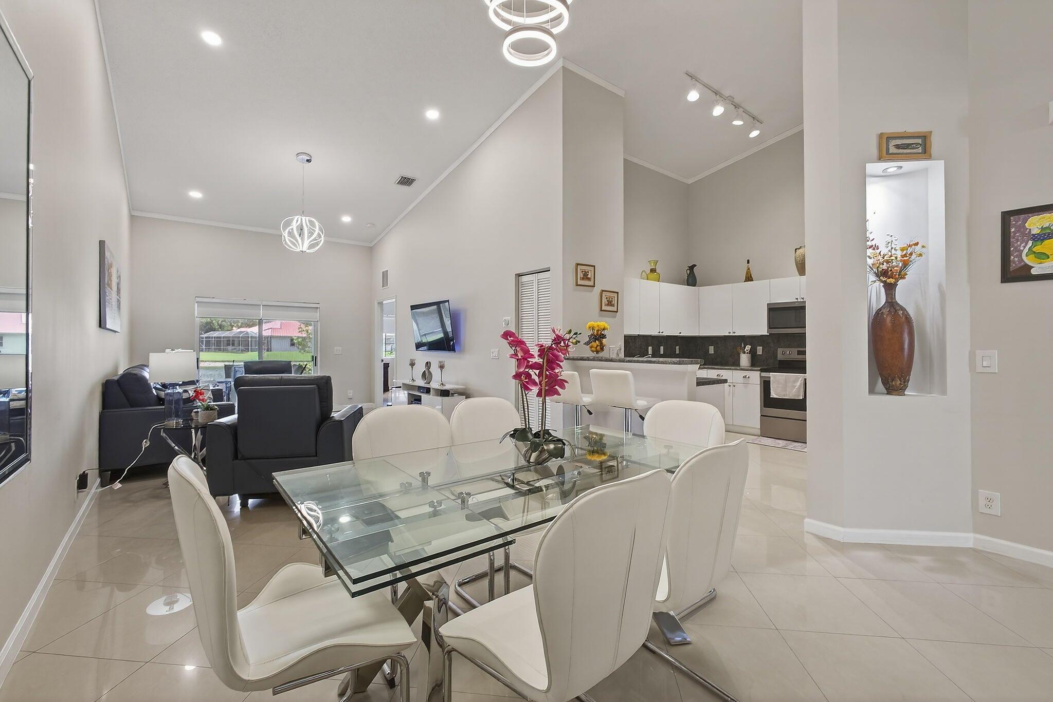 PRICED TO SELL! This pristine, one-story townhouse offers 2 bedrooms and 2 bathrooms in a beautifully maintained and thoughtfully upgraded home. From the moment you walk in, you're welcomed by a sense of warmth and comfort. Featuring elegant porcelain tile flooring, a spacious kitchen, and an open layout perfect for both daily living and entertaining, this home blends style with ease.Step outside to your private patio oasis with peaceful water views--ideal for relaxing or hosting guests. Additional highlights include a one-car garage and driveway parking.Protected with Accordion Shutters. Enjoy resort-style amenities including an adult lap pool, family pool, spa, resistance walking pool, six tennis courts, bocce, shuffleboard, and a clubhouse with gym, ballroom, card room, billiards