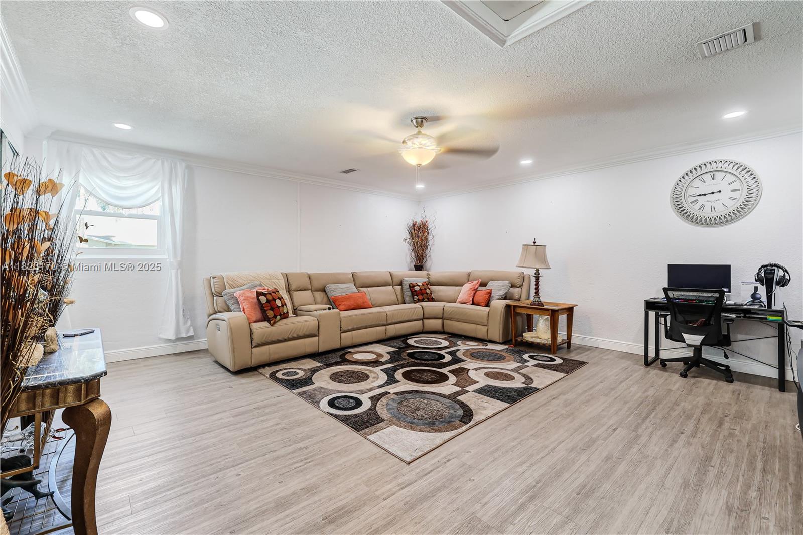 Updated & beautifully designed 4 bedroom, 2 bathroom move in ready SFH in Pembroke Pines. Home is all on one level with lots of privacy, spacious open floor plan, updated kitchen, appliances included. Large outdoor patio featuring a covered pool is great for entertaining. Fenced in yard with shed. 2 car garage. BRAND NEW ROOF IN 2025 WILL BE COMPLETED BY CLOSING. Close to downtown Hollywood, Hollywood Beach and shopping. Must see property!