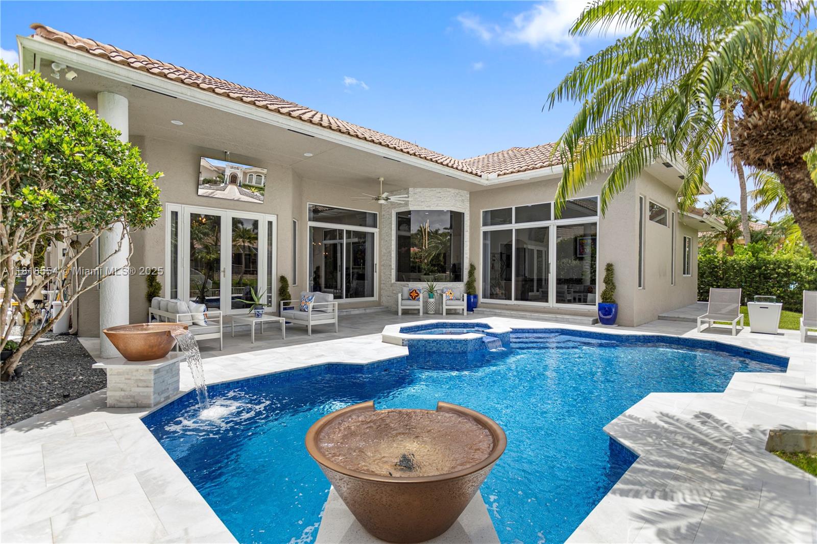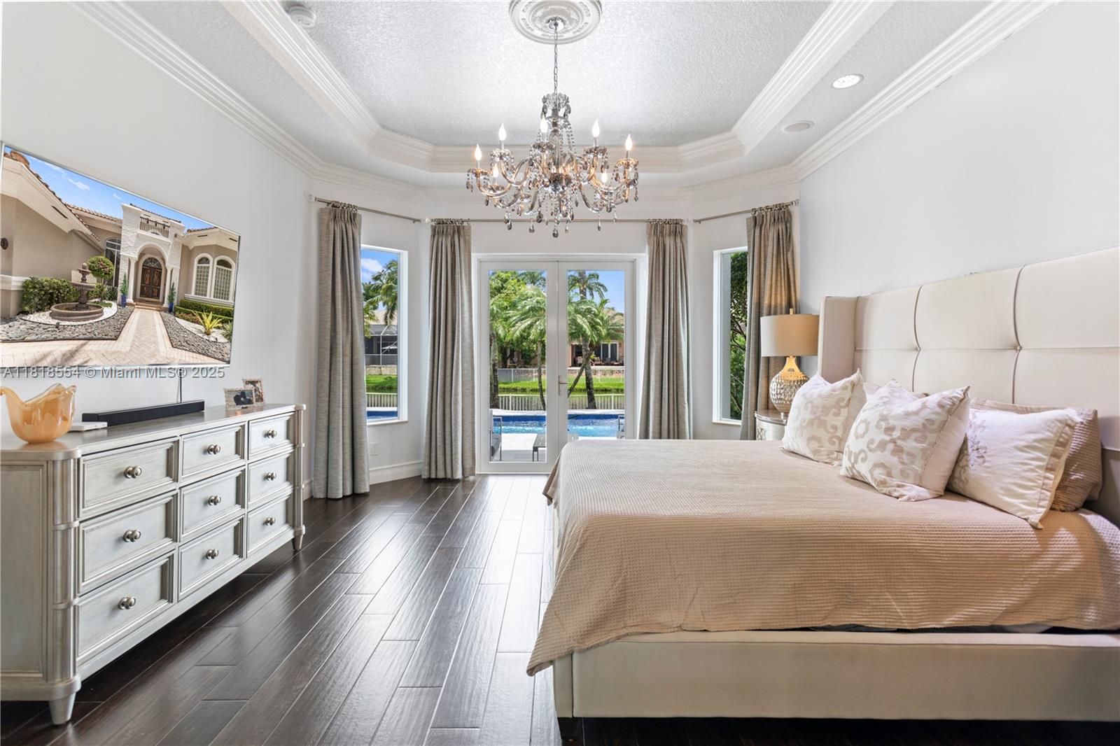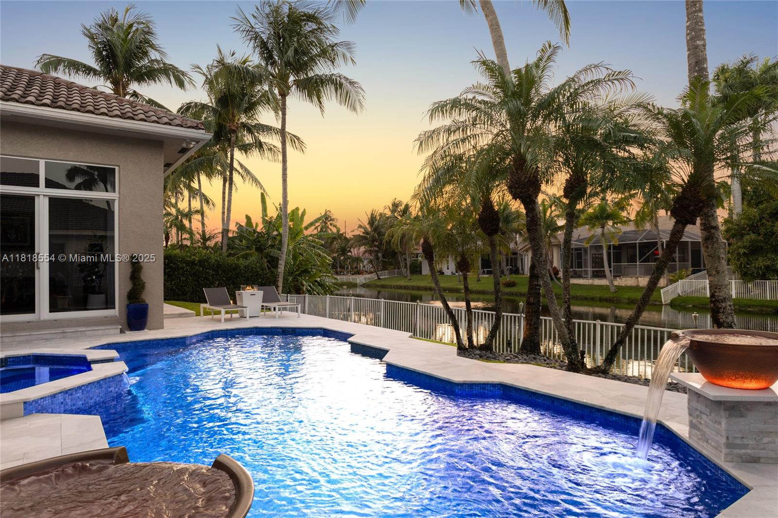 A Tropical Paradise awaits you!! This modernized 4 bed, 3 bath residence with high impact glass and doors boasts 2,762sf of living space designed for comfort and elegance. The customized glass-tile saltwater pool sparkles in the sun while the lavish landscaping, a lake view and access to an array of state of the art clubhouse amenities combine to offer the ultimate lifestyle. Gourmet Kitchen is complete with a built-in Bosch coffee/espresso machine, induction cooktop and 3 ovens. 3 car garage and a circular driveway add convenience and ample parking. This private community offers luxury amenities, including championship tennis courts, pickle ball, fitness center, pool and spa.