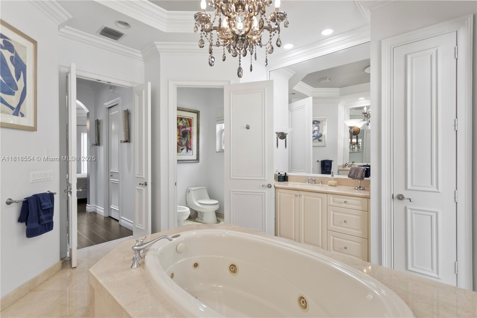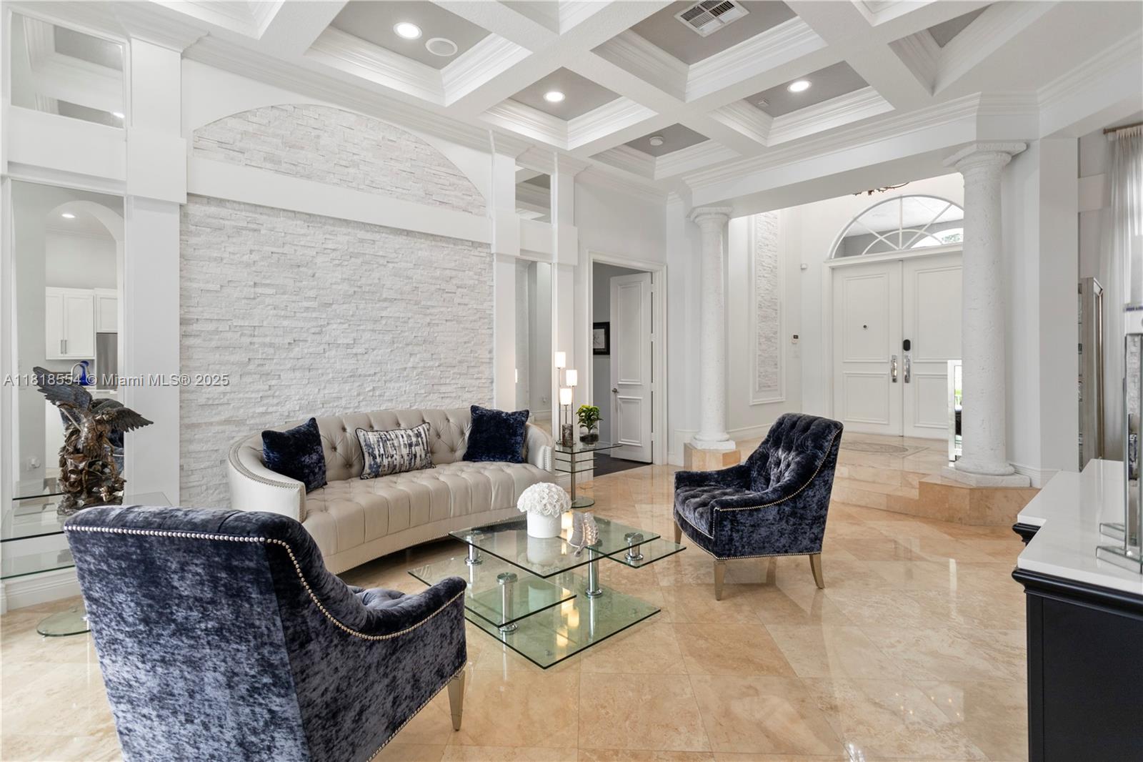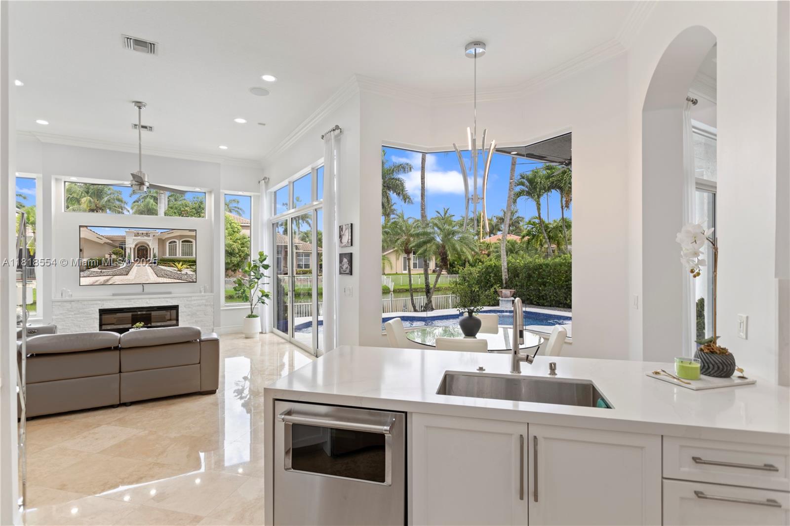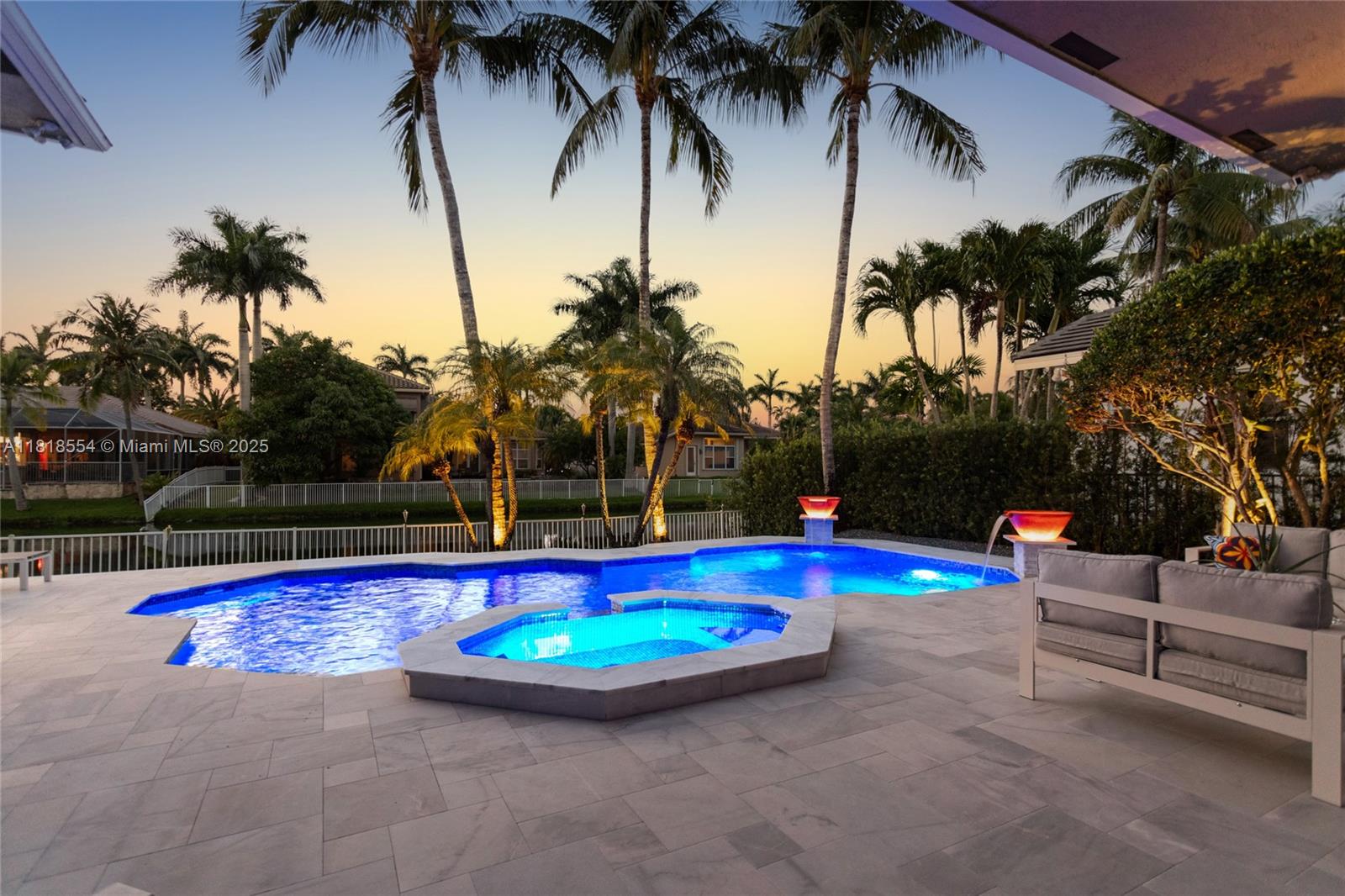 A Tropical Paradise awaits you!! This modernized 4 bed, 3 bath residence with high impact glass and doors boasts 2,762sf of living space designed for comfort and elegance. The customized glass-tile saltwater pool sparkles in the sun while the lavish landscaping, a lake view and access to an array of state of the art clubhouse amenities combine to offer the ultimate lifestyle. Gourmet Kitchen is complete with a built-in Bosch coffee/espresso machine, induction cooktop and 3 ovens. 3 car garage and a circular driveway add convenience and ample parking. This private community offers luxury amenities, including championship tennis courts, pickle ball, fitness center, pool and spa.
