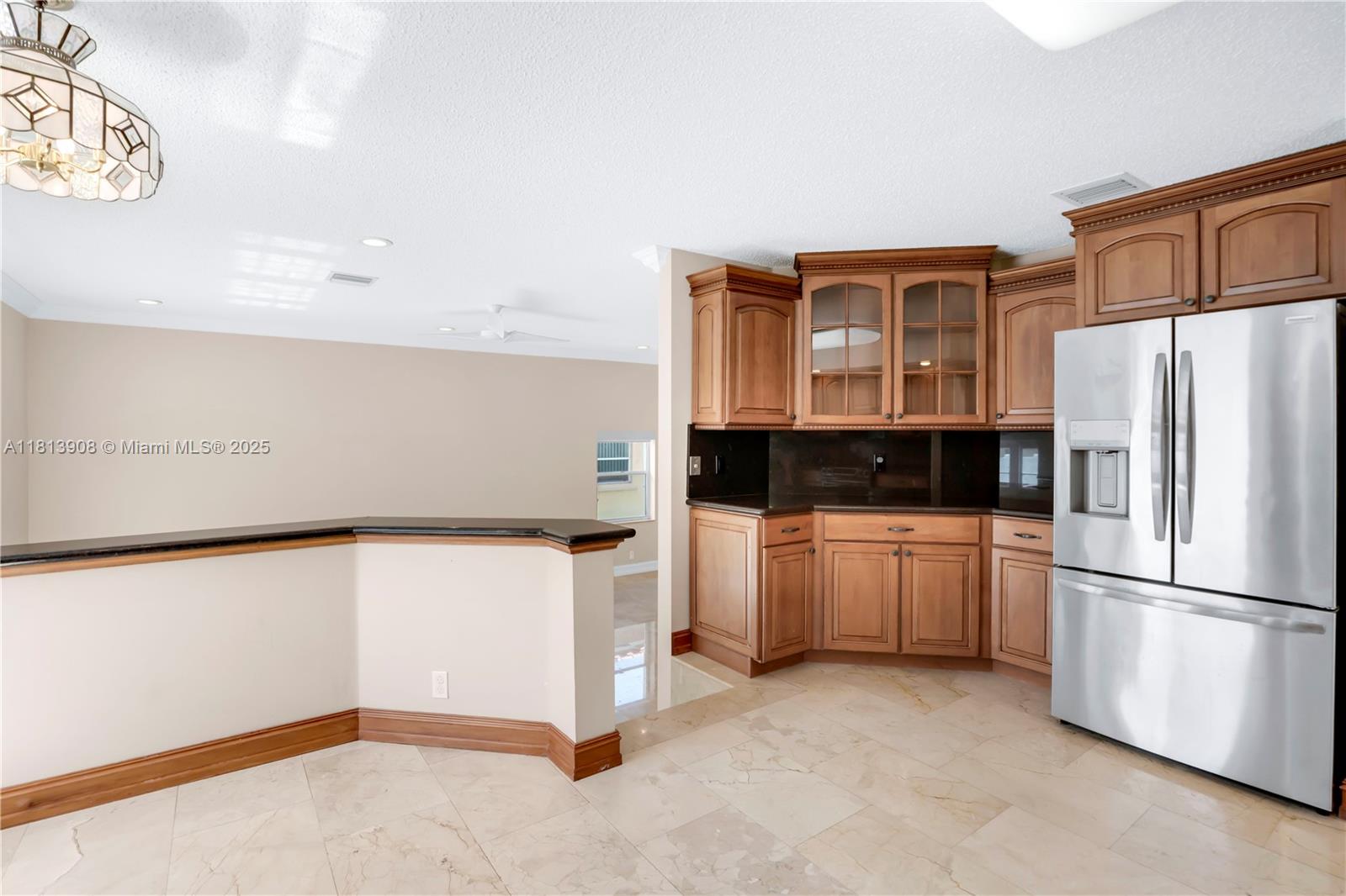 Situated on an oversized corner lot in Chapel Lake Estates, this move-in ready 4-bed, 3-bath home features hurricane-protected windows and doors, soaring 12-ft vaulted ceilings, and marble flooring throughout the first floor. The interior showcases a mahogany staircase with wood flooring, an open floor plan, and abundant natural light. The kitchen includes stainless steel appliances, walk-in pantry, and breakfast nook. The spacious primary suite offers a spa bathroom with jetted tub, dual vanities, and custom walk-in closet. A full downstairs bath with backyard access perfect for a future pool. Enjoy PVC fencing, resurfaced pavers, newer roof, and accordion shutters. Low HOA includes cable, internet, and irrigation. Zoned for A-rated schools near parks, trails, and dog parks.