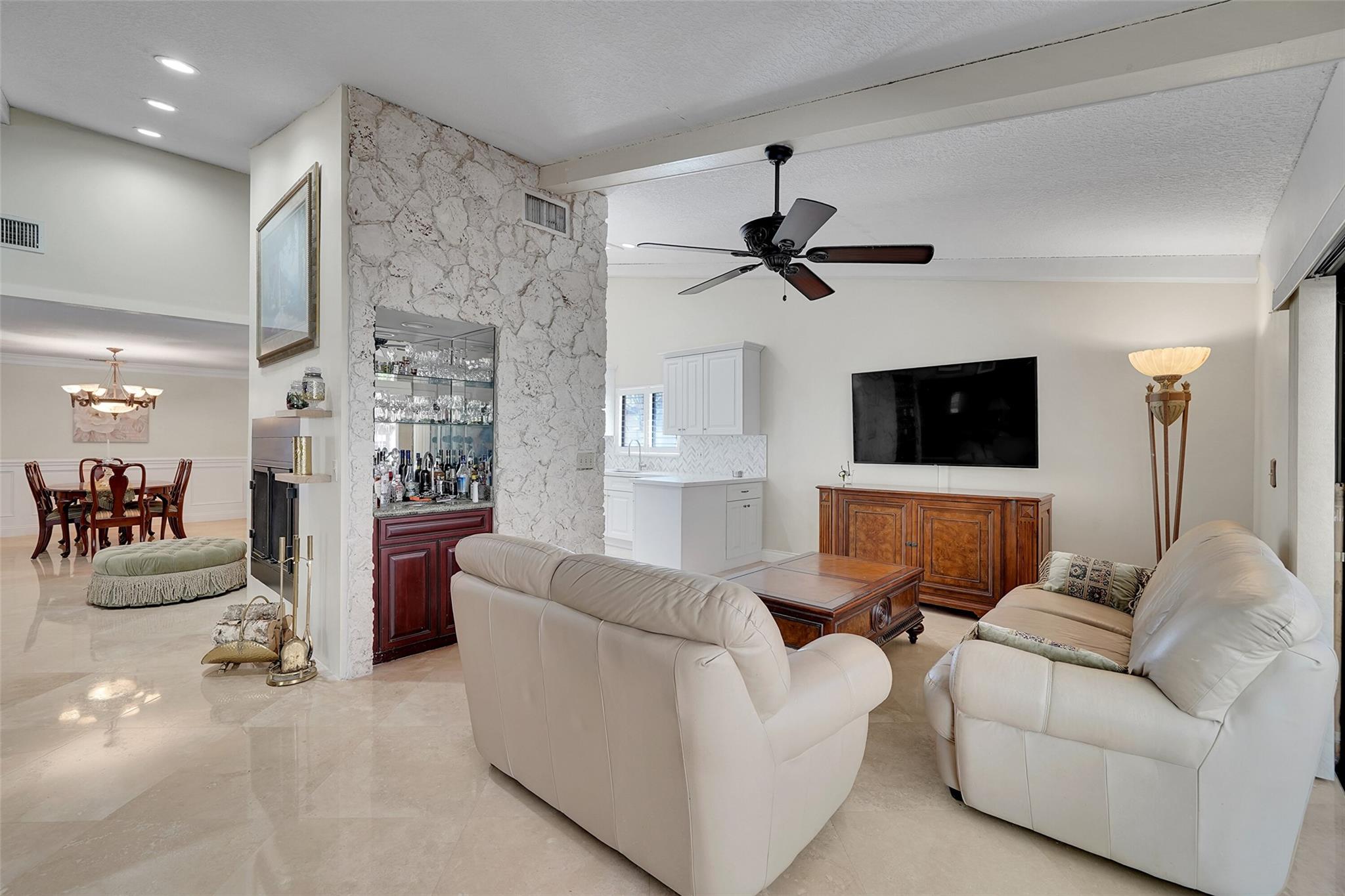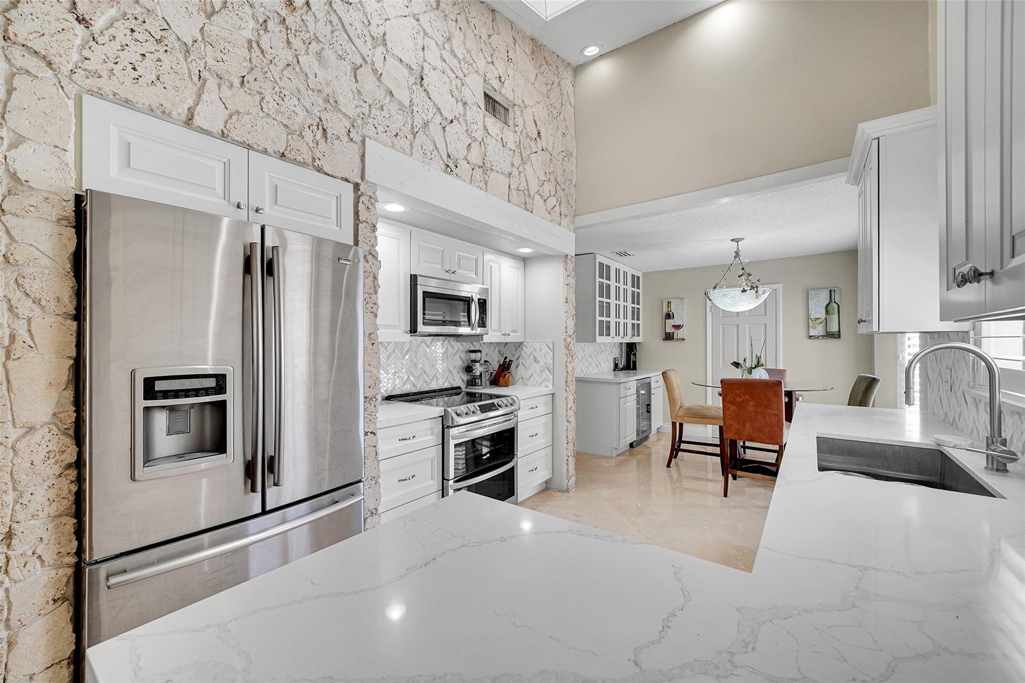 Run to this beautiful gem in the newer section of Jacaranda Lakes. This home is located on a corner lot with gorgeous lake views. It features a newly renovated kitchen with quartz countertops, newer appliances, a dual zone wine color for both red and white wines, travertine marble floors, hurricane protected skylights in the kitchen and bathrooms, newer fireplace, custom wood panels in dining room, Plantation shutters in kitchen, garage tech with cabinets, tiki hut, inground pool within waterfall decent and fiber optic lighting that changes color, artificial grass, and more. Hurry this amazing home has it all! Recently price improved to recent sale comps...