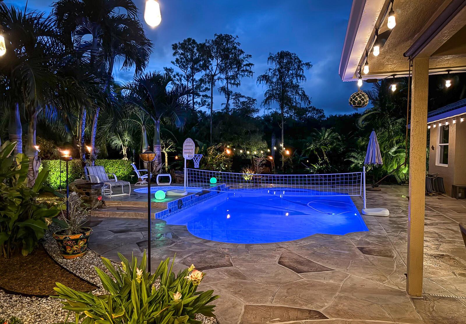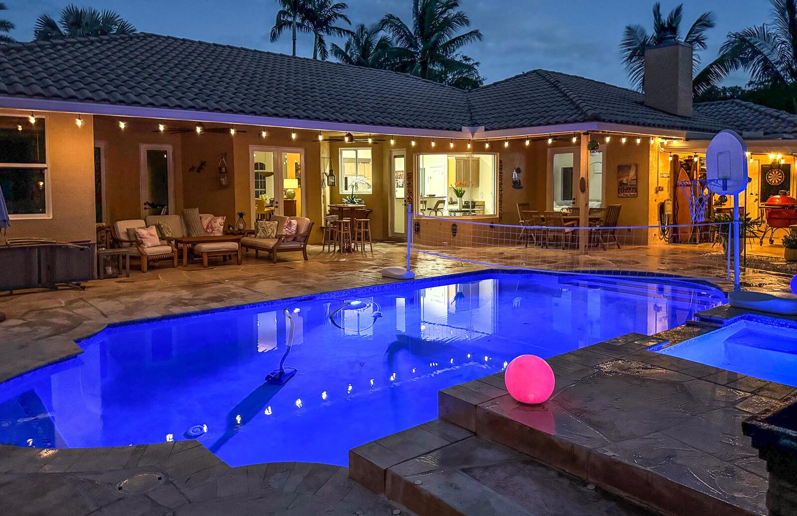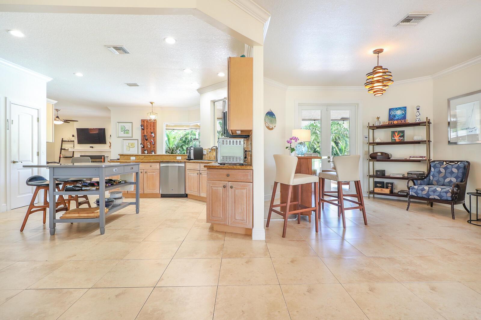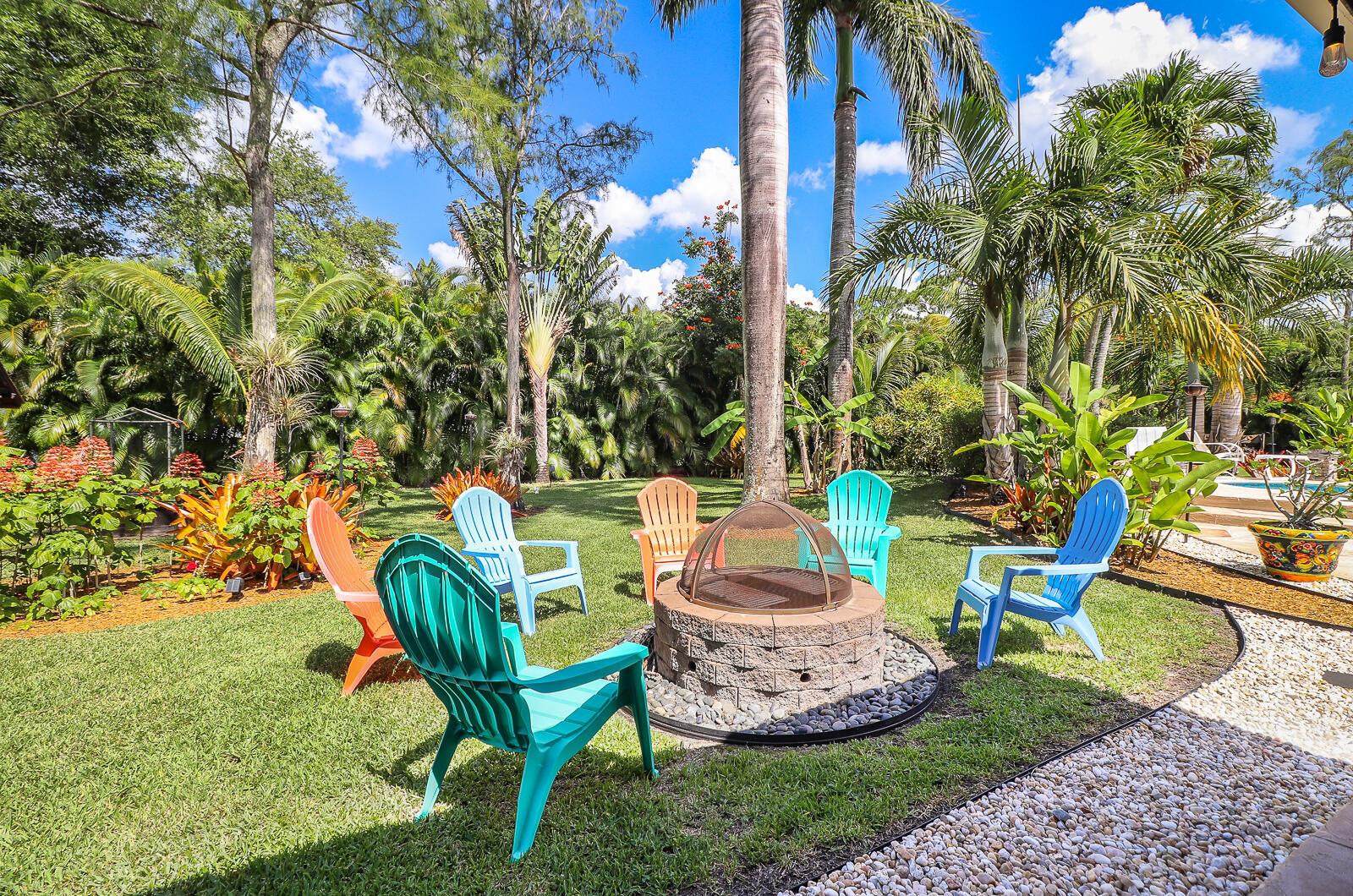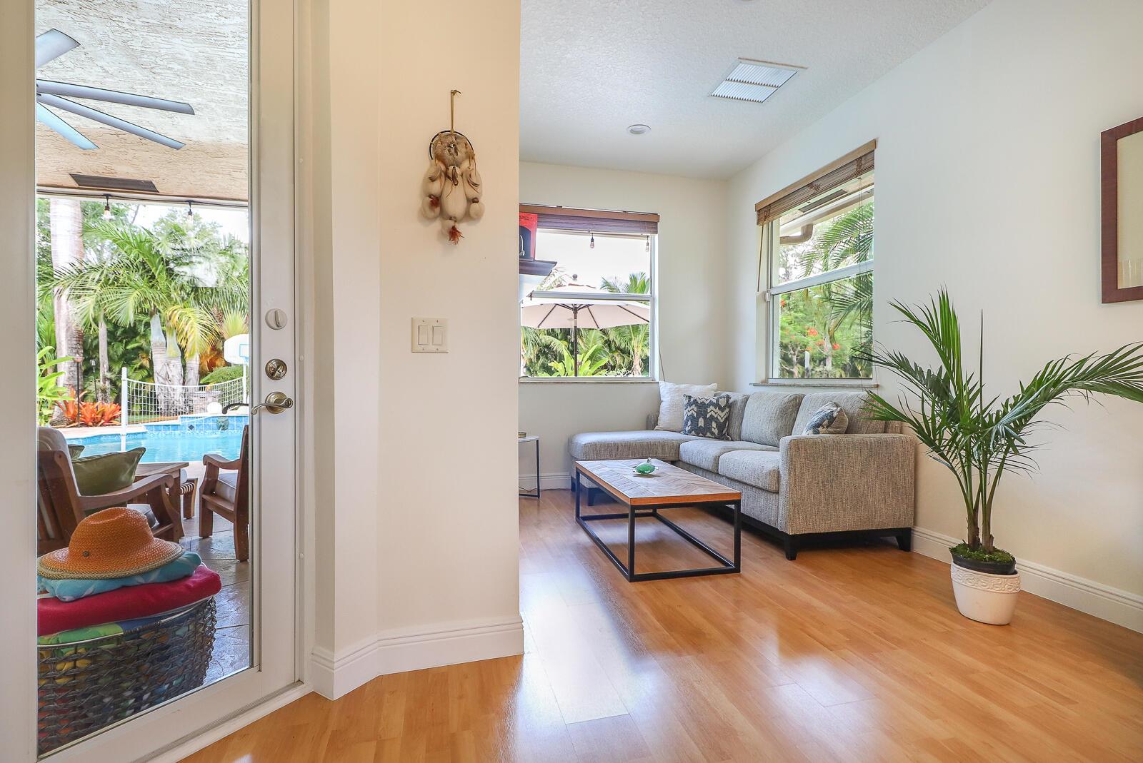 One of the nicest homes on the market! This gorgeous 4 bedroom, 3.5 bath, 2-car garage CBS home with a pool is located on a lushly-landscaped 1.17-acre lot in Palm Beach Country Estates. The stunning back yard with tropical landscaping is fully-fenced with an electric driveway entry gate and additional gate to the yard. Split floorplan with formal dining room, separate living and family rooms, high ceilings, and two cabana baths. Impact glass and hurricane doors. Newer A/C. Gourmet kitchen features granite countertops, wood cabinets, stainless steel appliances, and breakfast nook with panoramic seamless-glass window overlooking the pool area. Fully-renovated pool and jacuzzi with covered porch and spacious patio deck. Extra covered porch for grilling with exhaust fan.