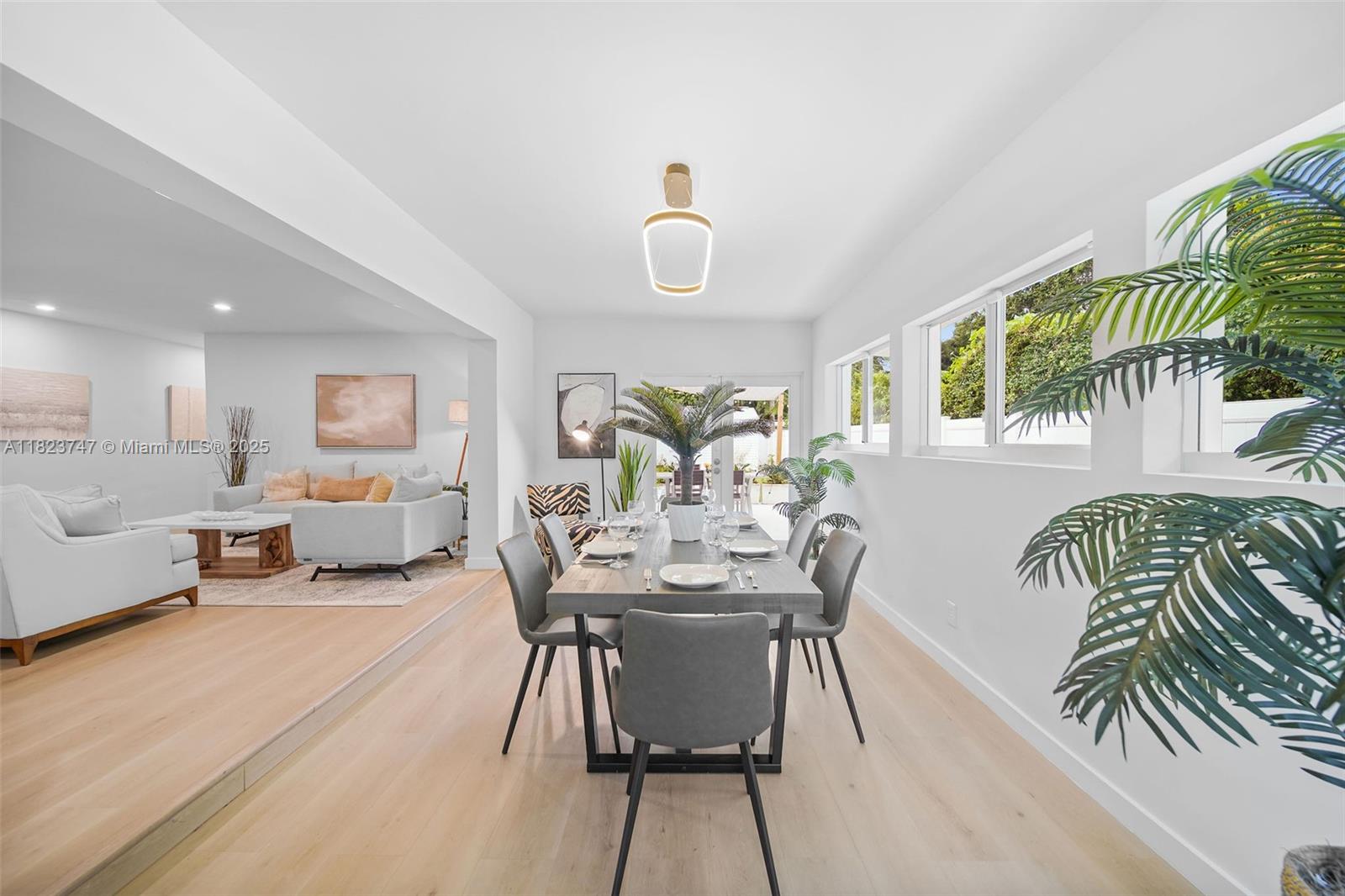 MUST SEE! If you're looking for one of the largest Biscayne Park 4-bedroom pool homes available, check this out (Bitcoin accepted)! Beautifully updated 4 bed-3.5 bath midcentury pool home ~3,000 SF of interiors on a large 11,585 SF lot. Great open flow plan, three living areas, dining room, and eat-in open island kitchen, plush multiple lush entertainment gardens. Four spacious bedrooms (two ensuites) including primary with majestic spa-like double-vanity bath, freestanding tub, and a massive shower with 16 power jets and dual rainfall shower heads. Great features: impact windows-doors, private powder room, huge 20’x40’ pool, multiple patios, mini golf, and outdoor moonlight movie screen. You’ll feel like you’re living in “paradise” in this dreamy Biscayne Park tropical resort-style home!