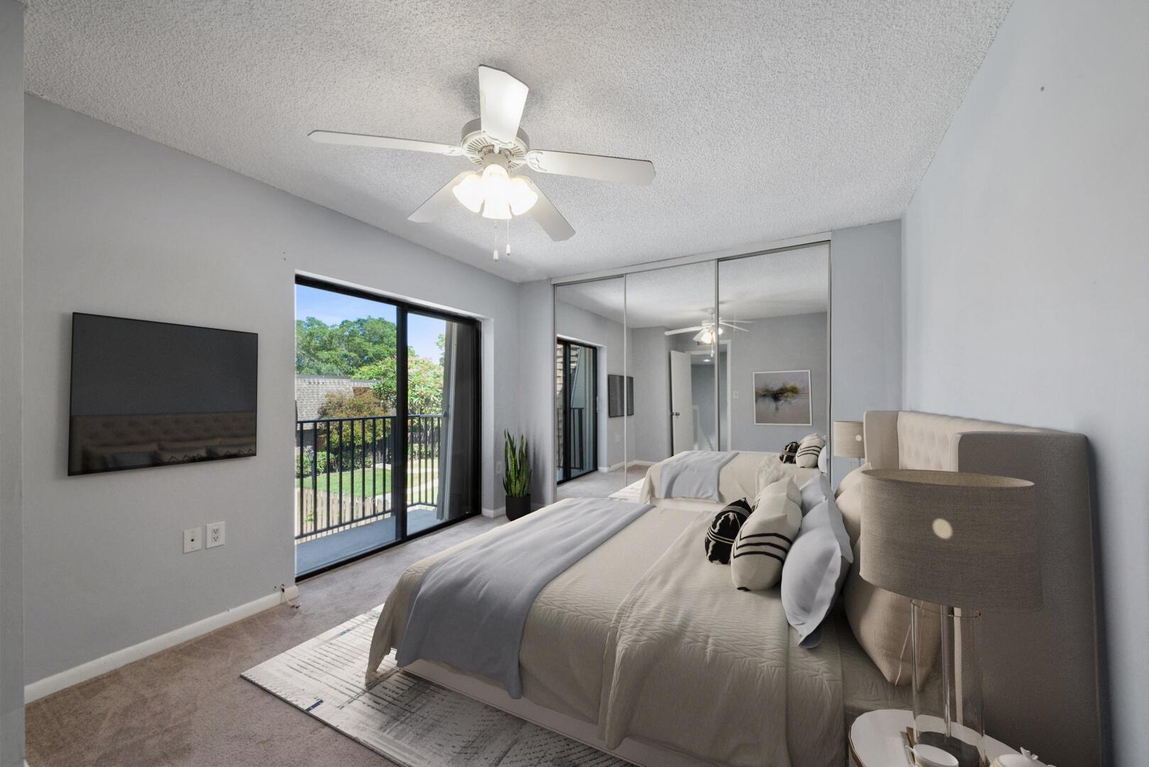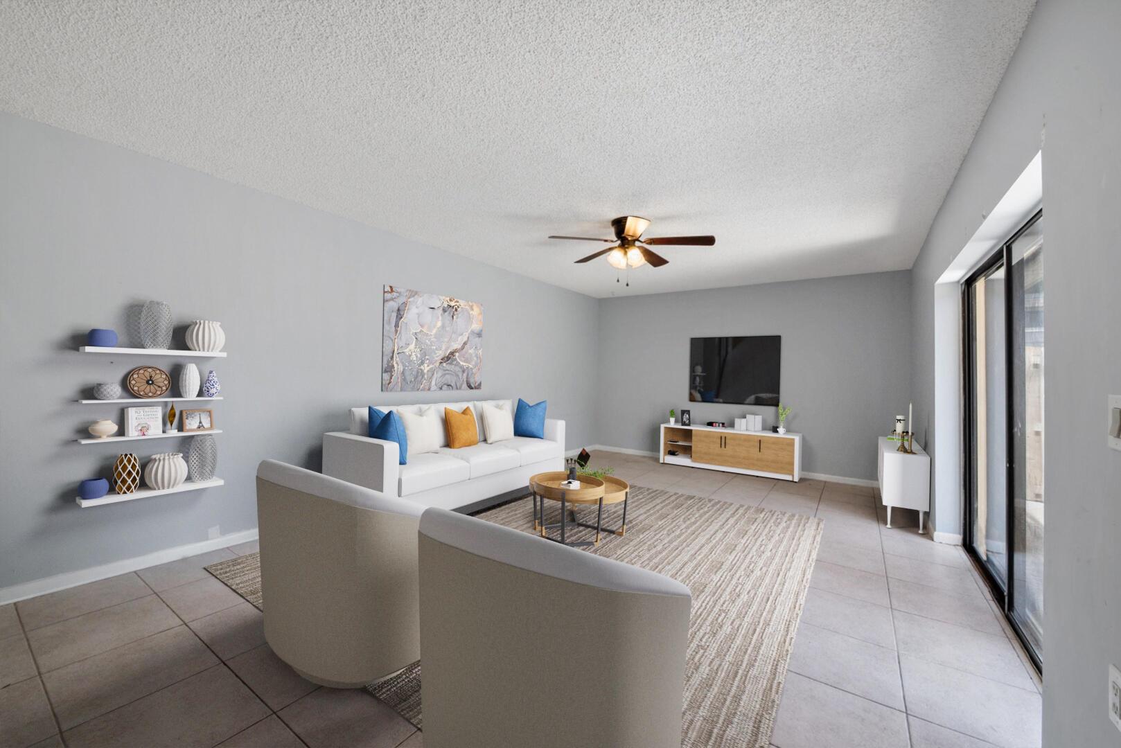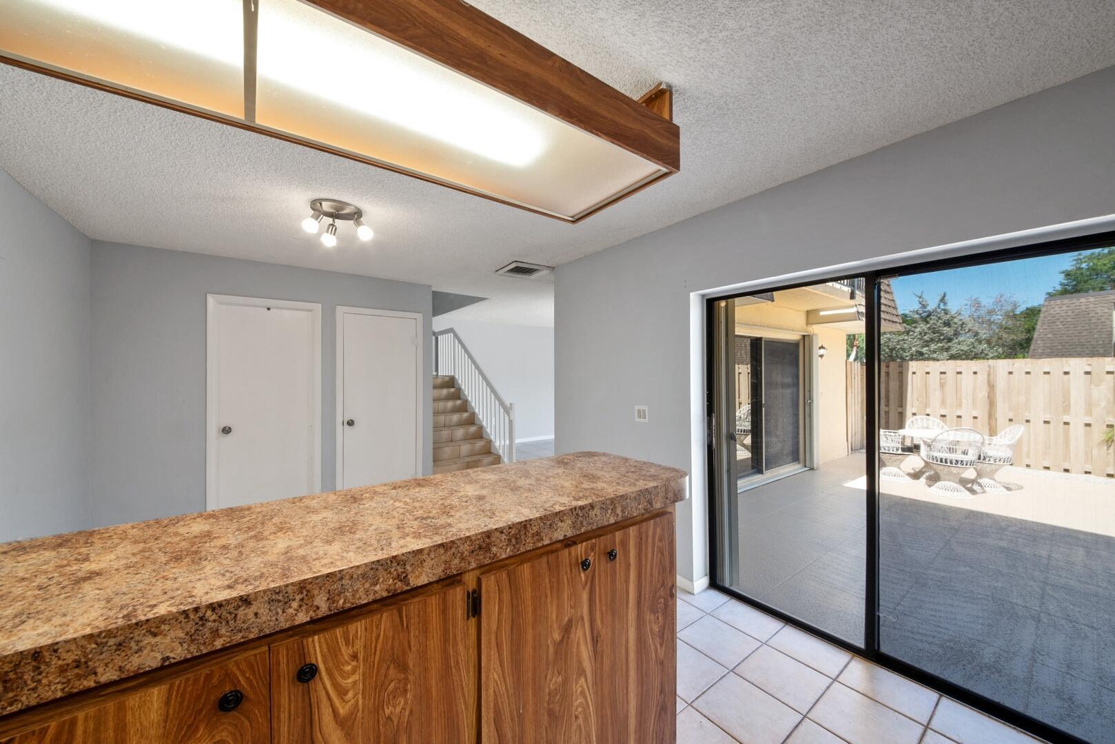 Welcome to this beautifully maintained townhome in the sought-after community of Delray Oaks! This spacious 2-bedroom, 2.5-bath residence offers comfort, style, and functionality in a prime Delray Beach location. Step inside to discover neutral flooring throughout, creating a warm and inviting ambiance. The updated kitchen features sleek stainless-steel appliances, a convenient snack bar, and flows seamlessly into the open-concept living area -- perfect for entertaining or relaxing. Both the kitchen and living room are enhanced with sliding glass doors that open to a large, private fenced-in patio -- ideal for outdoor dining or simply enjoying the Florida sunshine.