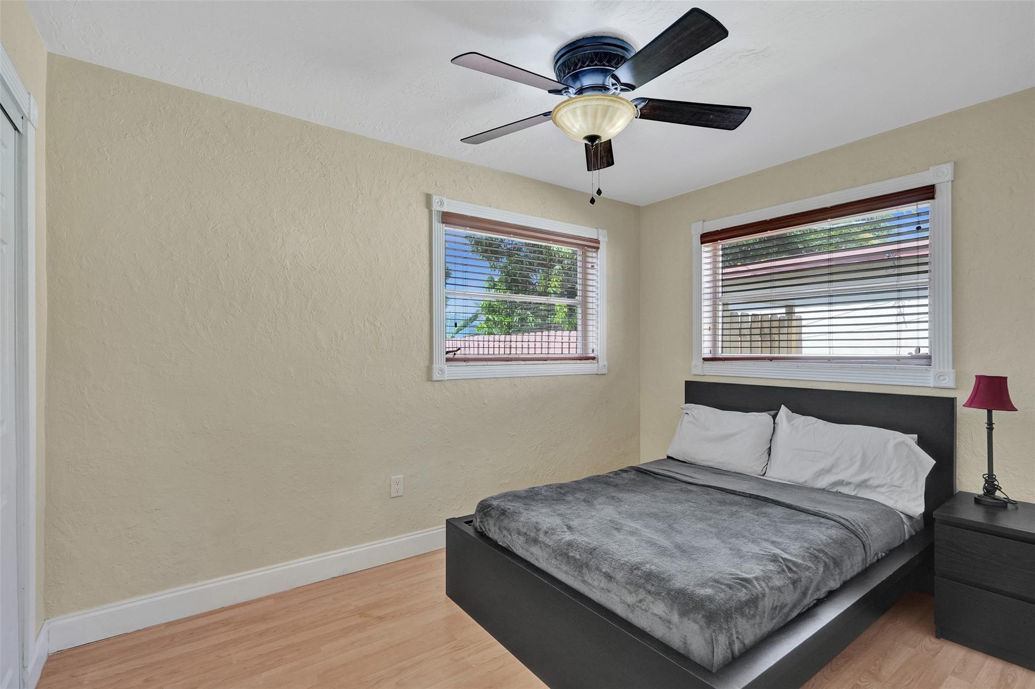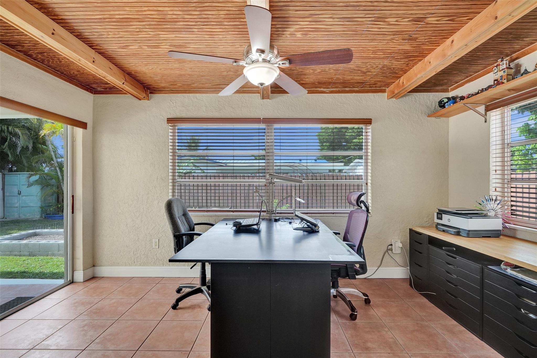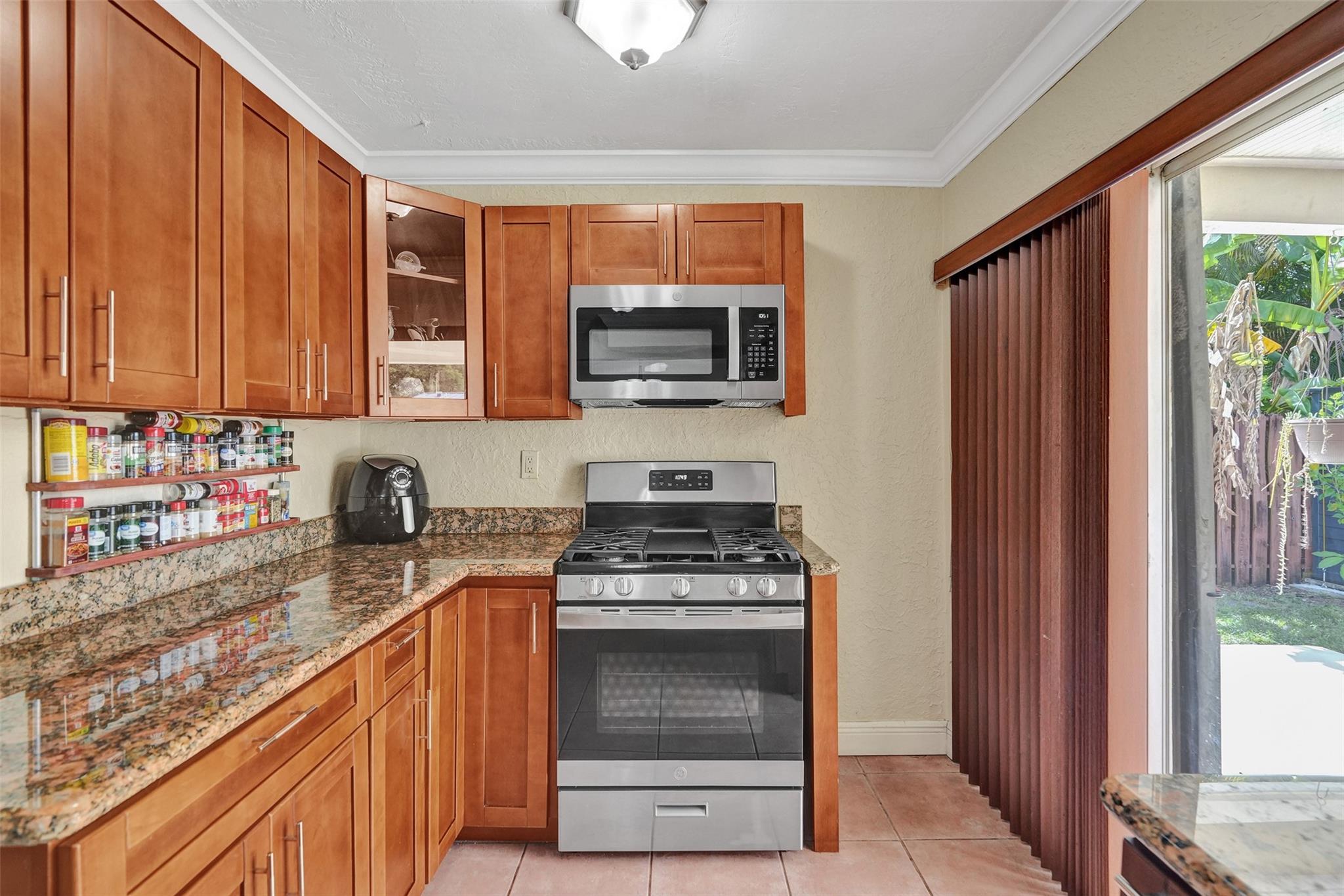 Incredibly well cared for 3/2 with an enormous 1 car garage. Tile floors throughout the living space and laminate wood flooring in the bedrooms. 2 updated bathrooms and a fully renovated kitchen with a brand new gas stove/oven. Brand new microwave. Gas hot water heater 2017. Brand new AC. Huge windows and sliders bring in great natural light. Extra space extended garage with loads of storage space. Great open feel to the home with an additional Florida room currently being used as a home work space. Planter beds in backyard have years of nutrient rich soil perfect for growing your own vegetable, flowers and tropical plants. Hurricane shutters for all windows and sliding doors. ** All potted plants are excluded from sale. Garage refrigerator and freezer are excluded .