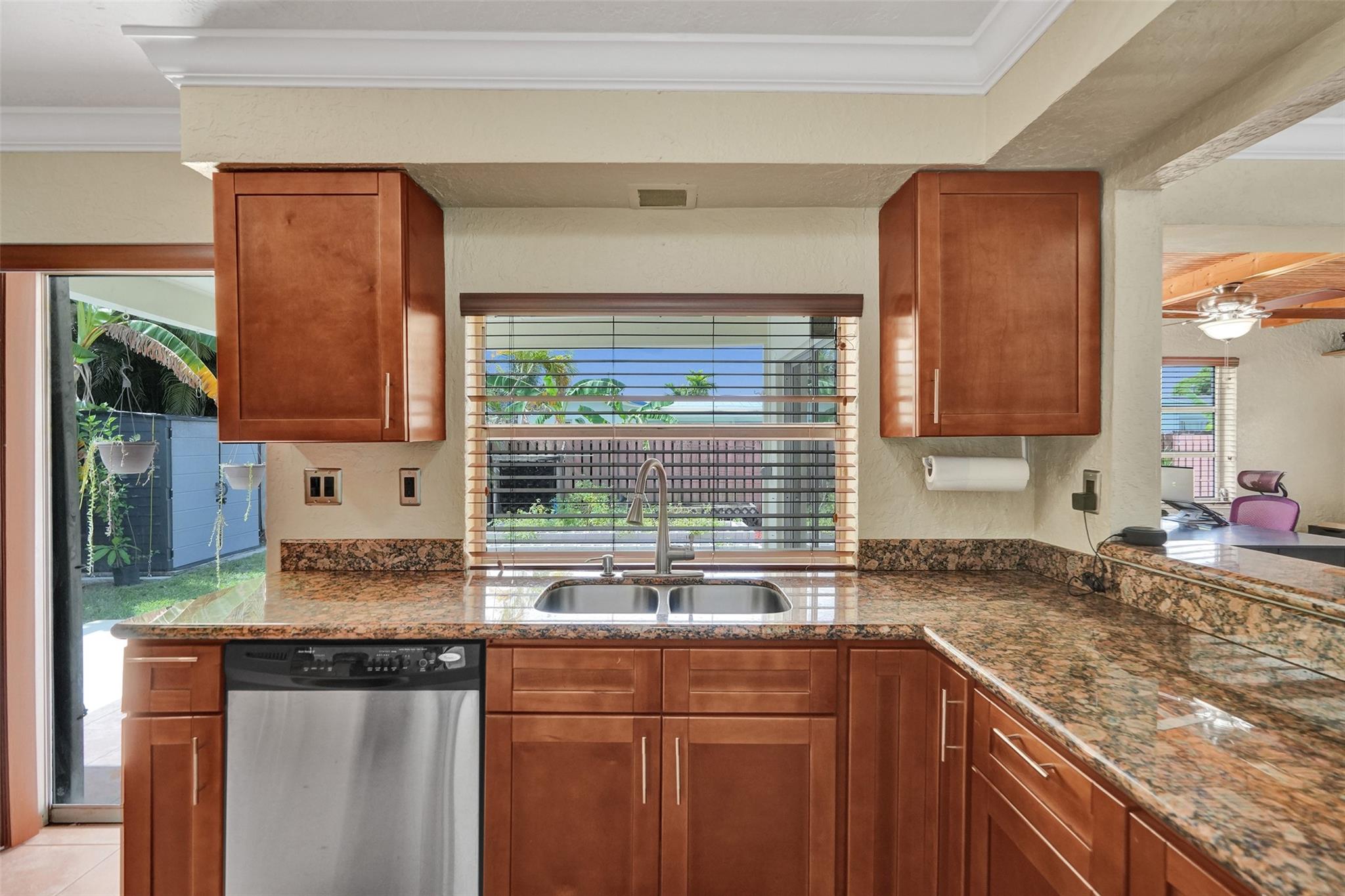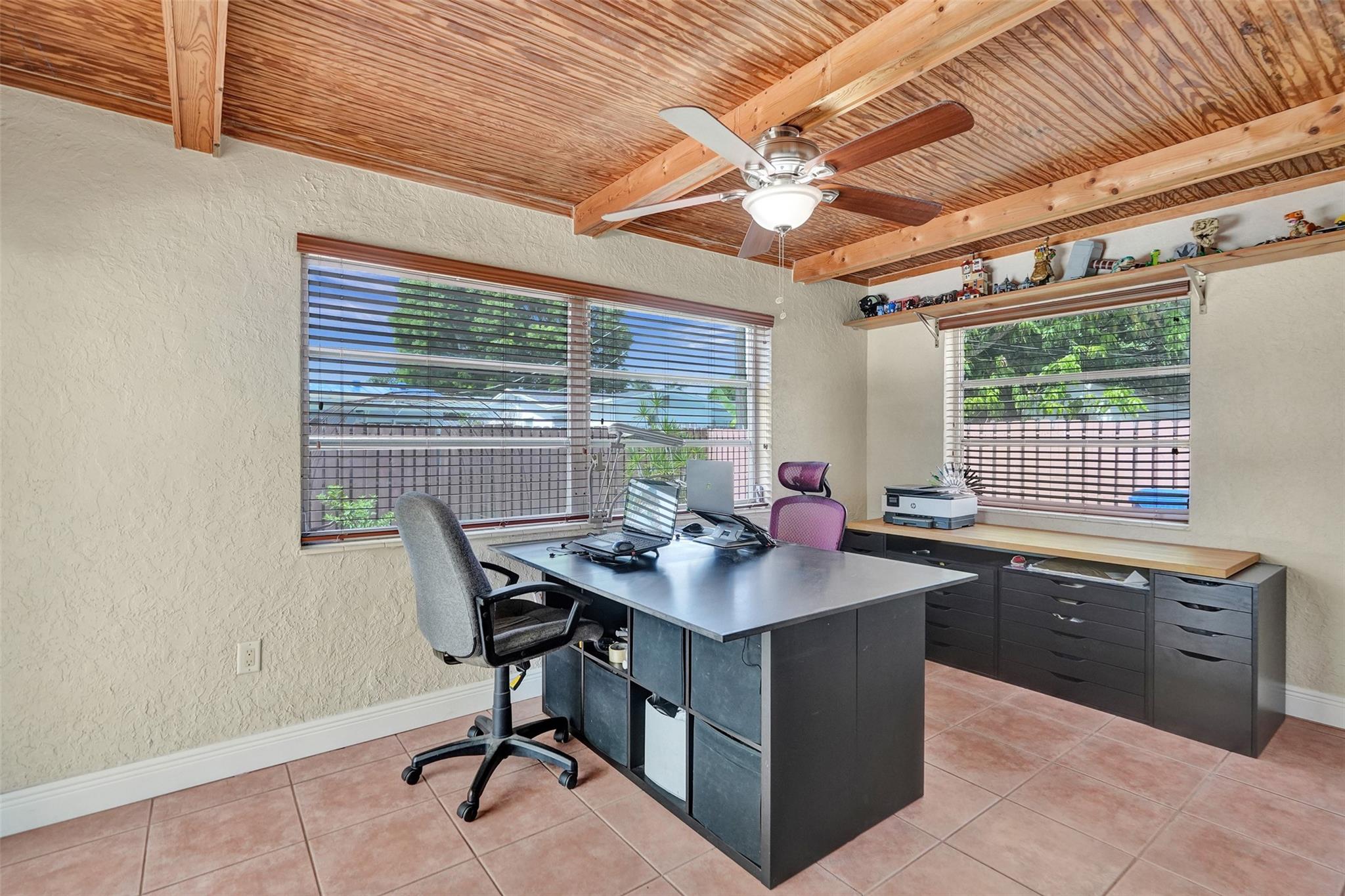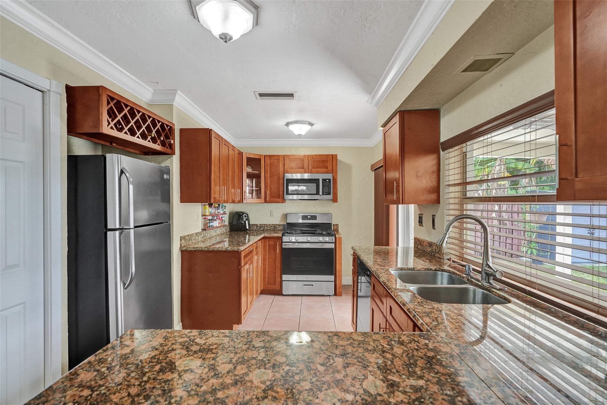 Incredibly well cared for 3/2 with an enormous 1 car garage. Tile floors throughout the living space and laminate wood flooring in the bedrooms. 2 updated bathrooms and a fully renovated kitchen with a brand new gas stove/oven. Brand new microwave. Gas hot water heater 2017. Brand new AC. Huge windows and sliders bring in great natural light. Extra space extended garage with loads of storage space. Great open feel to the home with an additional Florida room currently being used as a home work space. Planter beds in backyard have years of nutrient rich soil perfect for growing your own vegetable, flowers and tropical plants. Hurricane shutters for all windows and sliding doors. ** All potted plants are excluded from sale. Garage refrigerator and freezer are excluded .