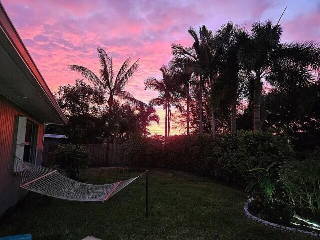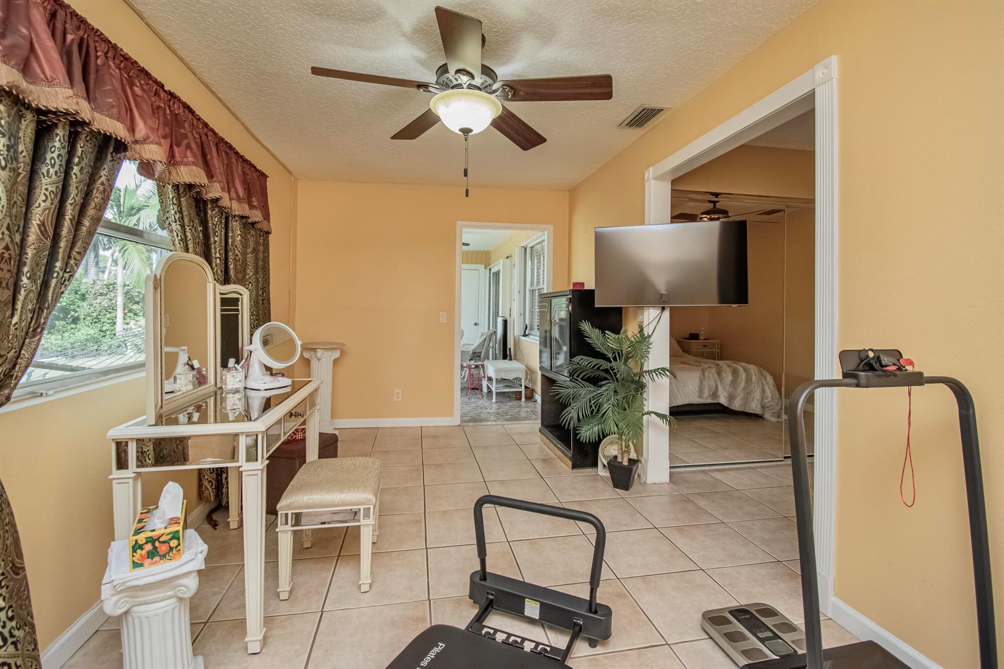 Beautiful 4 bedroom, 2 bath home with new roof 2024, located in a no-HOA community in a prime location in West Palm Beach, FL. The living, family, and kitchen areas flow effortlessly together. The kitchen features a double oven convection range, pantry, and bar. One bedroom includes an adjoining bonus room perfect for an office, studio, or guest suite. Two-car garage with extra storage. Step outside to your own backyard and enjoy a serene garden view from your covered, screened-in porch. The large, fenced-in backyard provides room for creating a custom pool and is home to a fruit-bearing Honeybell orange tree. Additional highlights include a transferable 10-year roof warranty, accordion hurricane shutters, a high-efficiency 3.5-ton A/C system, and optional rental room with independent ent