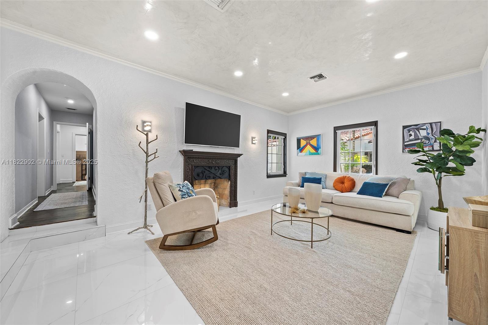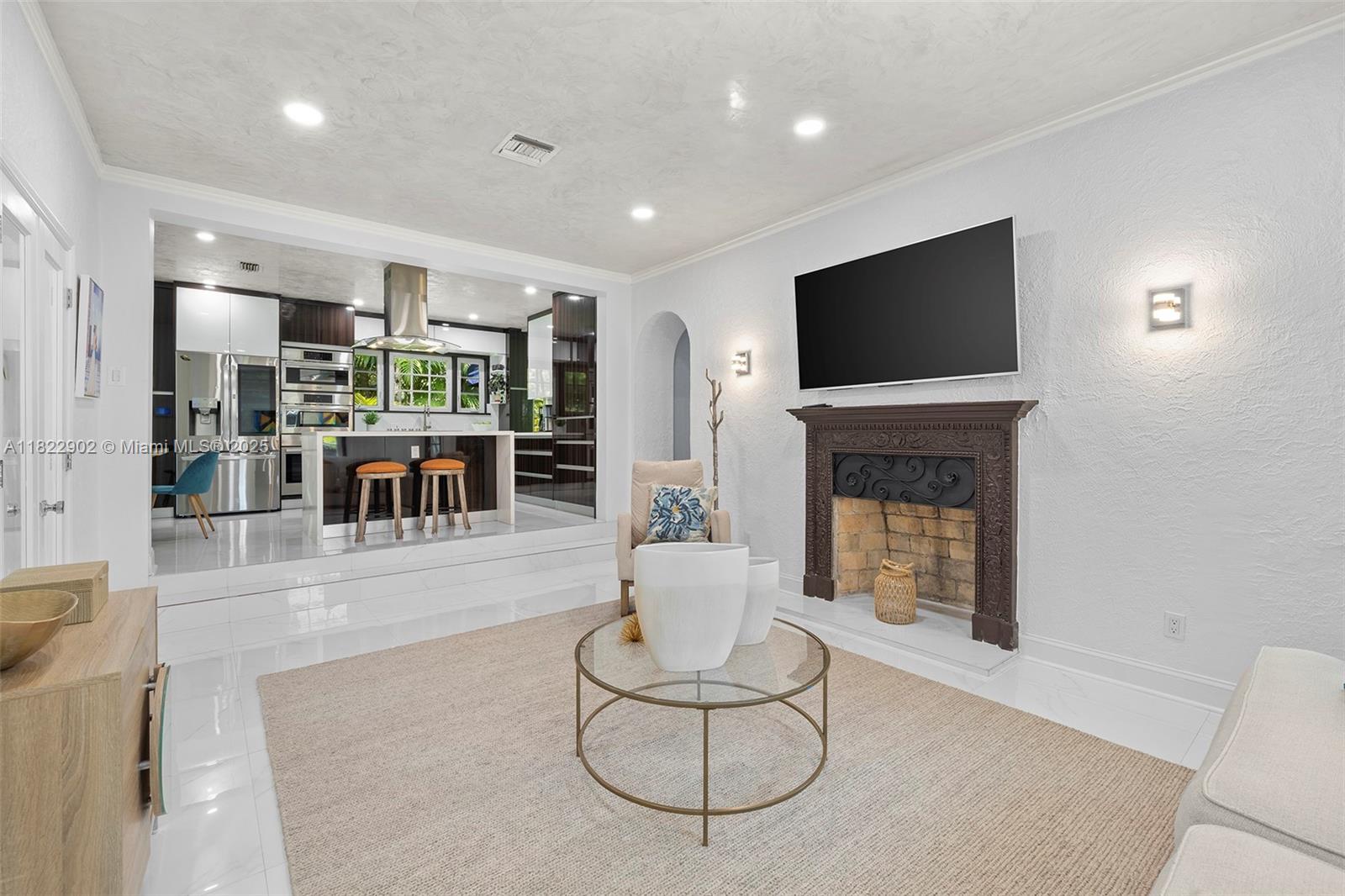 Bienvenido a Casa Granada — a fully renovated Spanish-style home in the sought-after Granada neighborhood of Coral Gables, minutes from the Country Club, Miracle Mile, and Giralda Row. Bright interiors feature an Italian kitchen with island, Silestone countertops, and premium appliances, plus dining room, enclosed porch, office, and den. The primary suite offers a walk-in closet and spa bath with oversized shower and dual sinks. Finishes include Carrara marble tile, hardwood floors, impact windows, new roof, and custom closets. Two private patios allow for both lively family gatherings and peaceful retreats under the Coral Gables sky.