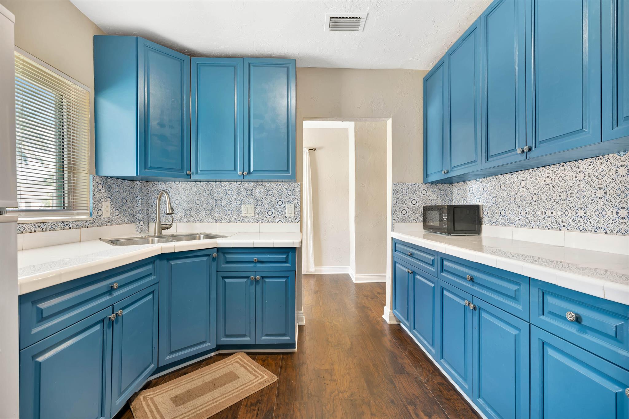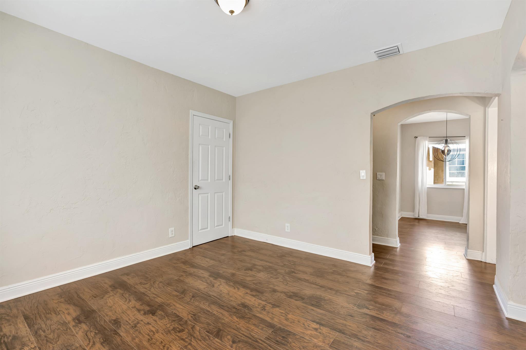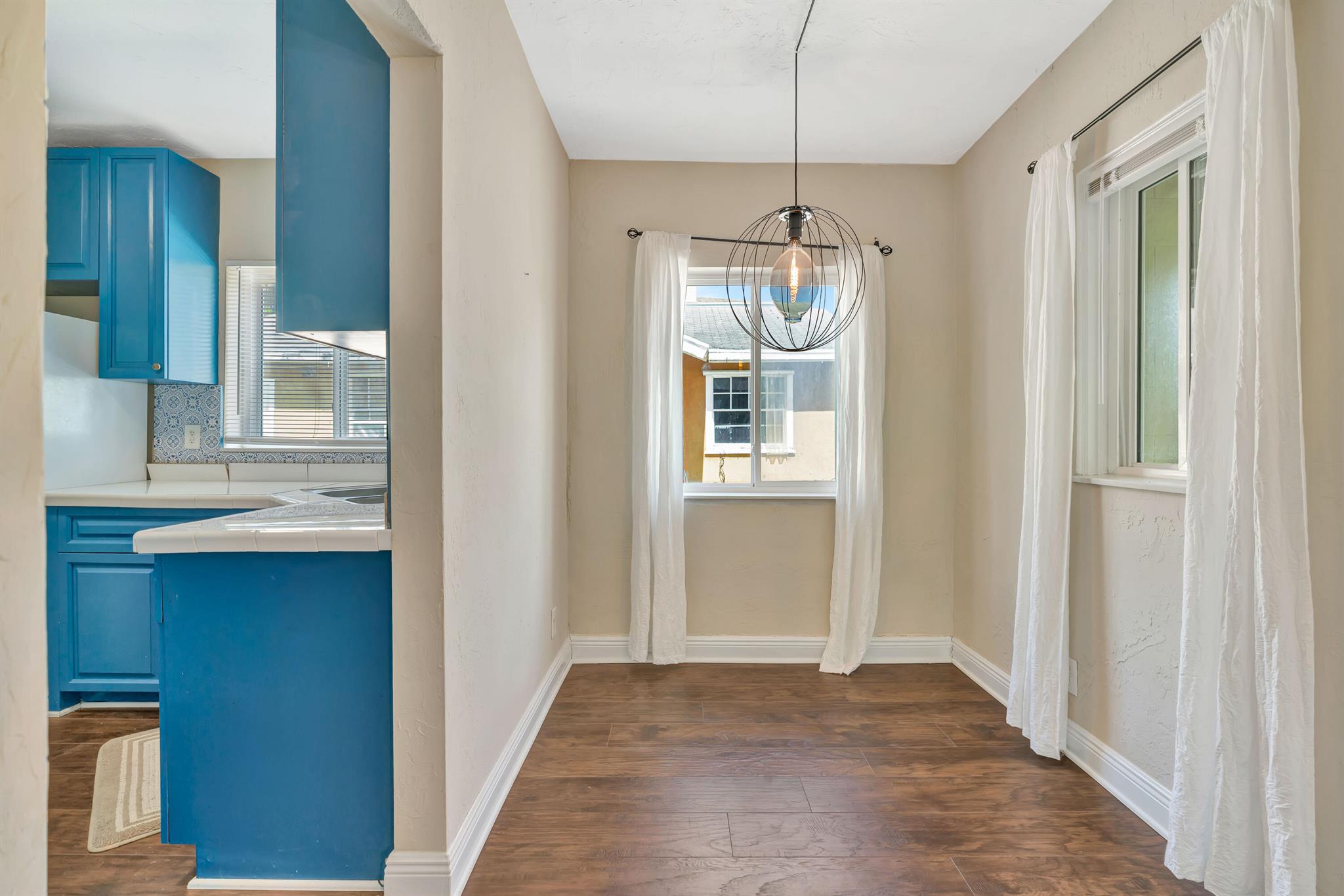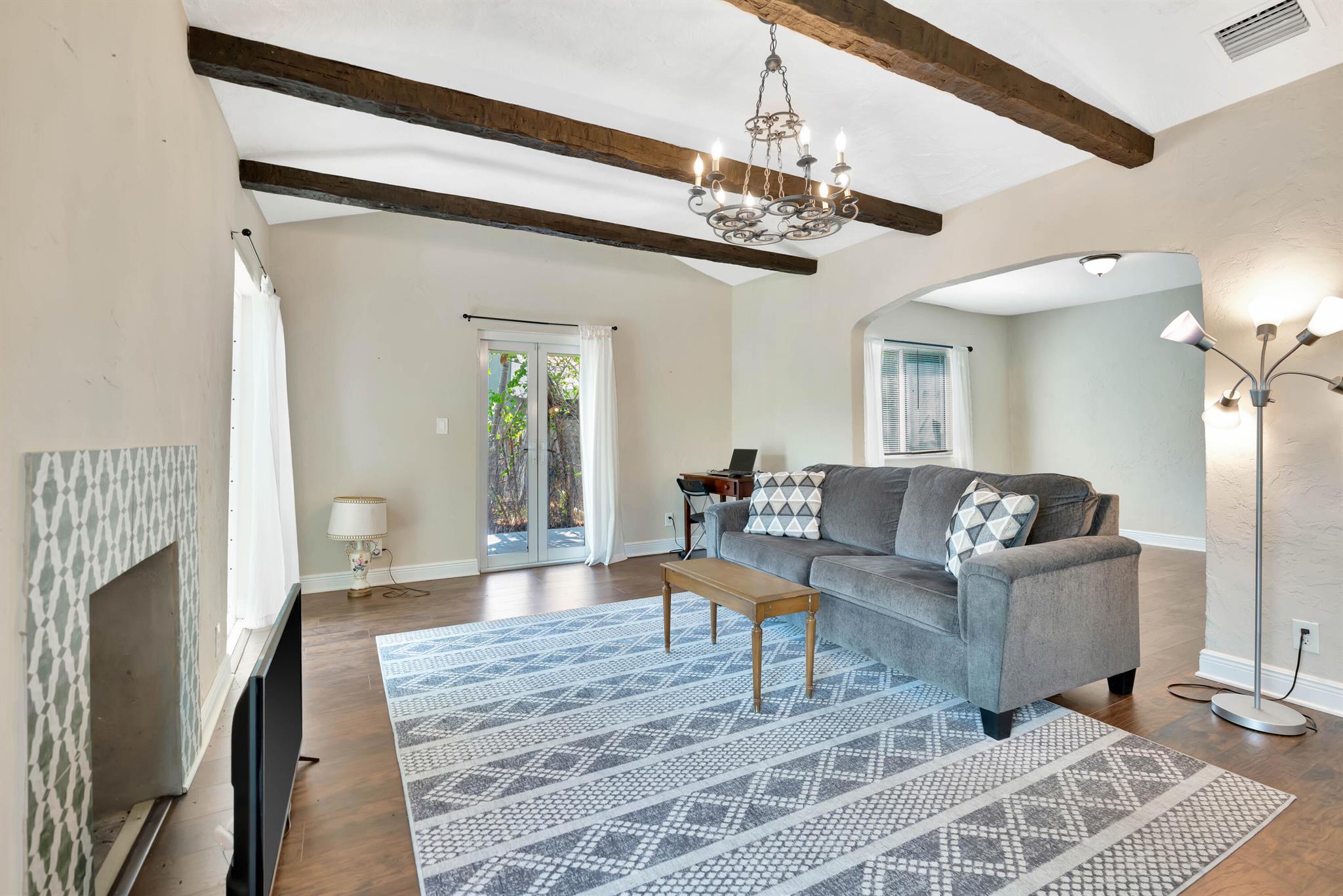 Charming Spanish-Style Home in the Heart of Historic Northwood. Don't miss this beautifully updated 3-bedroom, 1-bath Spanish-style gem located in the sought-after Historic Northwood District. Overflowing with character and charm, this home features dark laminate floors, a spacious kitchen with generous counter space, and signature arched doorways accented by exposed wooden beams that create a warm, rustic feel.Currently configured as a 2-bedroom with a den/office, the layout offers flexibility and can easily be converted back to a true 3-bedroom home. Recent upgrades include a brand-new sewer line, full-impact windows, and a large utility room that enhances everyday convenience. Step outside to enjoy a large, fenced backyard; ideal for relaxing, gardening, or entertaining guests.