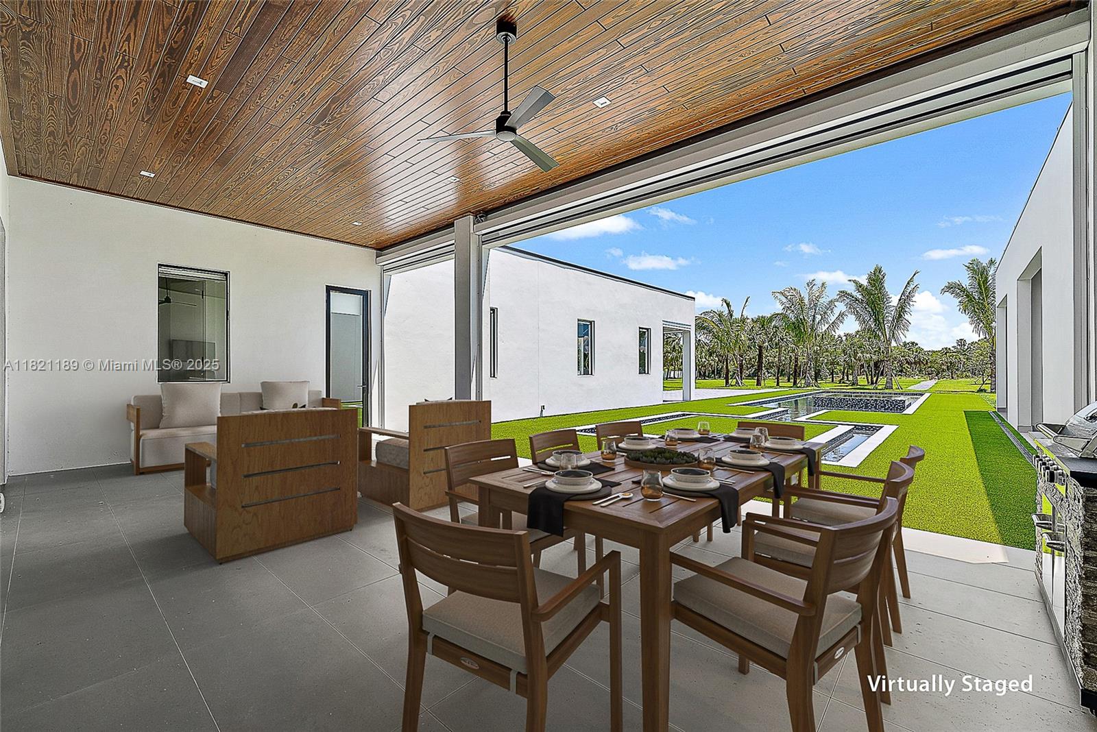 Built in 2022 on over 4 acres, this exceptional property is a dream for car collectors and boaters alike, offering 8 garages (with room for lifts) and direct Intracoastal access. Sleek lines and floor-to-ceiling windows showcase the estate's expansive grounds and resort-style pool. The main house features, eye catching design, a media room/theater, office/exercise room, and other amenities making it perfect for hosting or working from home. The detached guest house offers a full bath, kitchen, and laundry. The vacant lot is potentially available for purchase upon inquiry. The luxurious owner's retreat includes wood floors, a cozy fireplace, a marble bath with dual sinks and water closets, and a walk-in boutique-style closet. The state-of-the-art kitchen is equipped with dual wall ovens, a