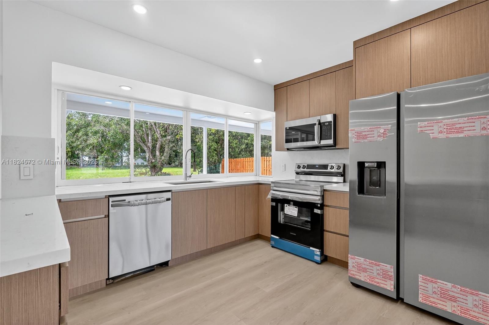 2025 NEW ROOF & Fully Remodeled Waterfront Pool Home in Pembroke Pines! This stunning 4-bedroom, 2-bath single-family home offers the perfect combination of luxury and comfort with serene canal views and a private pool. Recently renovated top to bottom, it features a brand-new 2025 roof, modern design bathrooms with double vanities and a spacious walk-in shower, plus a stylish kitchen with quartz countertops and brand-new stainless steel appliances. Enjoy indoor-outdoor living with a large patio, perfect for entertaining or relaxing poolside while taking in the water views. The open floor plan, natural light, and thoughtful finishes make this home a true turnkey gem in one of Pembroke Pines' most desirable neighborhoods.