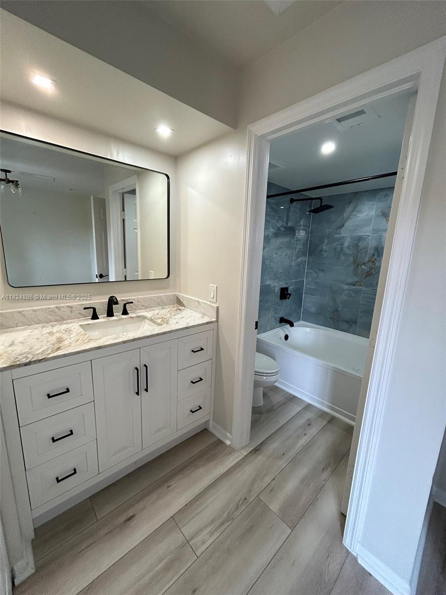 Spacious & Modern 2-Bedroom Townhome in the Heart of Aventura. Welcome to this beautifully updated 2-bedroom, 2-bath tri-level townhome located in the prestigious city of Aventura! This bright and cozy residence offers a perfect blend of comfort and style. The first level features a private 2-car garage and a convenient laundry area. On the second floor, enjoy an open-concept living and dining space, complete with a modern kitchen boasting quartz countertops and brand-new stainless steel appliances. Luxury wood laminate flooring runs throughout the unit. Upstairs, you’ll find two generously sized bedrooms and two well-appointed bathrooms, offering ample space and privacy. A brand-new AC unit ensures year-round comfort. This unit is located by the pool and in a gated waterfront community.