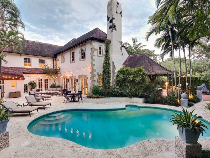 Meticulously renovated 1926 Historic French/Norman Estate on lush, gated lot in Country Fr.Village.Master & 2nd bed have lge walk-in closets. Formal Living rm w/fireplace, Dining rm french doors lead to main gallery overlooking garden thru arched mahogany windows. Both Liv. room & lge pecky cypress media room open to lush green flowering garden w/coquina stone patio/pool. Country kitchen w/pecky cypr ceilings, subZero/Viking/Miele appliances. Salt water pool,Impact wndws/drs & new Ludovici tile roof.
