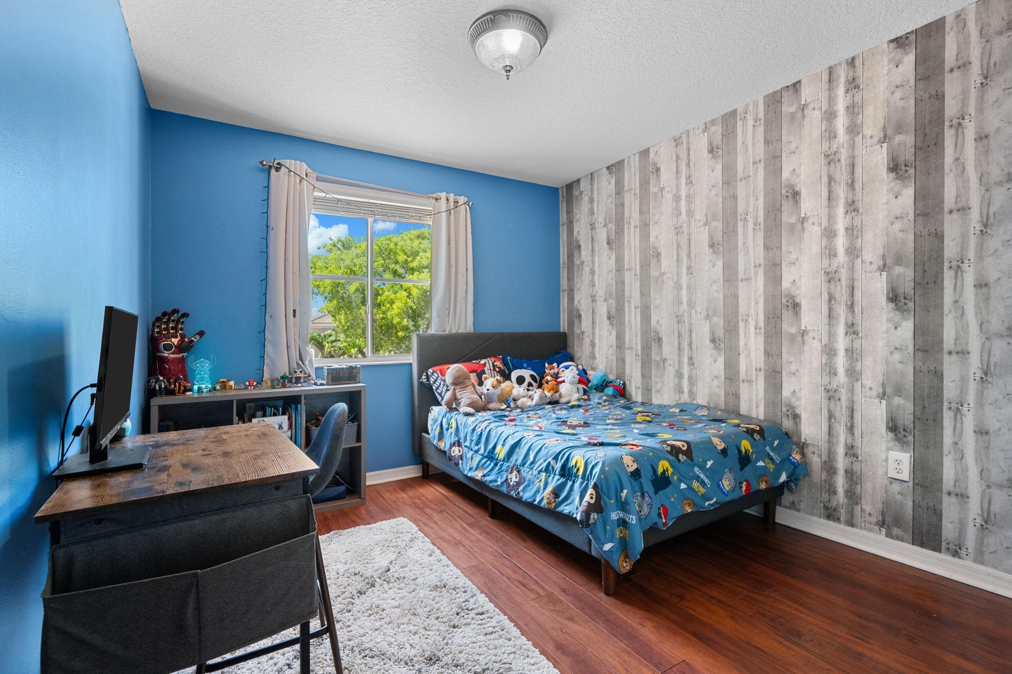 Beautifully updated 4-bed, 3-bath two-story home on one of the largest corner lots in Monarch Lakes. Features waterproof flooring, spacious family and dining areas, large kitchen with granite countertops, breakfast bar, stainless steel appliances, and eat-in nook. First-floor bedroom and full bath ideal for guests. Upstairs includes a primary suite with marble bath, custom closet, plus 2 more bedrooms and full bath. Newer AC (4 years), gutters (1.5 years), a deep-cleaned interior, and fully fenced yard. The property also has a laundry room, newer washer and dryer, and a gym on the main floor (can convert back to a garage if requested). Gated resort-style community with 24/7 security, pool, clubhouse, tennis courts, trails and parks. Prime location near I-75, schools, shopping, and dining.